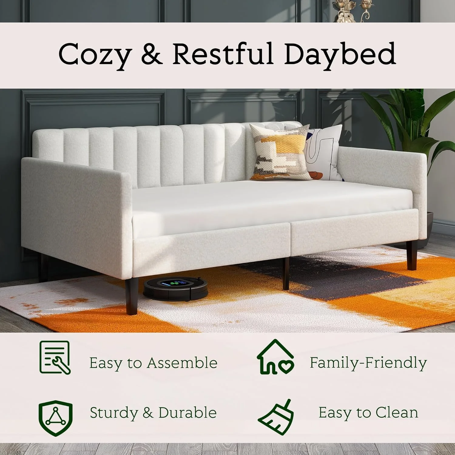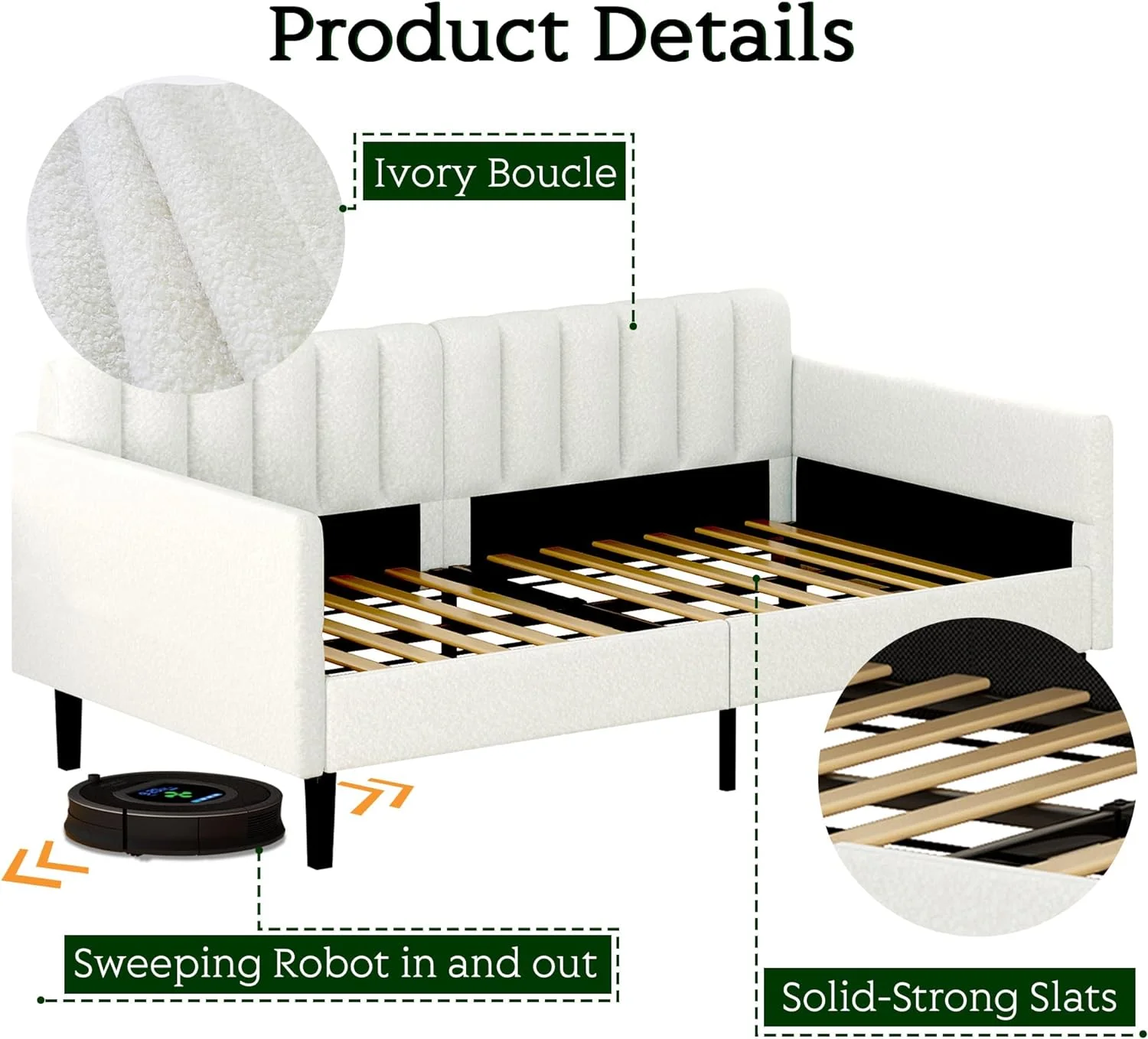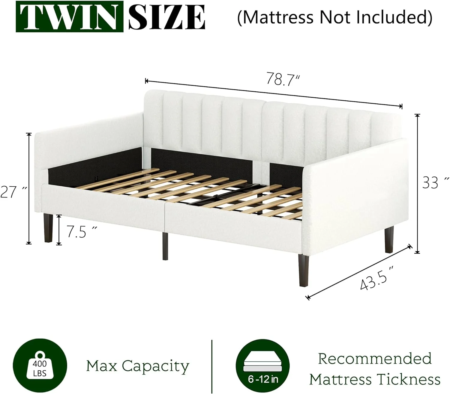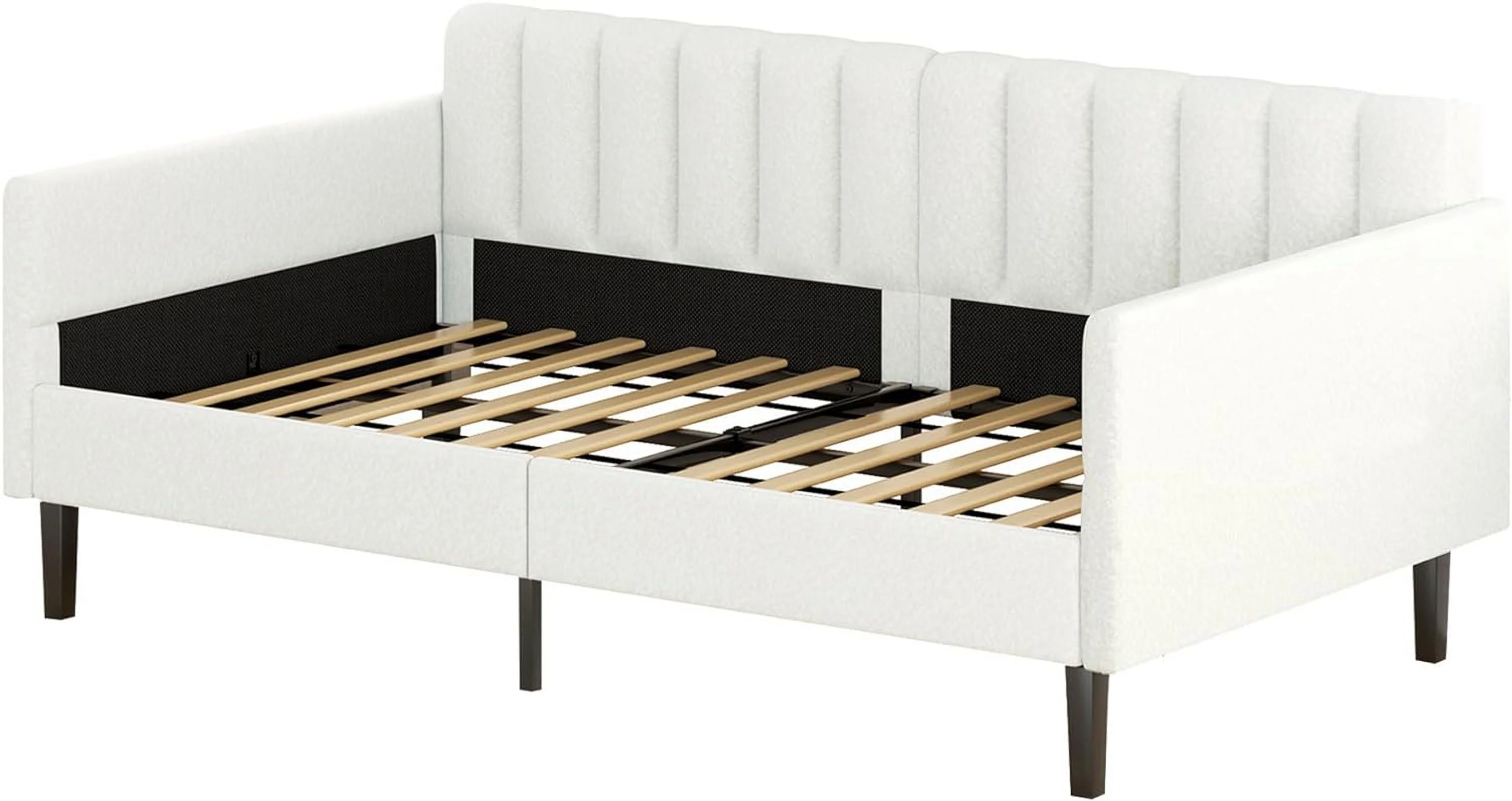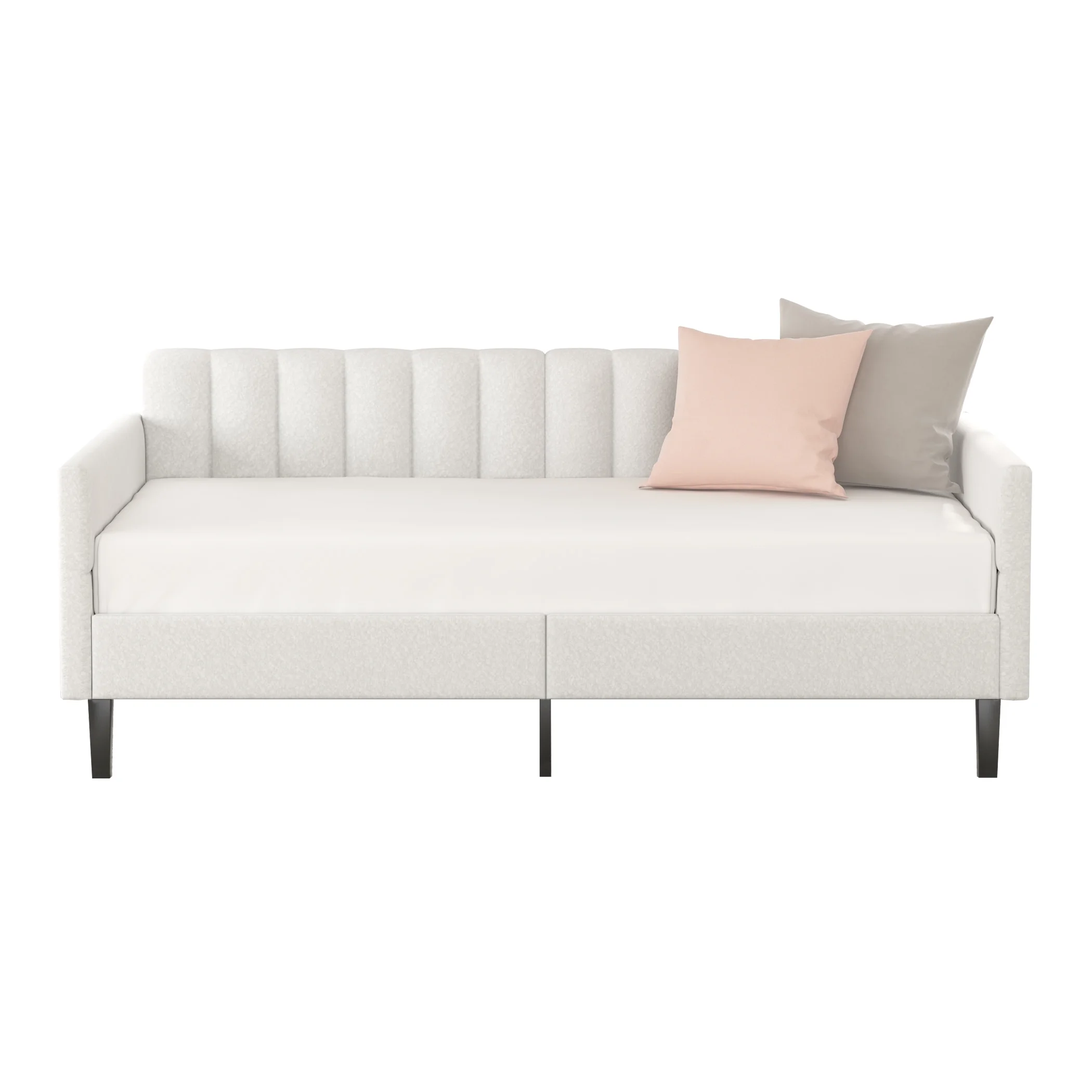 Pouseayar Twin Size Boucle Upholstered Daybed, Ribbed Tufted Backrest, Ivory