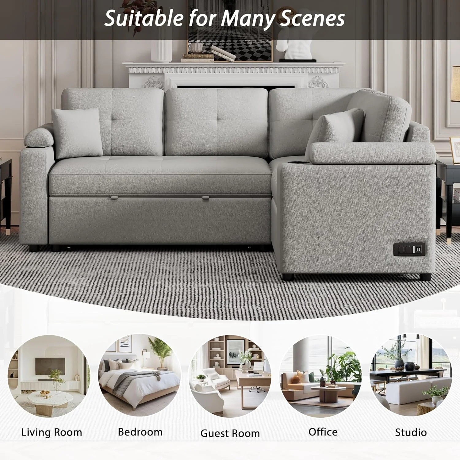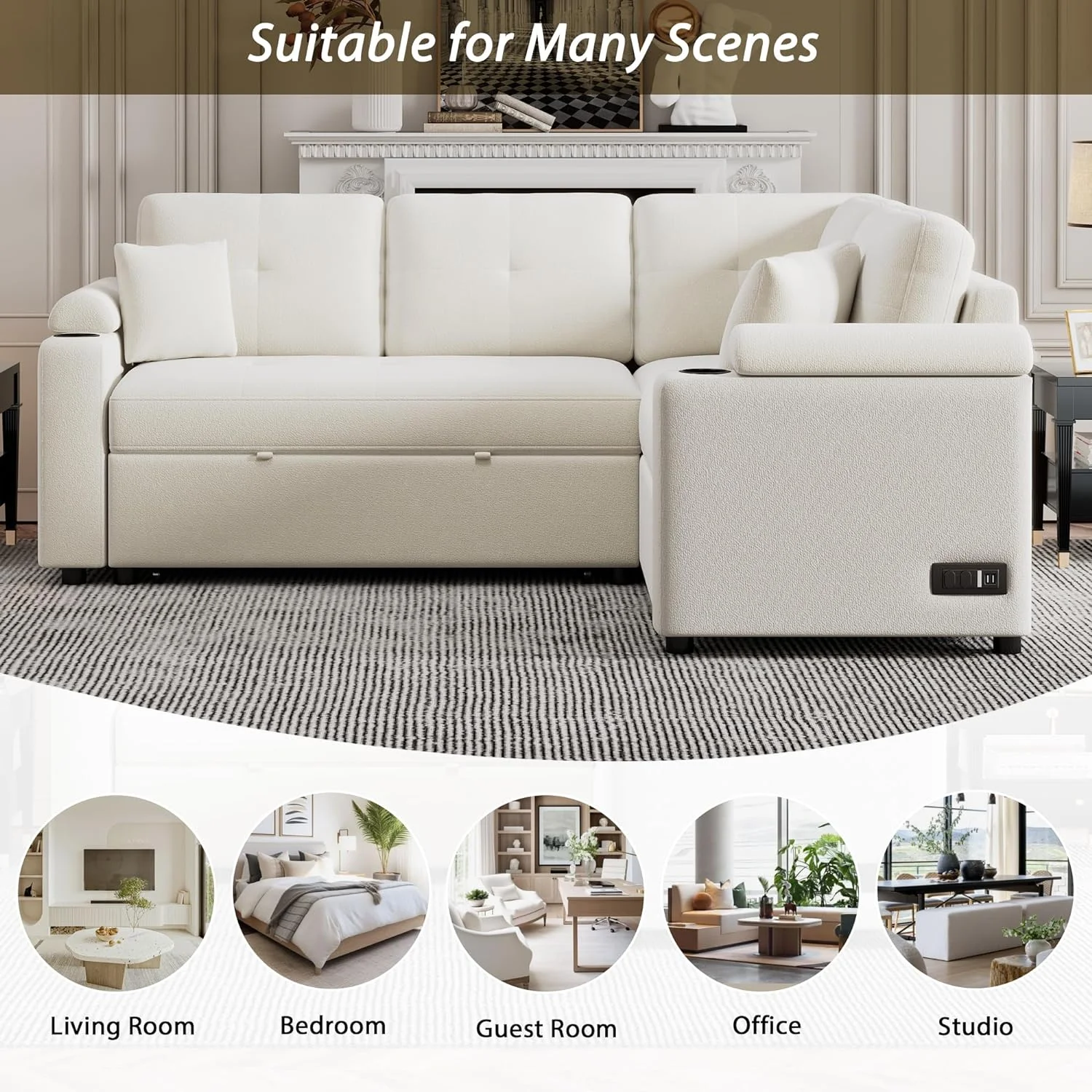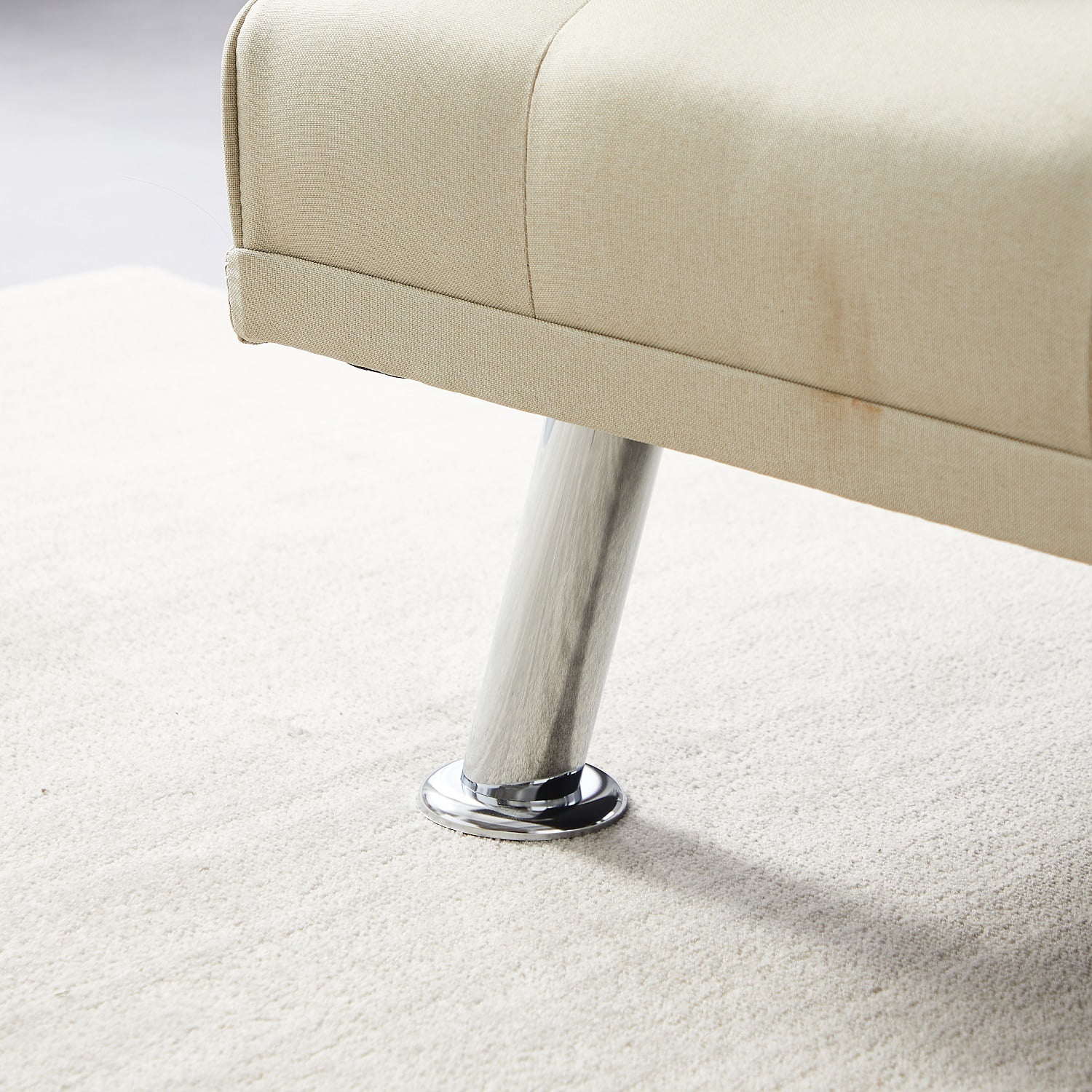 Dubbin Velvet Convertible Futon Sofa Bed with Removable Armrests,Metal Legs,and Cupholders - Beige