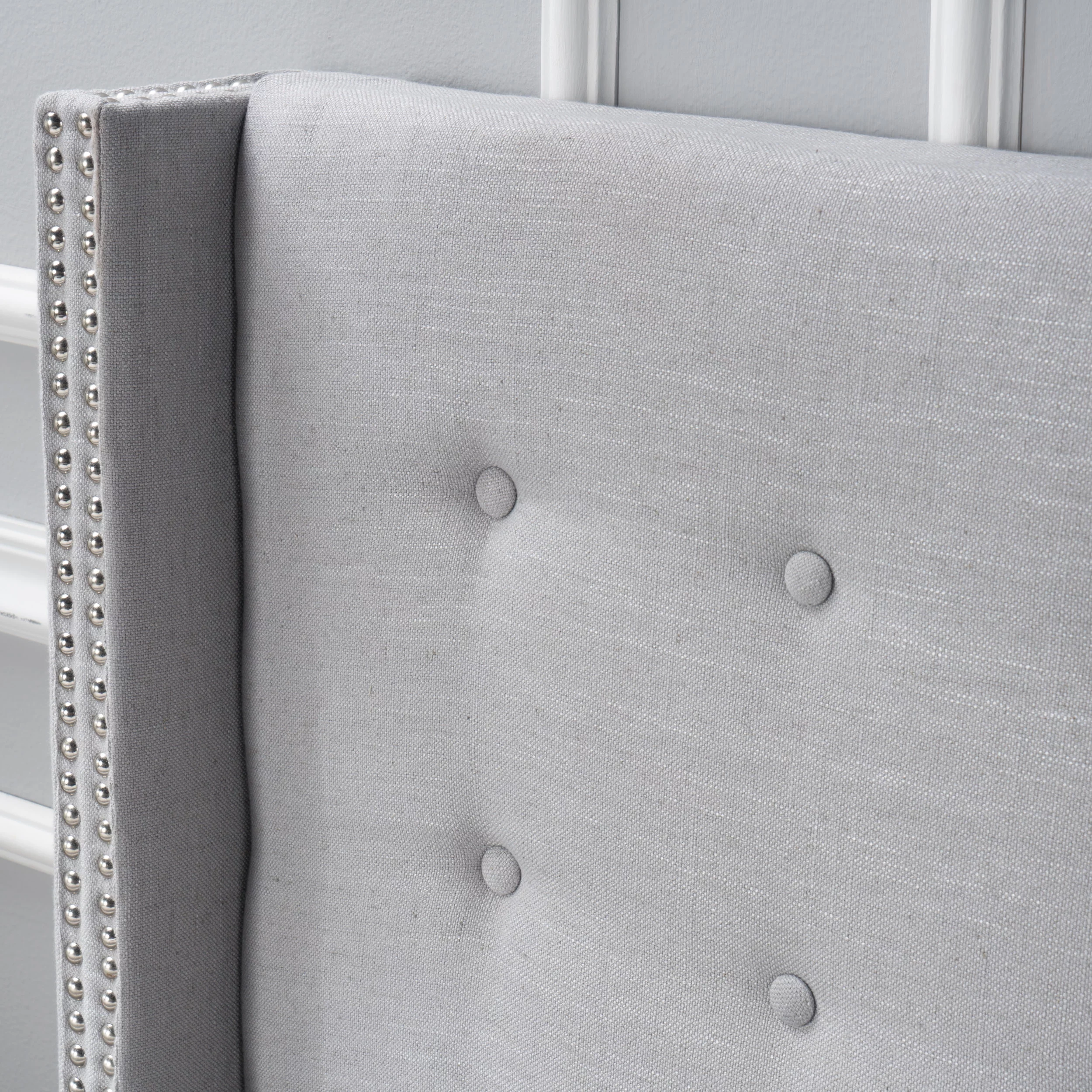 Bernards Amy Fabric Upholstered King Headboard with Nail Head Trim in Beige