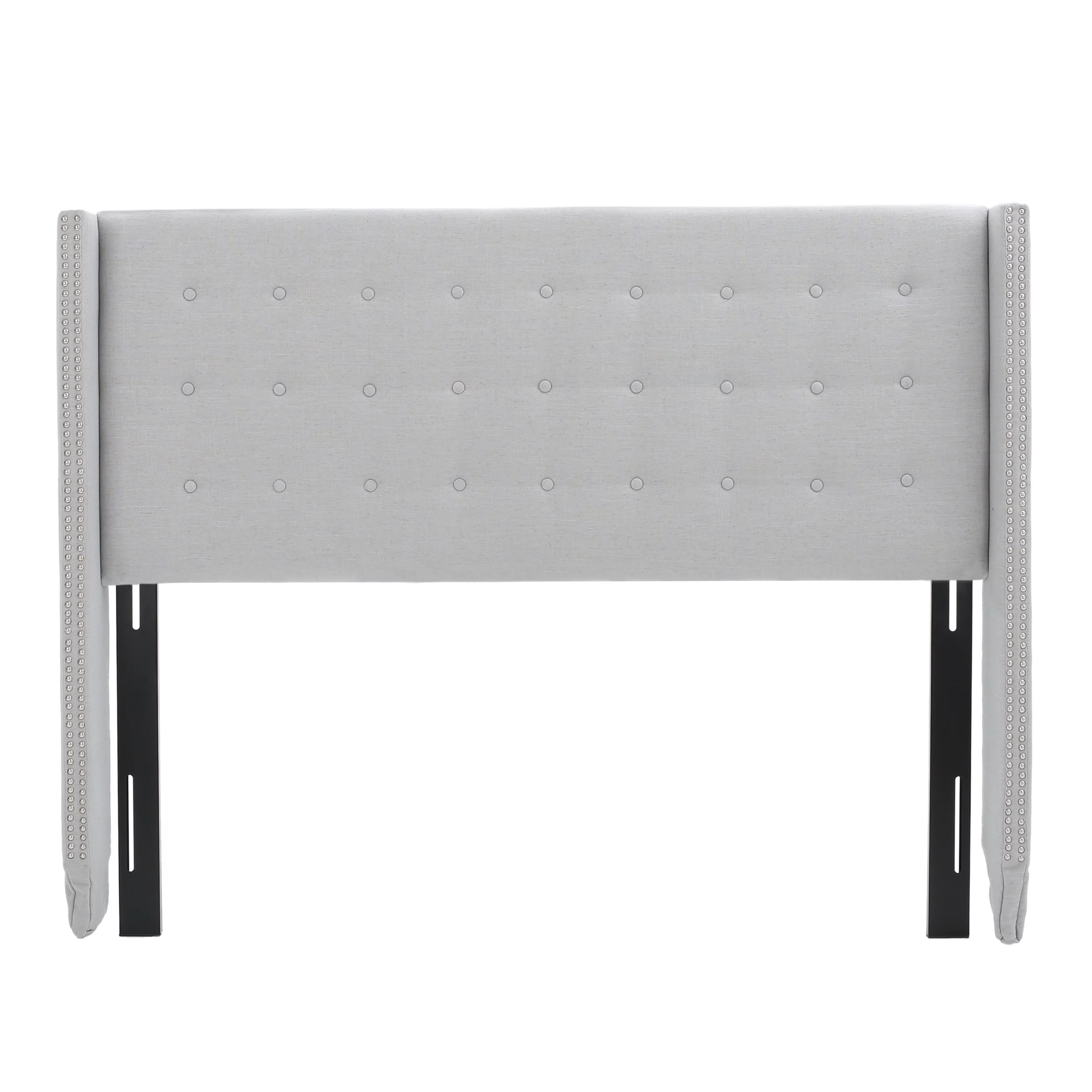 1Pc Black Color Elegant Contemporary Upholstered King Bed Button Tufted Headboard Demi-Wings Bedroom Furniture