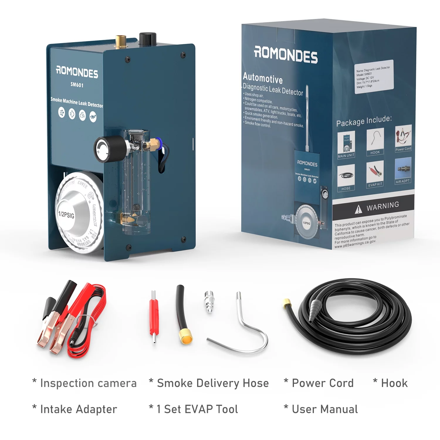 Romondes SM603 Automotive Evap Smoke Machine, Leak Detector with Pressure Gauge
