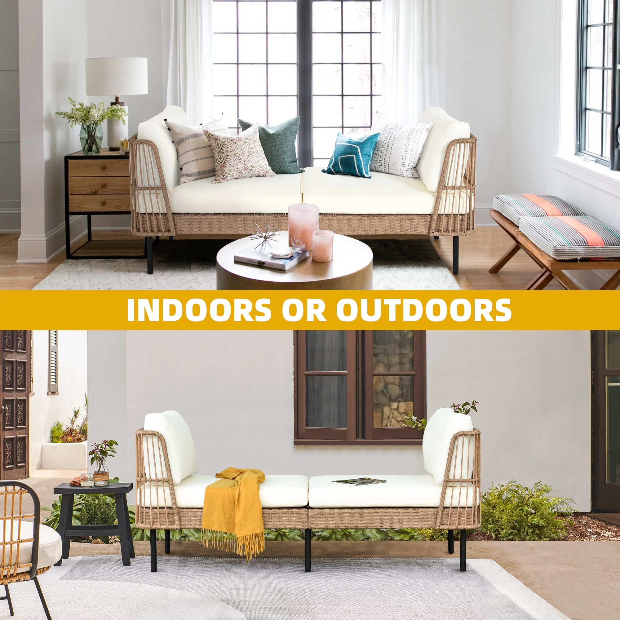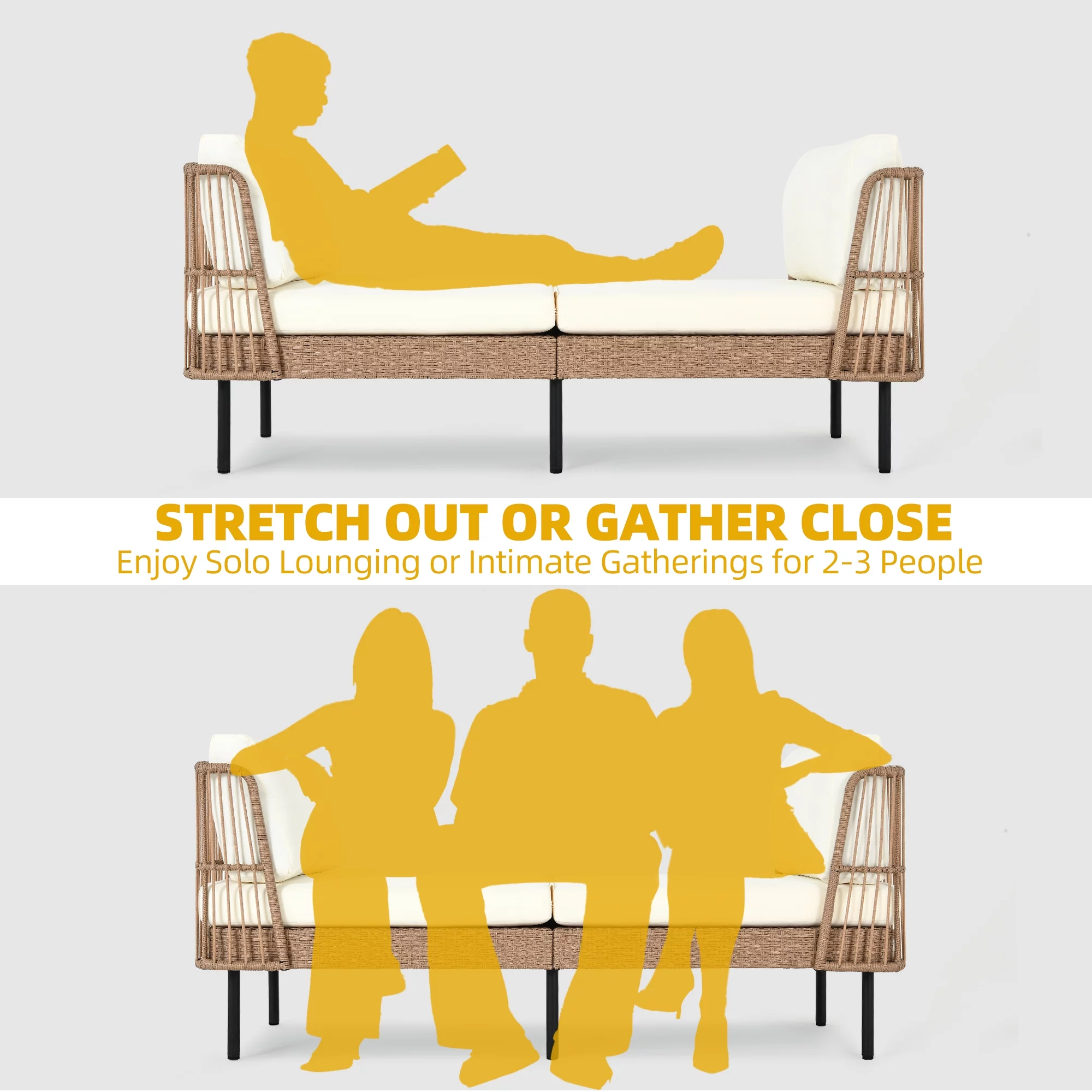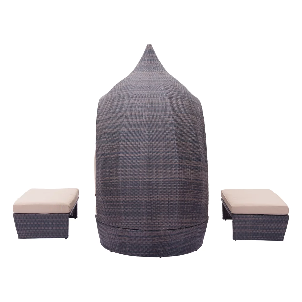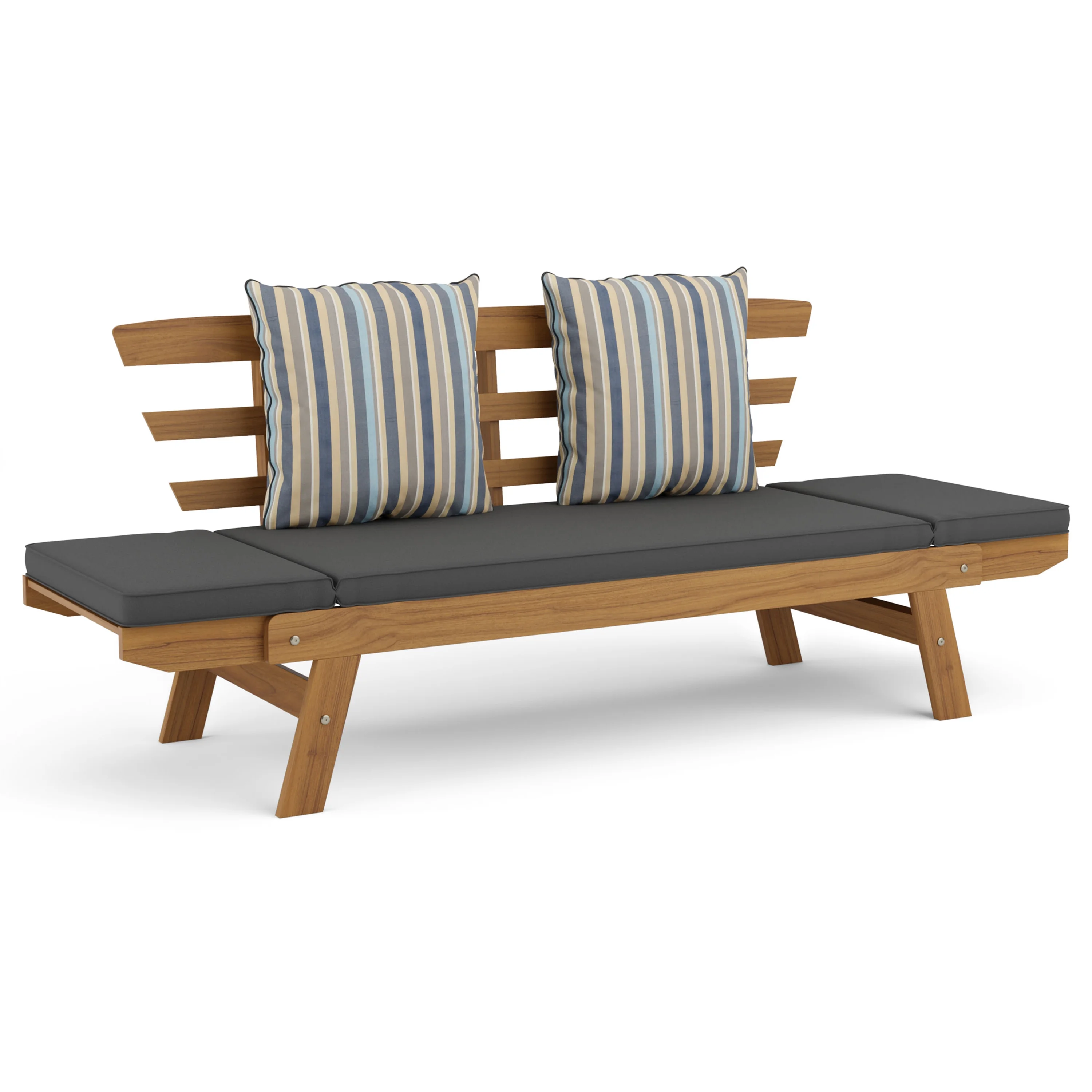 Furniture of America Kaui Wood Patio Convertible Sofa Daybed, Natural and Gray