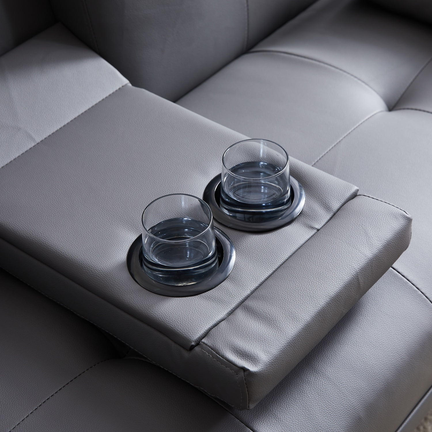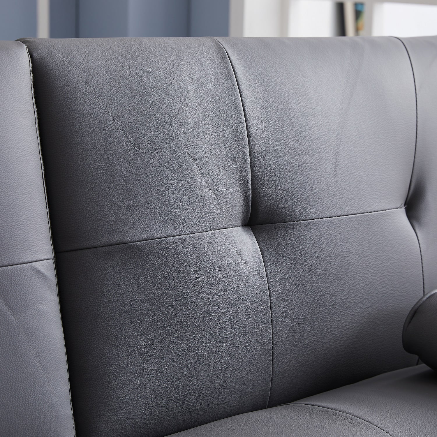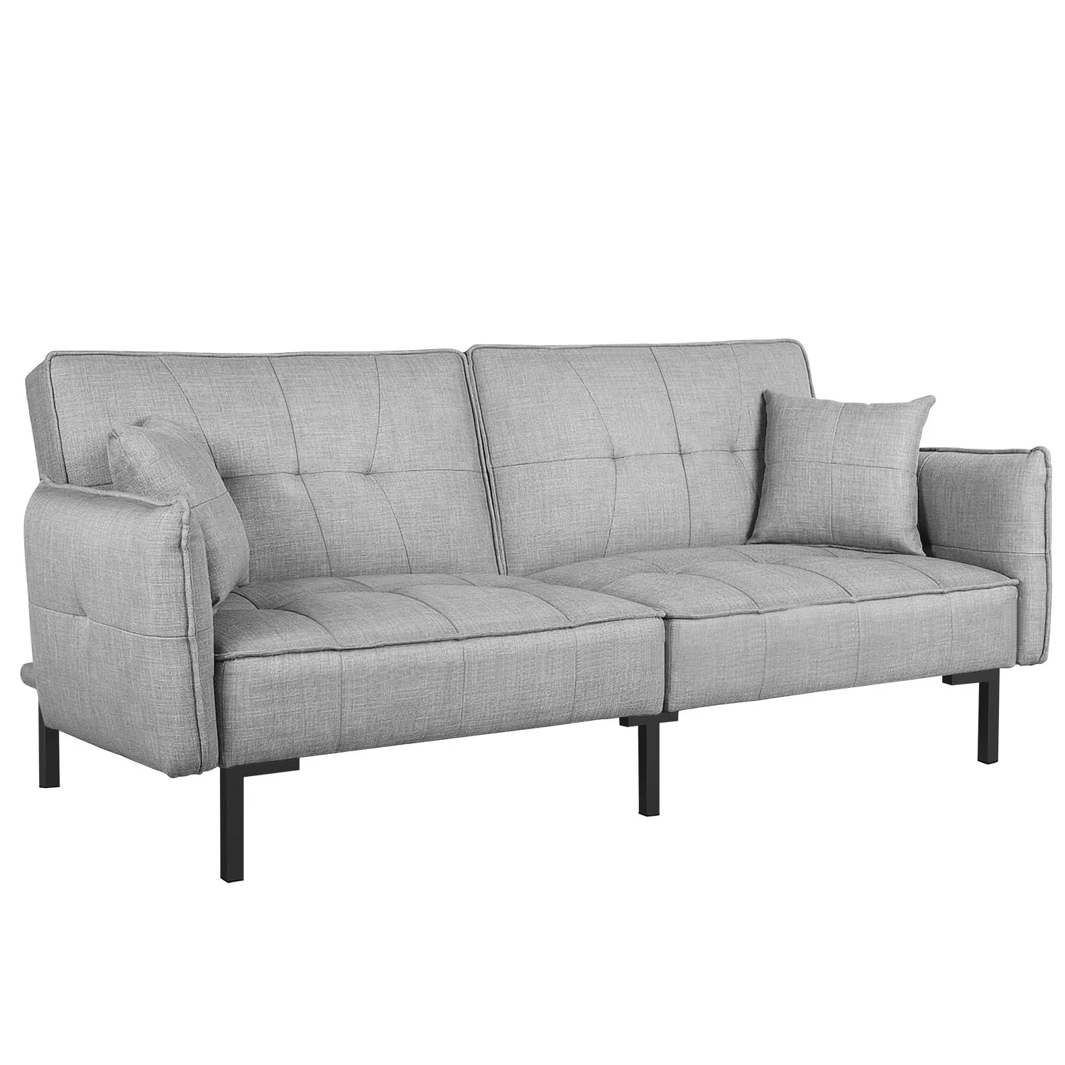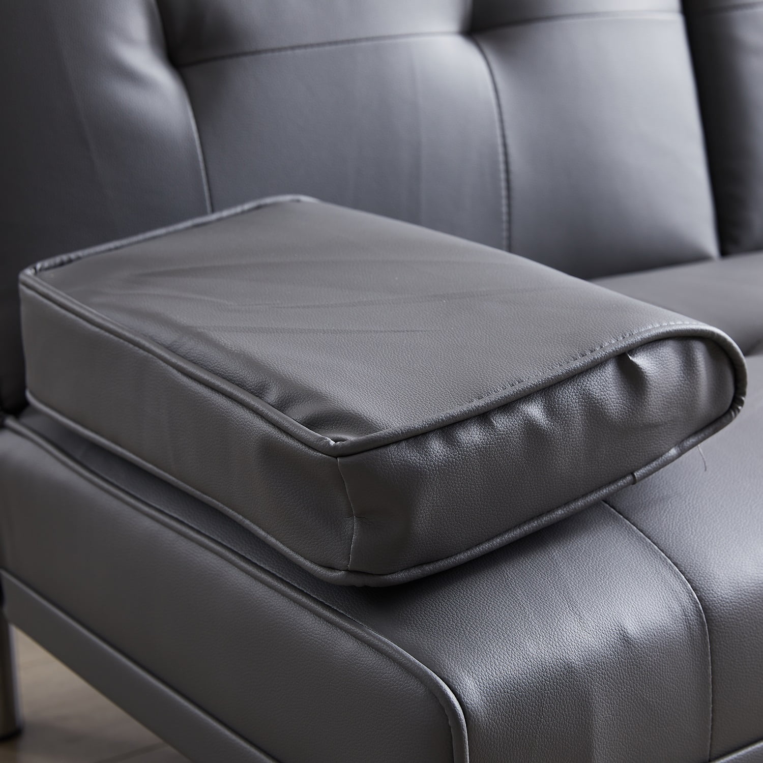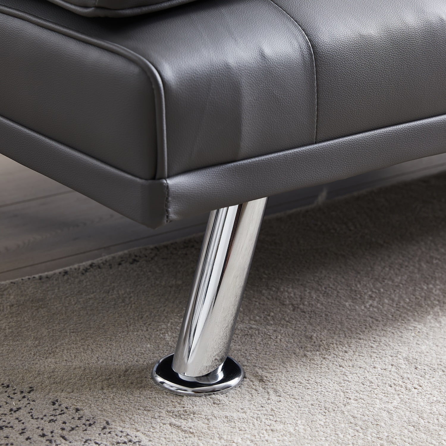 Dubbin Faux Leather Convertible Futon Sofa Bed with Removable Armrests,Metal Legs,and Cupholders - Dark Grey