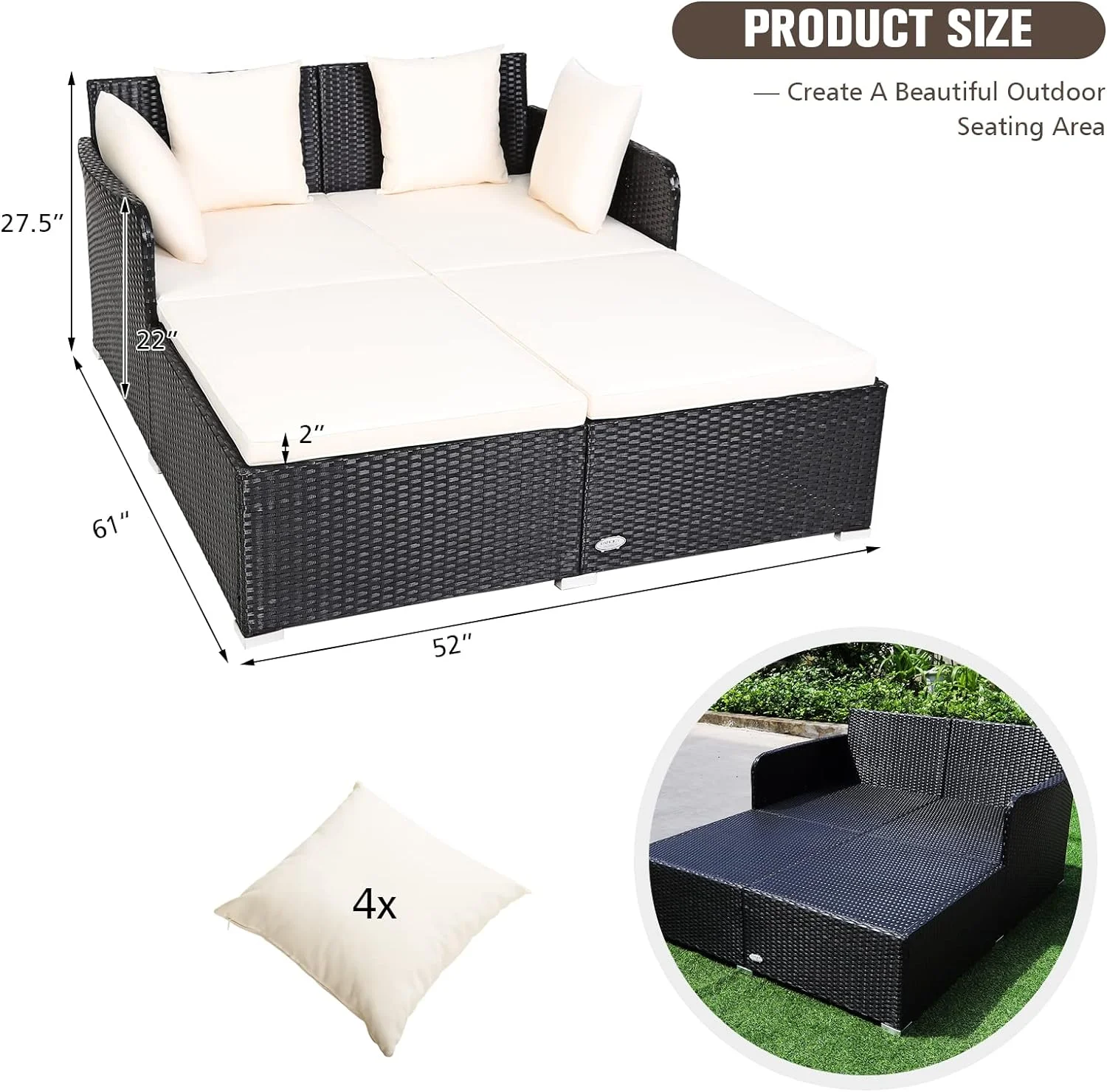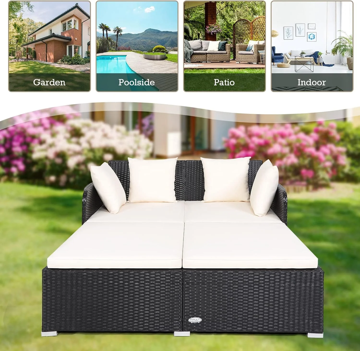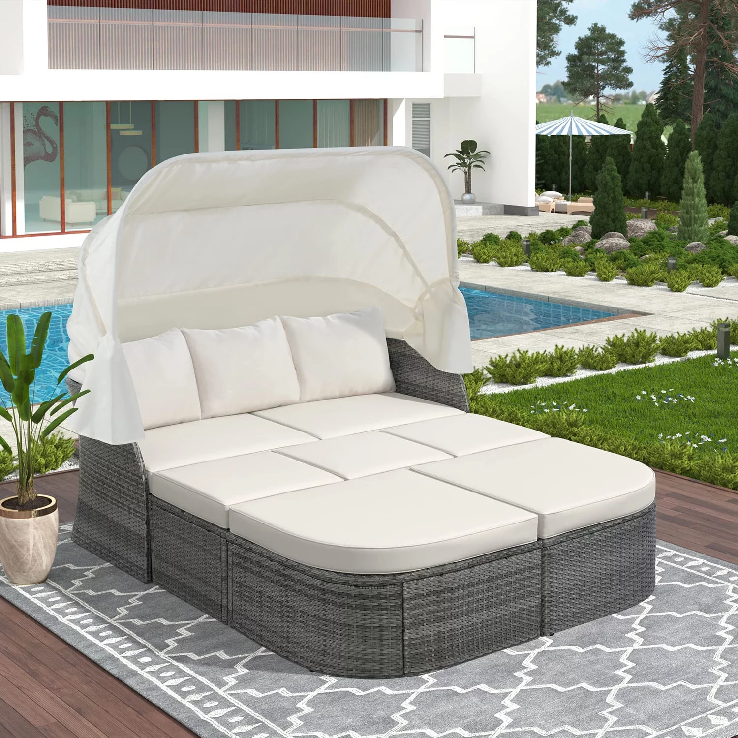 Smuxee Contemporary Patio Round Daybed with Retractable Canopy Sofa, 49.6 lb, White