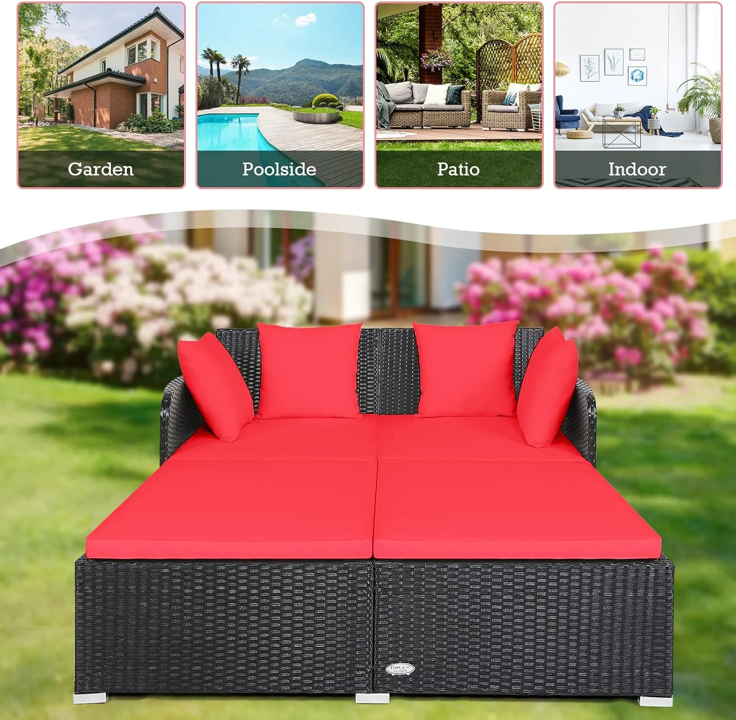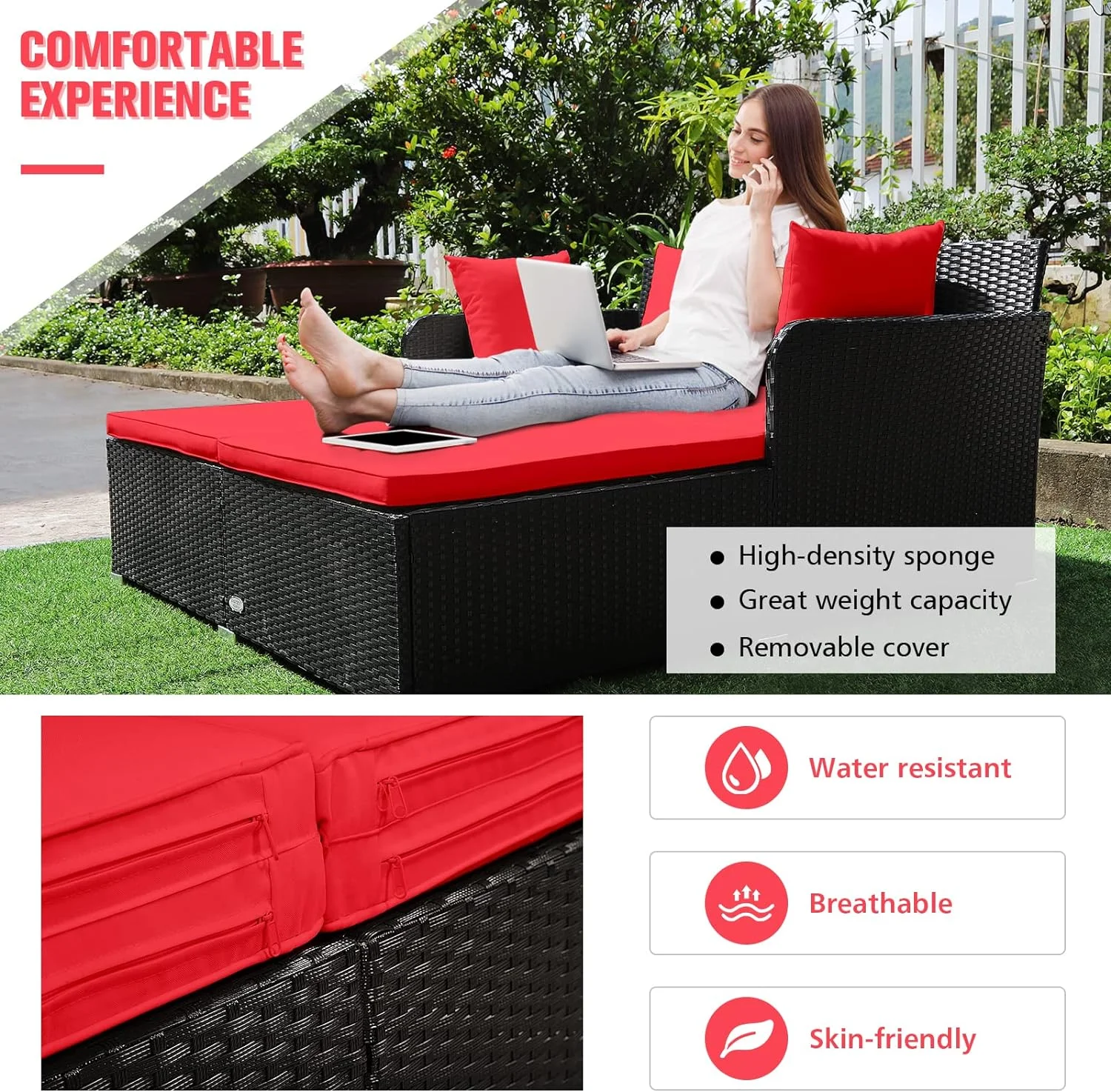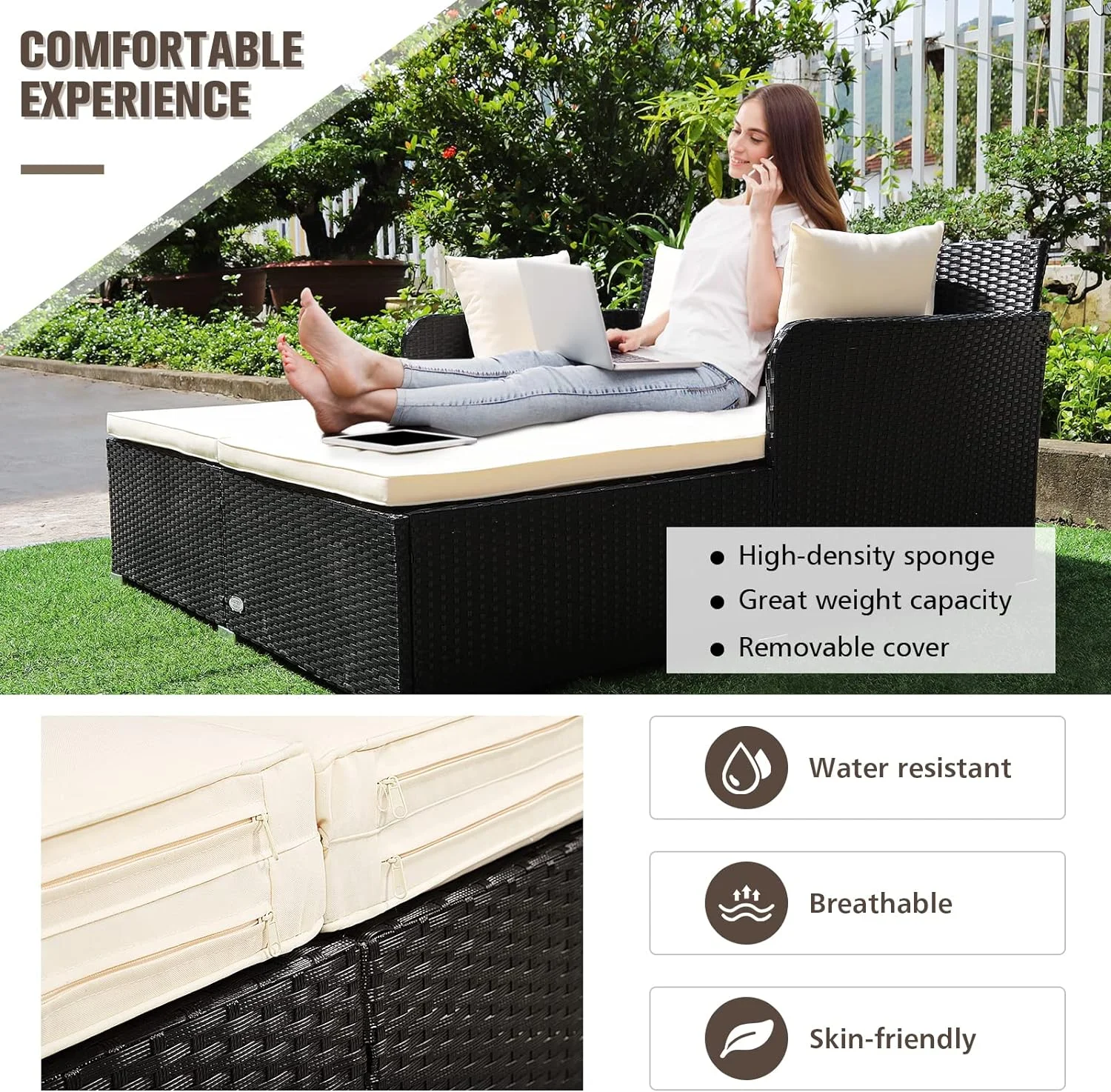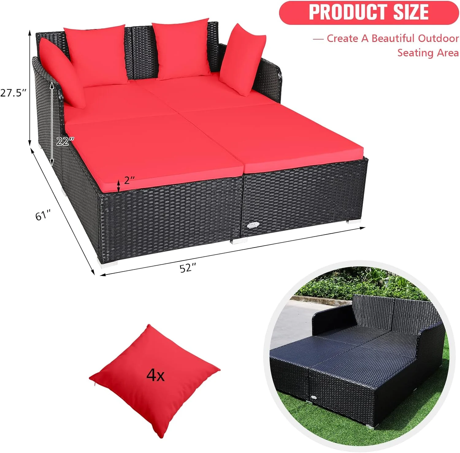 Smuxee Contemporary Patio Round Daybed with Retractable Canopy Sofa, 49.6 lb, White