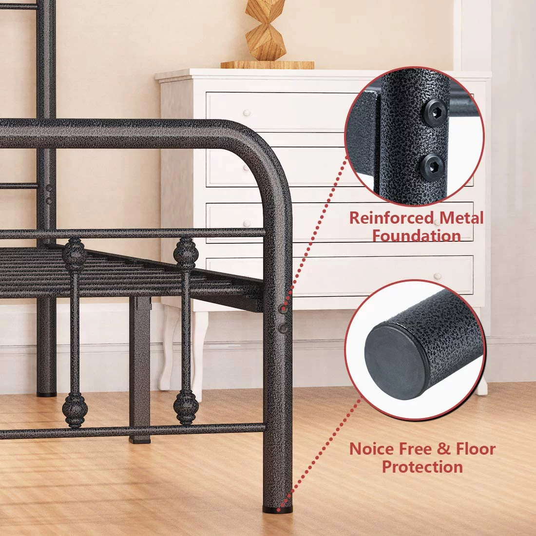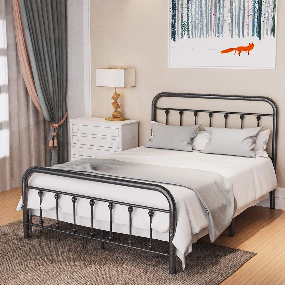 FULL Metal Platform Bed Frame with Headboard / Strong Slat Support / No Box Spring Needed / Easy Assembly BLACK