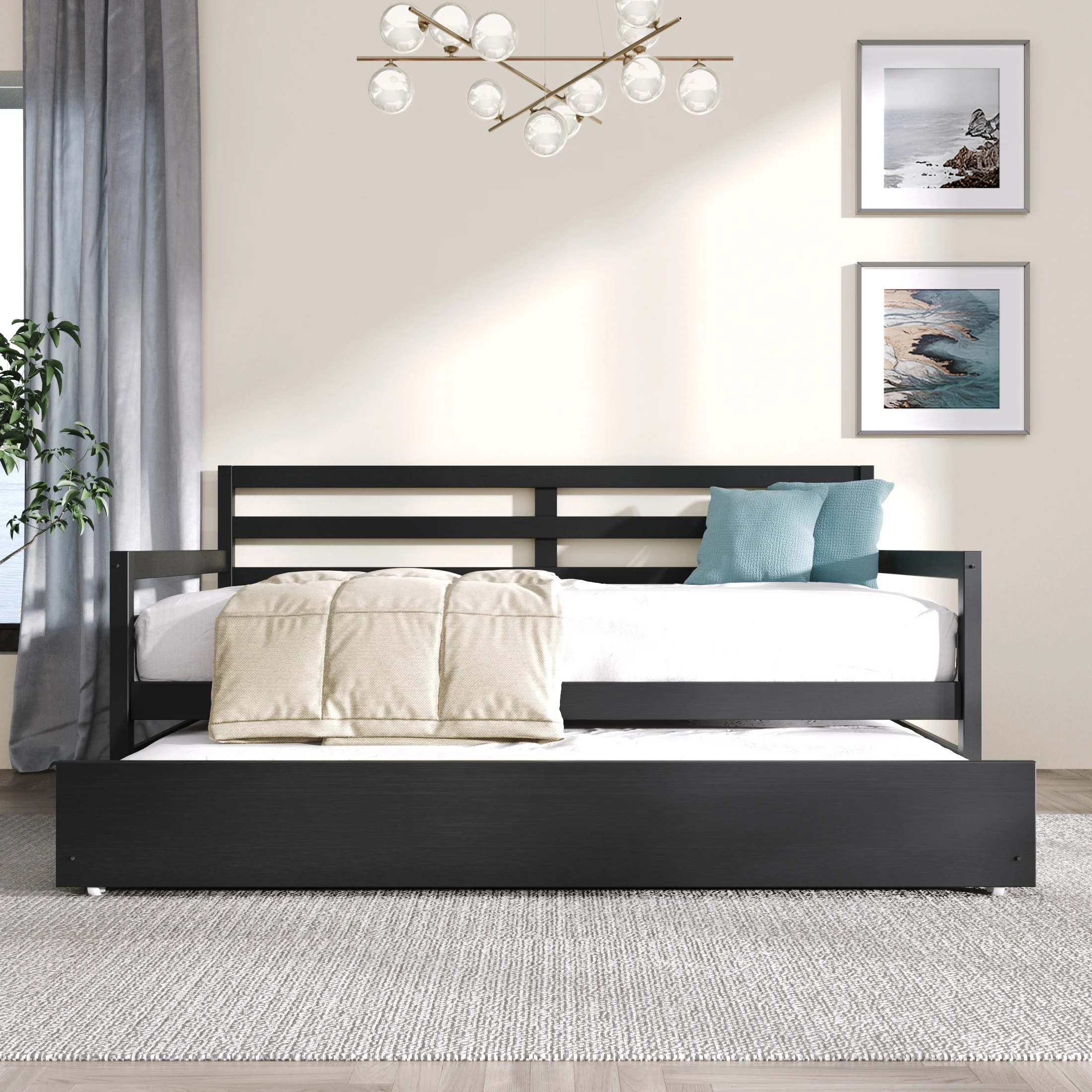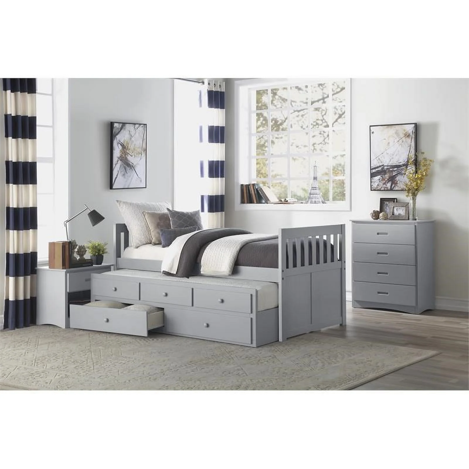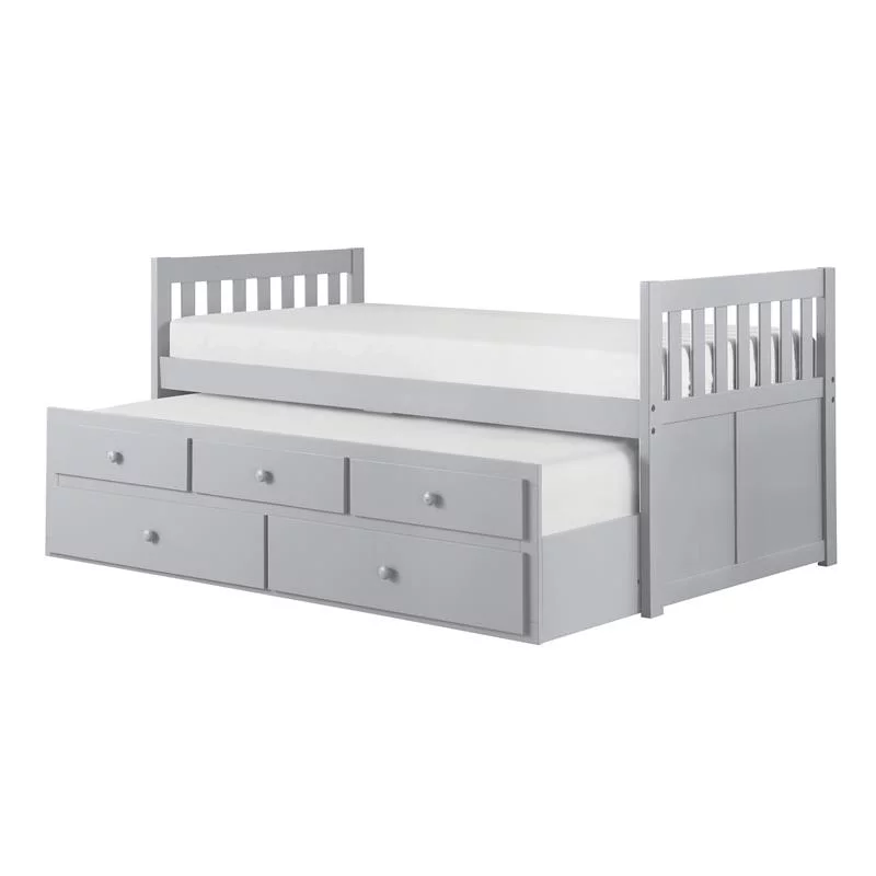 Lexicon Orion Wood Twin Bed with 2 Storage Drawer Trundle Bed in Gray