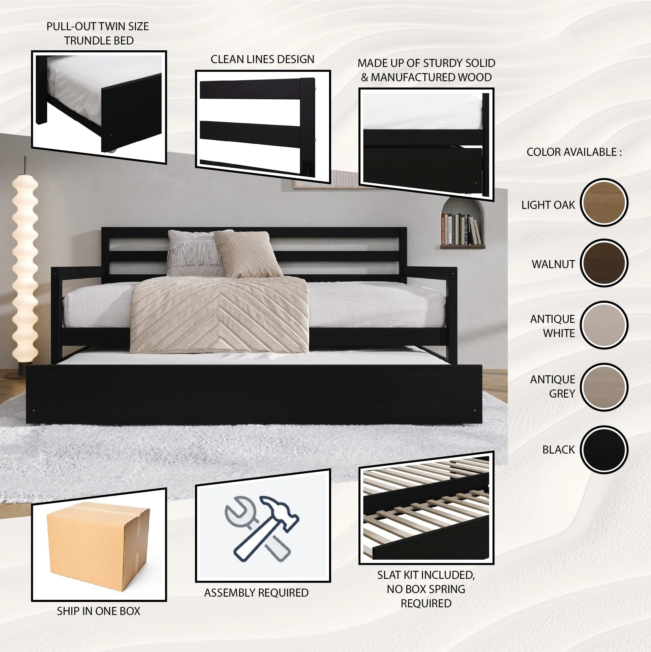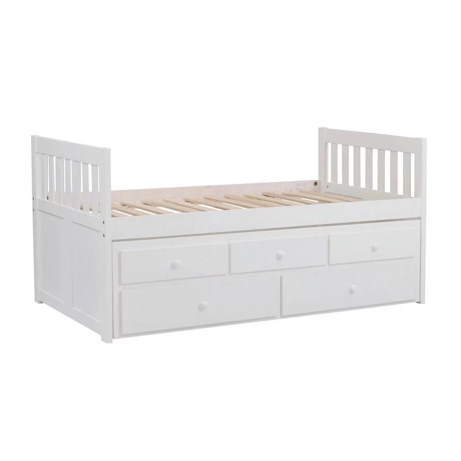 Lexicon Galen Wood Twin Bed with 2 Storage Drawer Trundle Bed in White