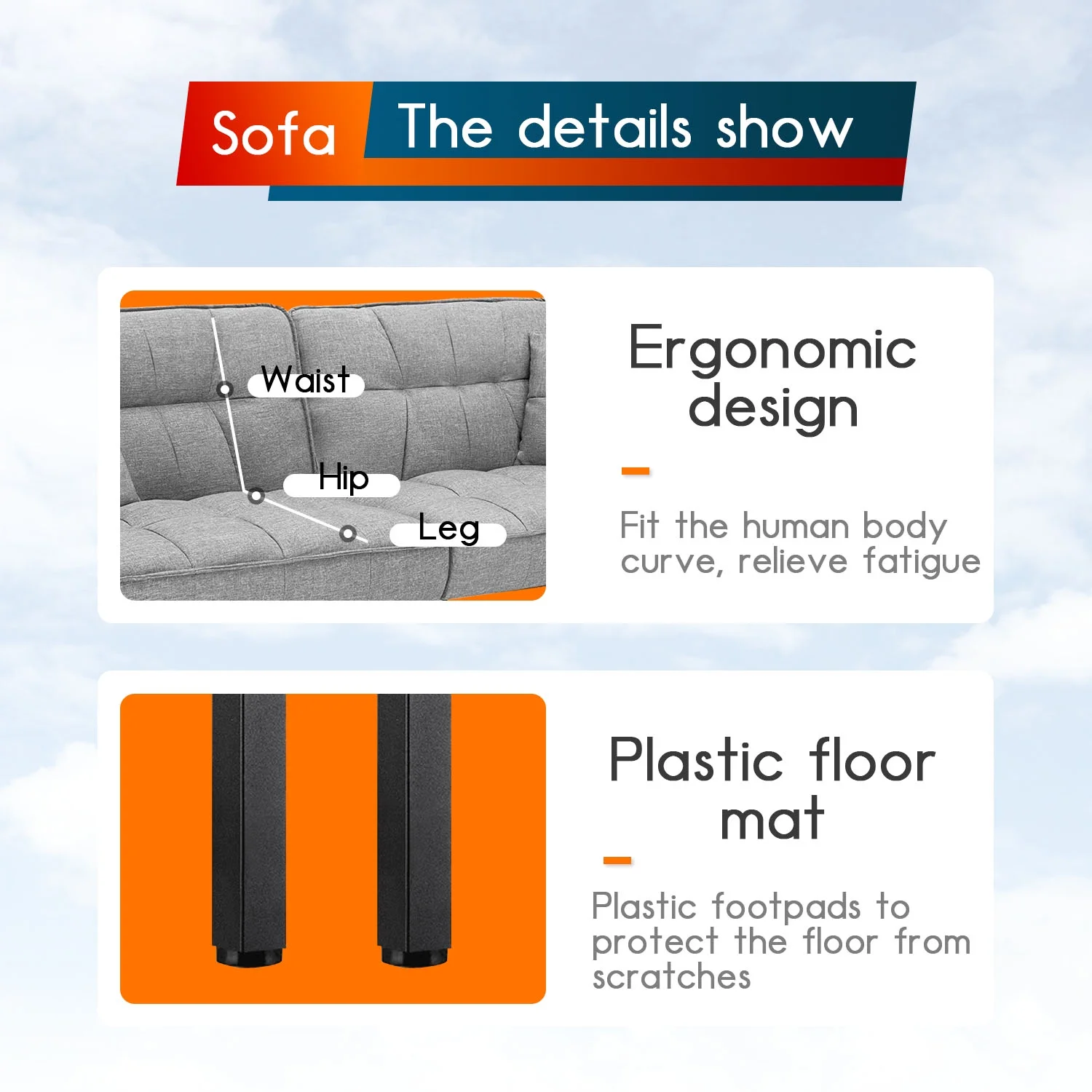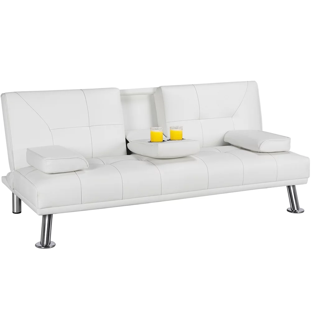 Yaheetech Modern Faux Leather Futon Sofa Bed Home Recliner Couch, White