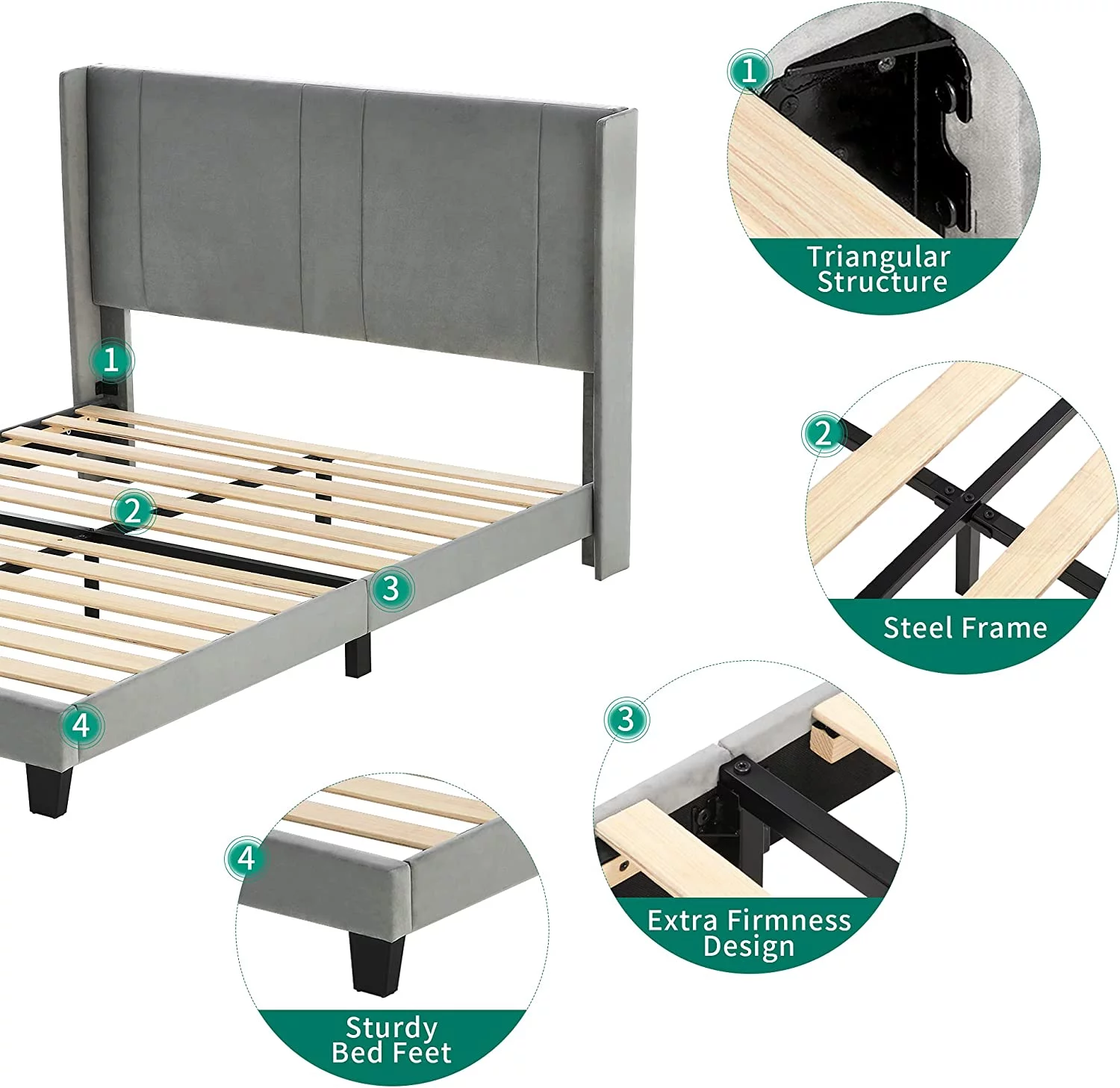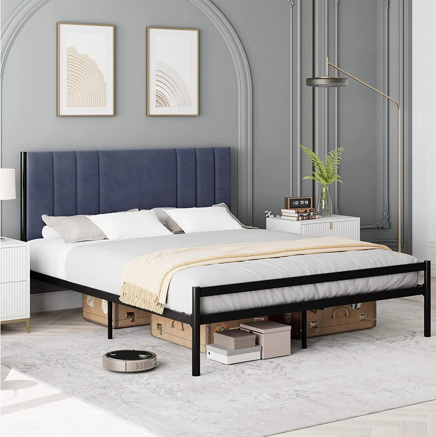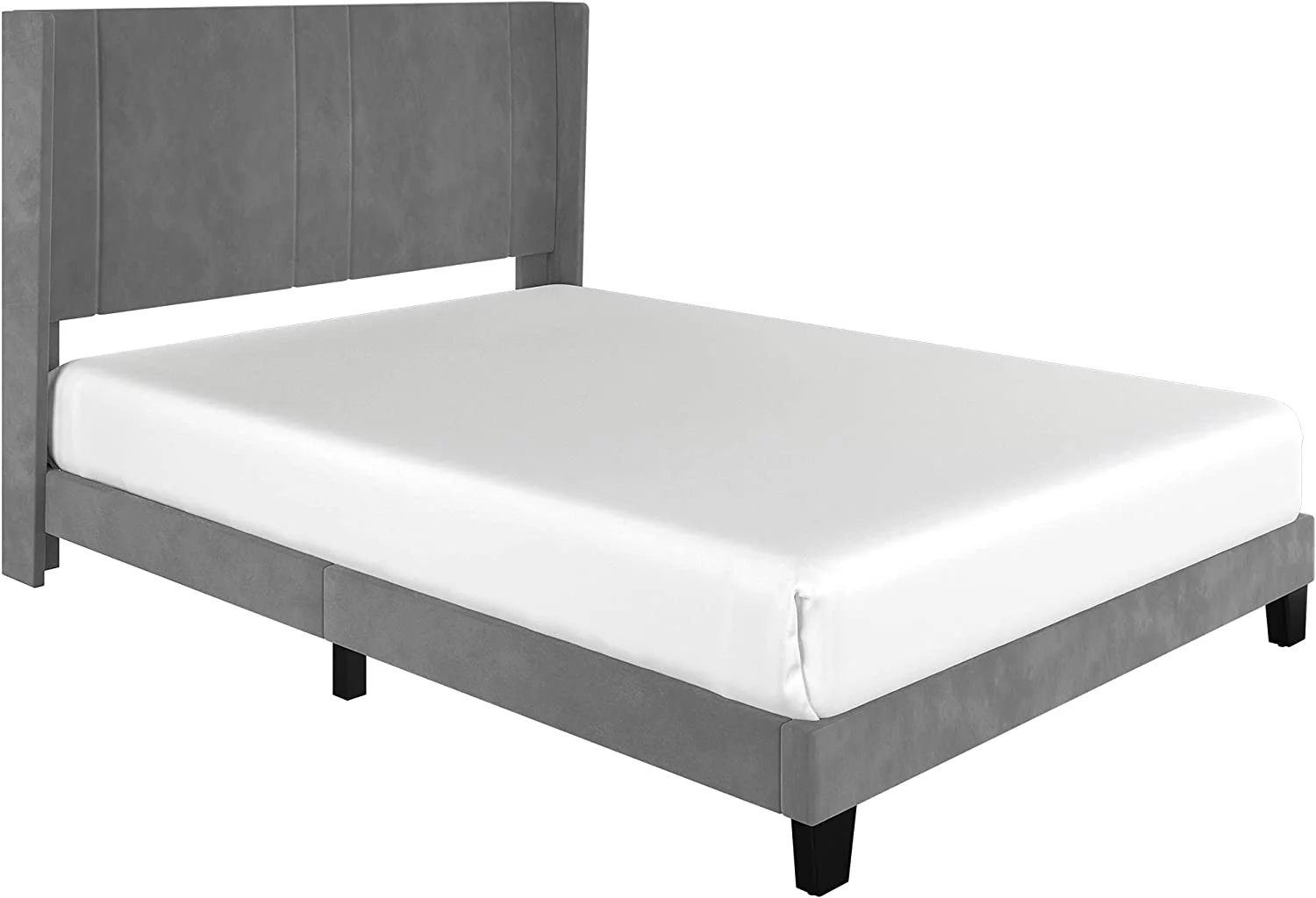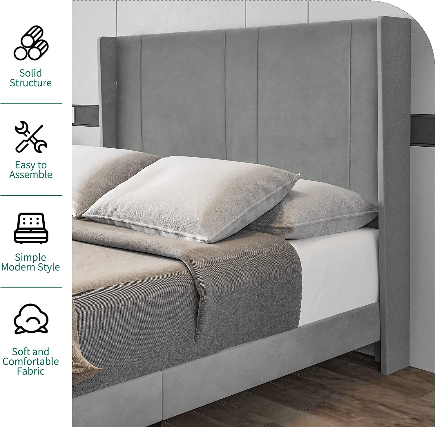 DWVO Upholstered Platform Bed Frame with Headboard Wood Slat Metal Frame (Queen)