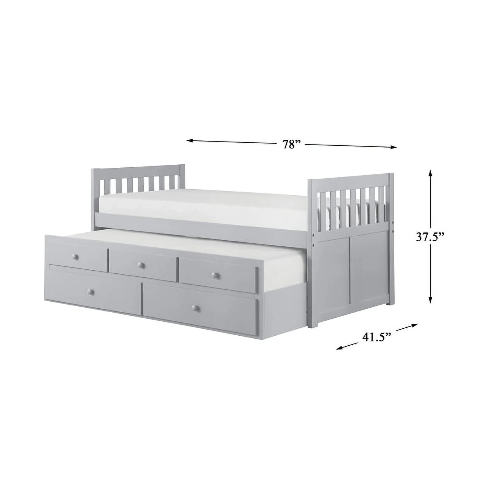 Pemberly Row Wood Twin over Twin Trundle Bed with 2-Storage Drawers in Gray