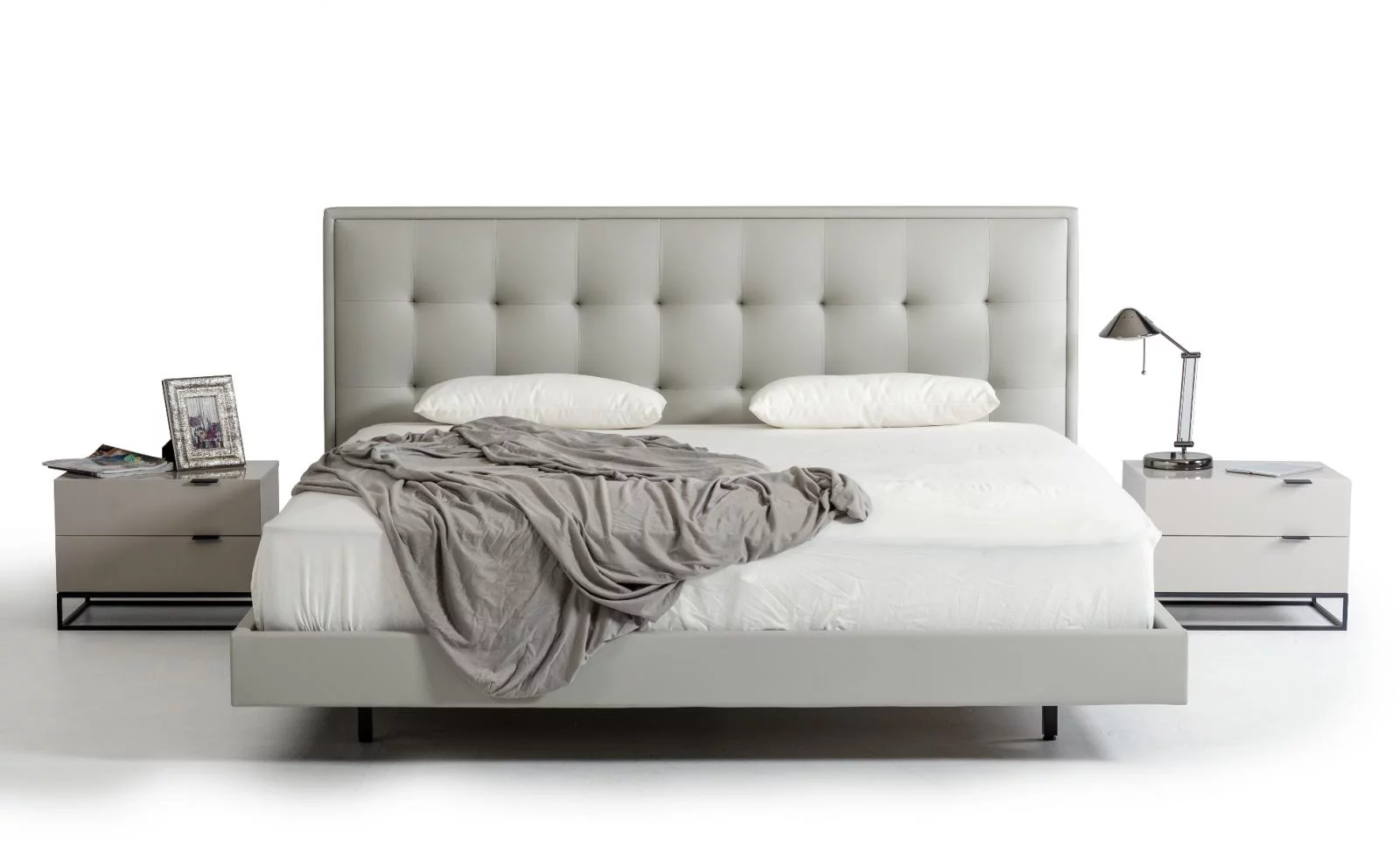 Modern Grey Leatherette Tufted Headboard King Platform Bed VIG Modrest Hera