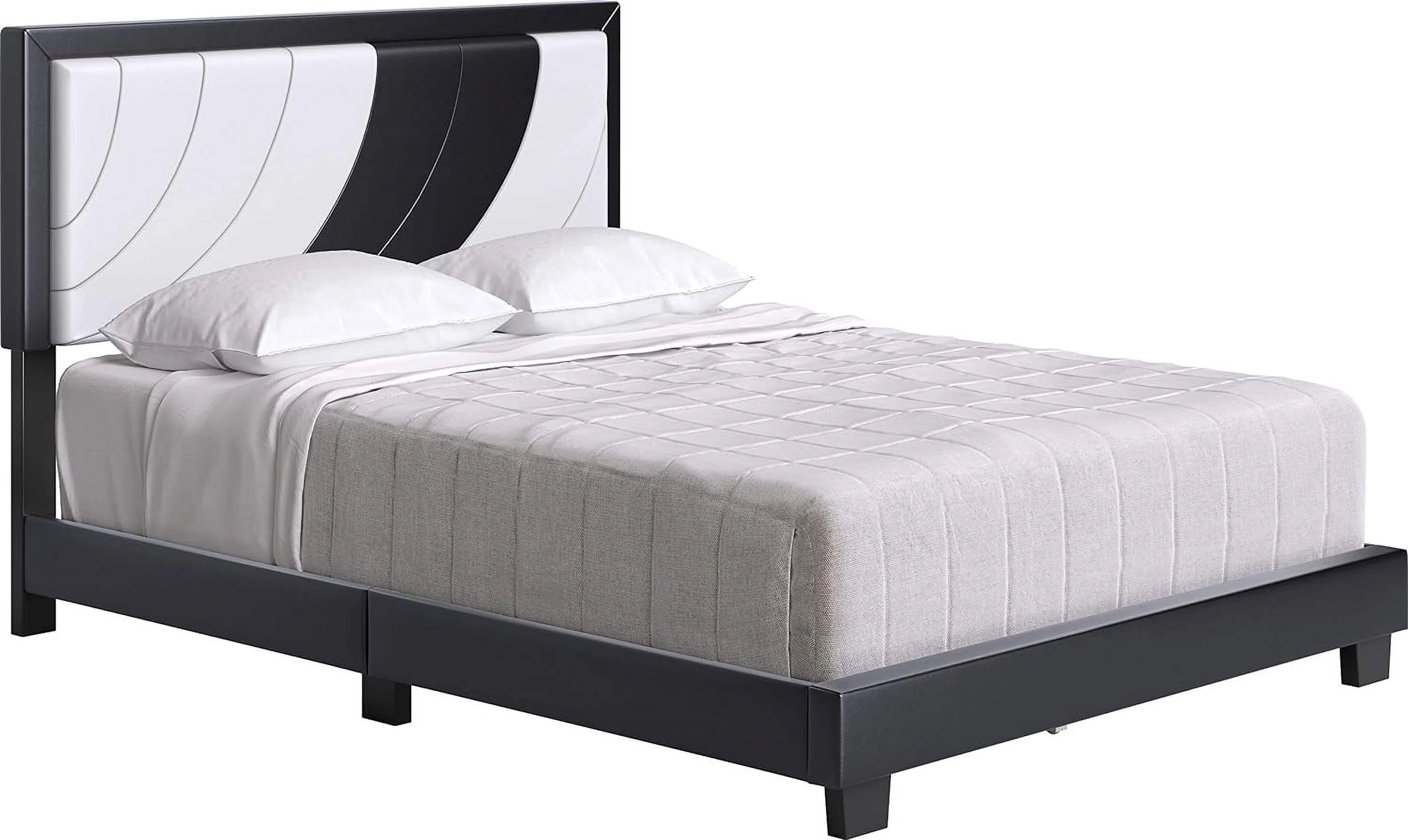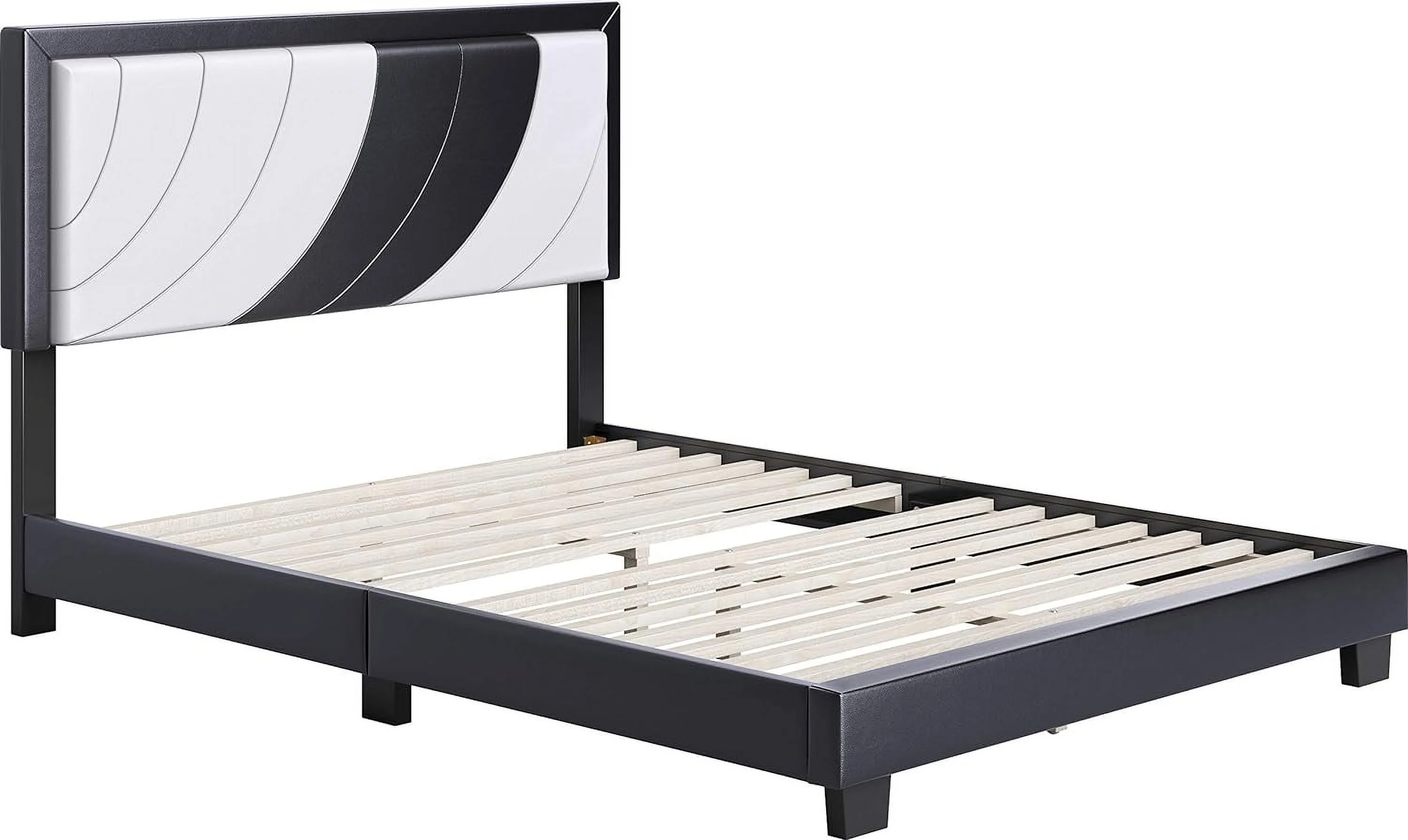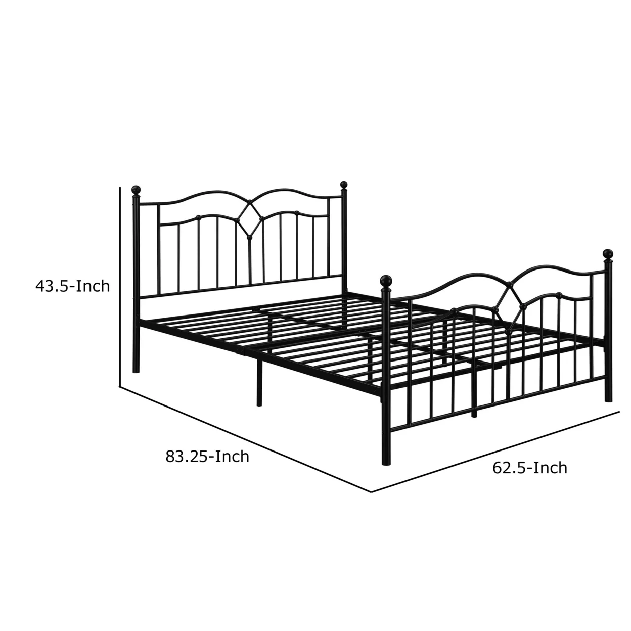 Modern Queen Size Bed Curved Accent Black Heavy Gauge Steel Metal Frame