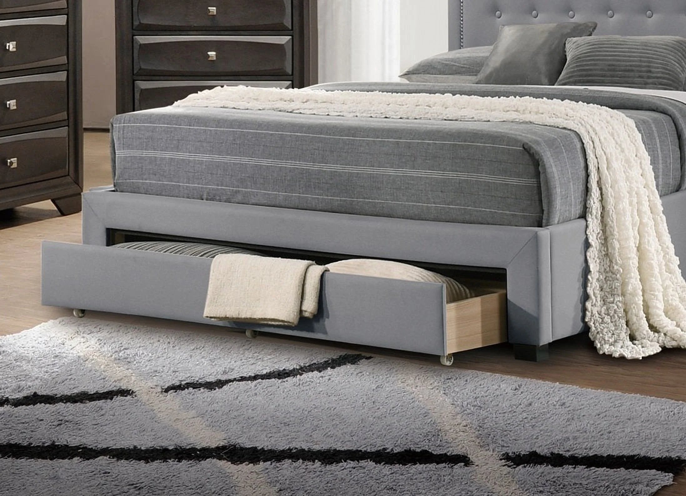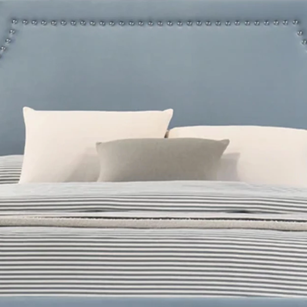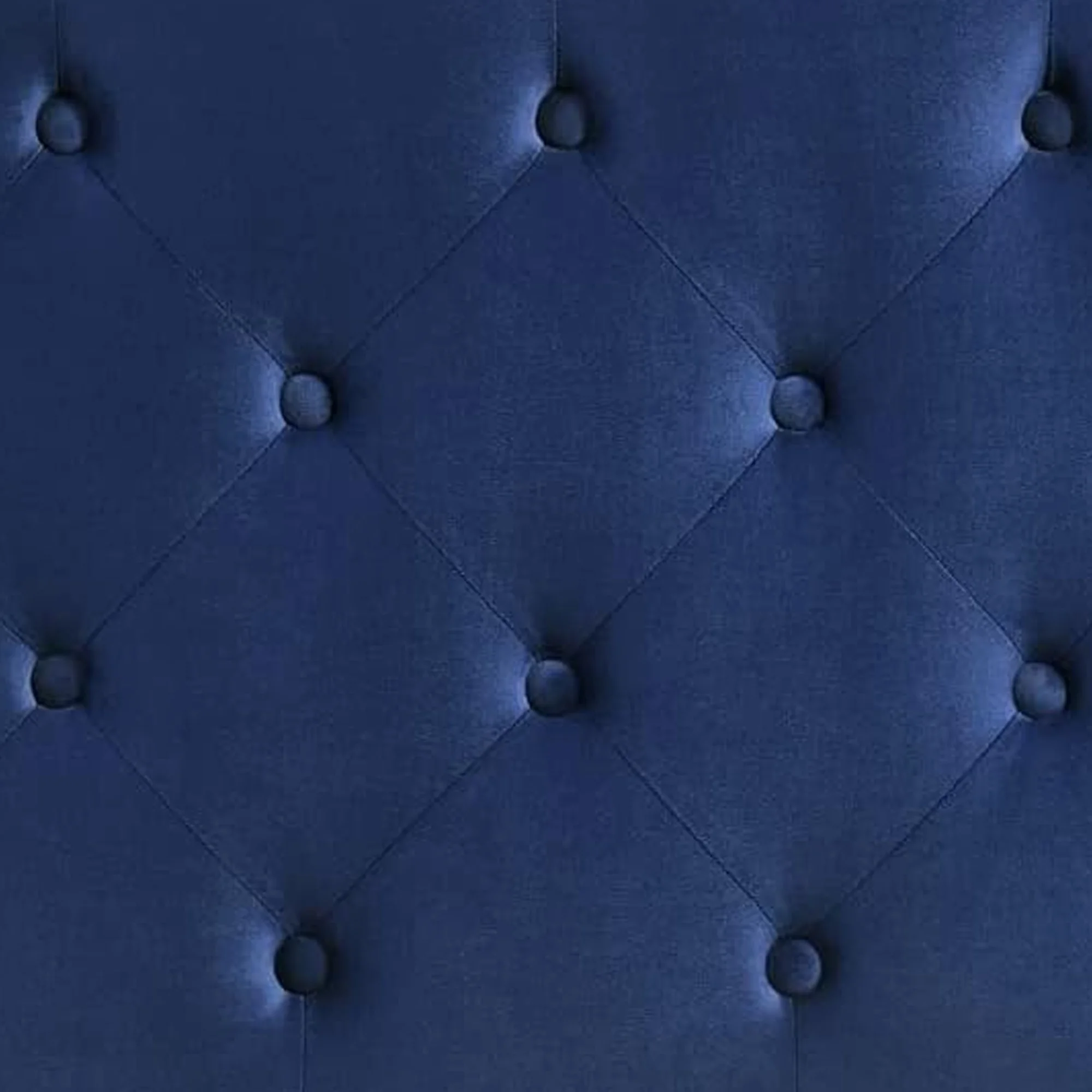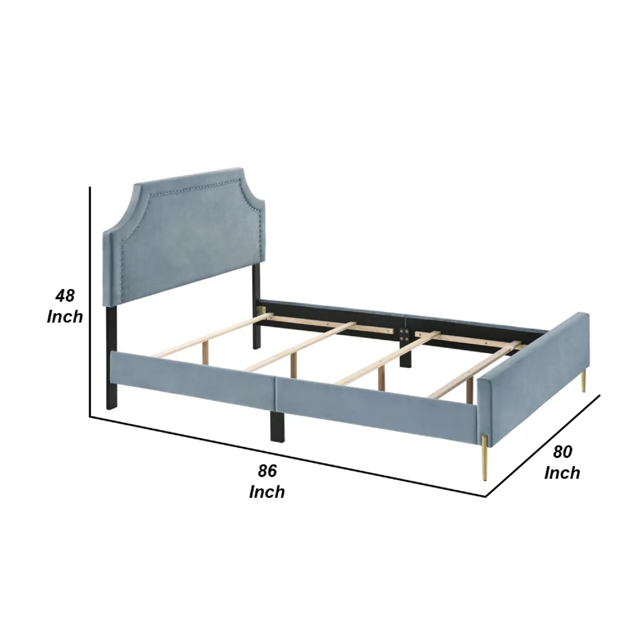 Agapi King Size Bed Button Tufted Nailhead Trim Blue Fabric Upholstery- Saltoro Sherpi