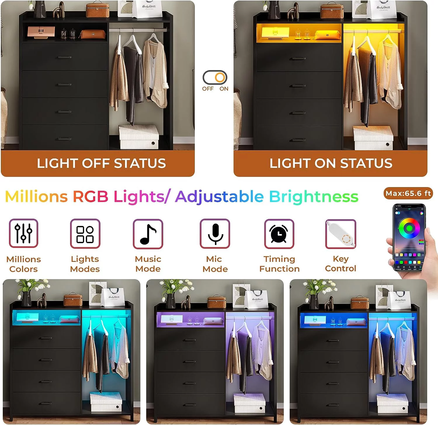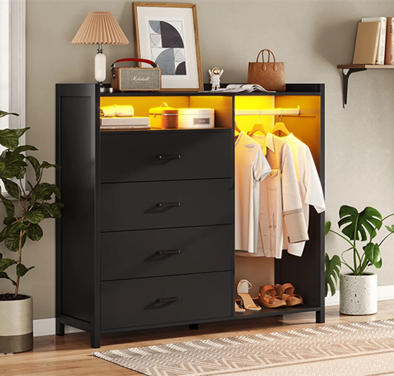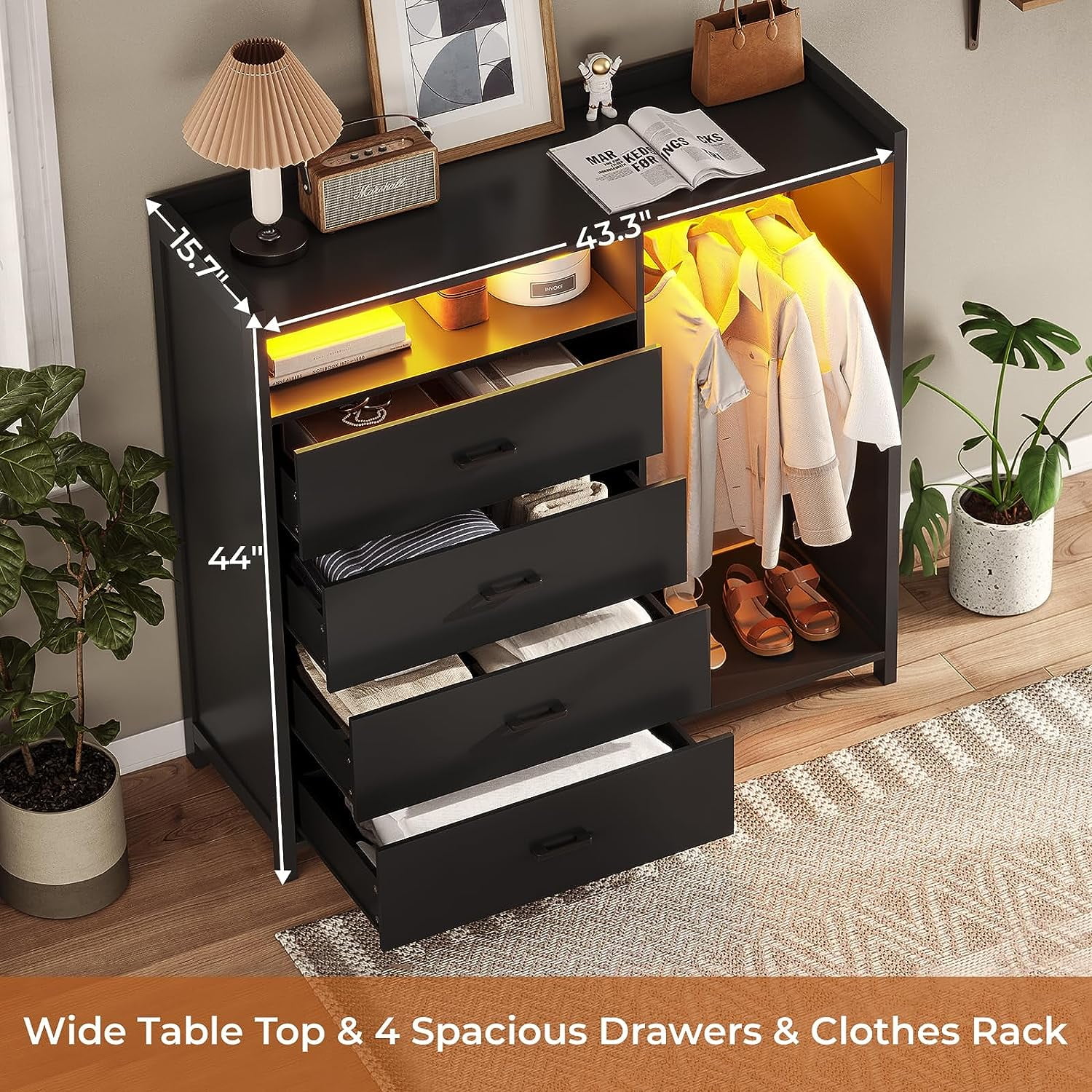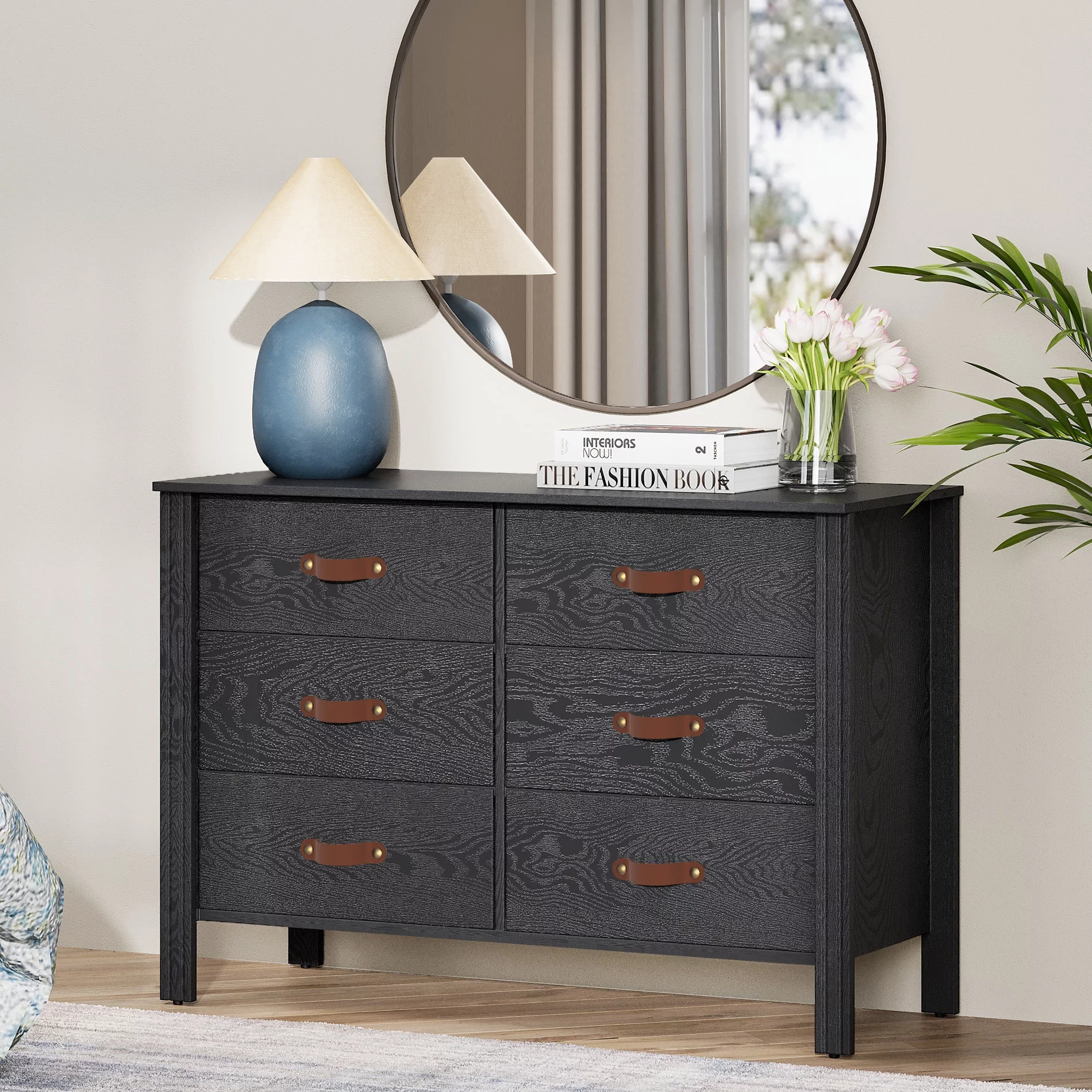 Dresser for Bedroom, Wood Dresser with 6 Drawers, Storage Cabinet for Living Room, Hallway, Black