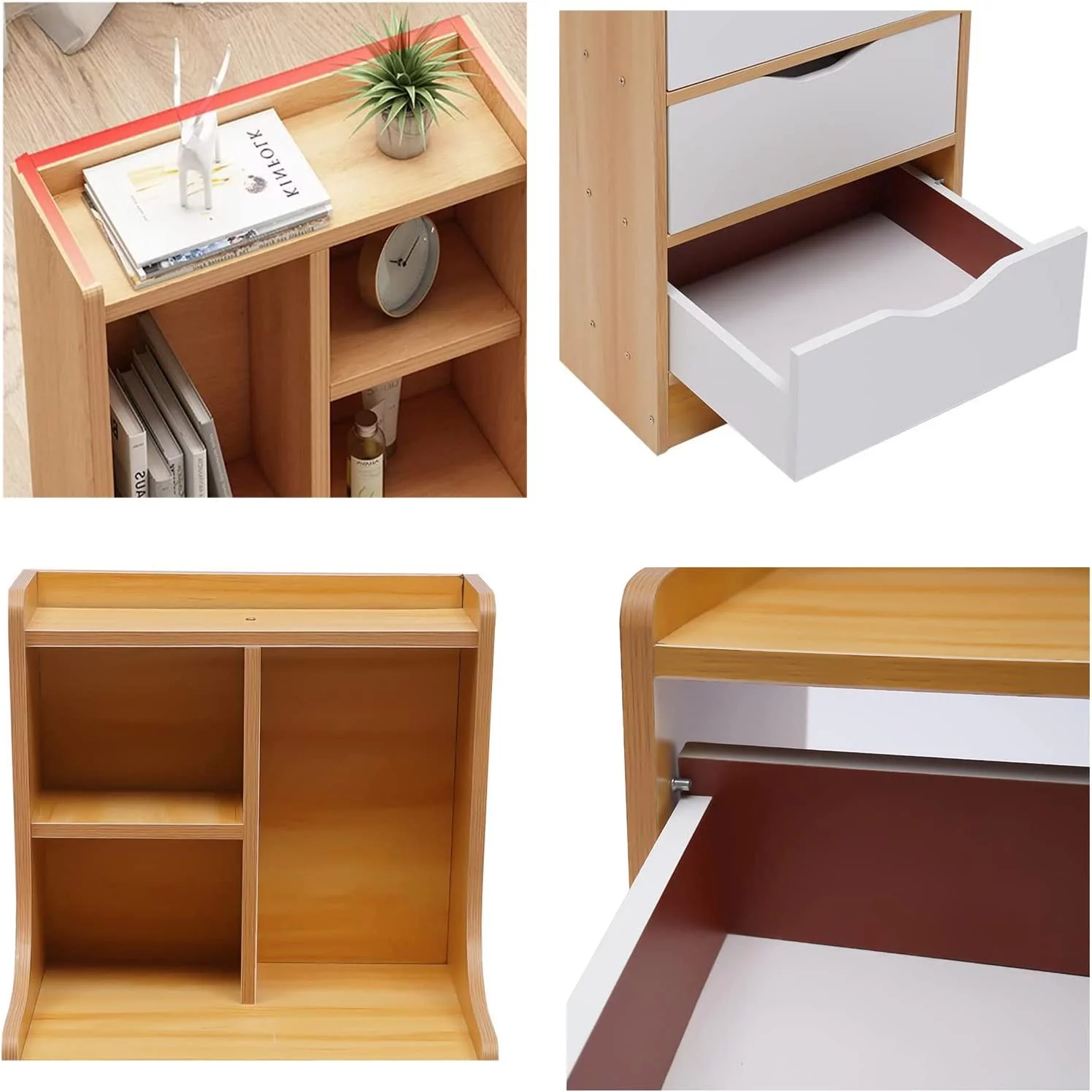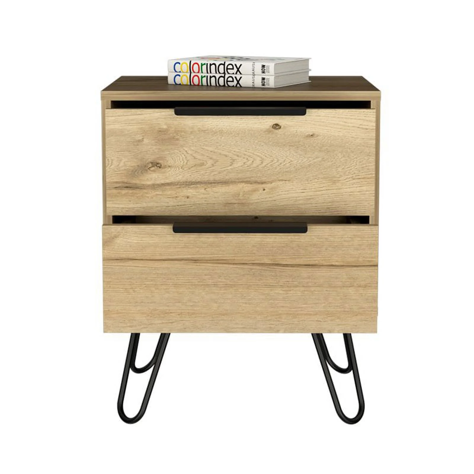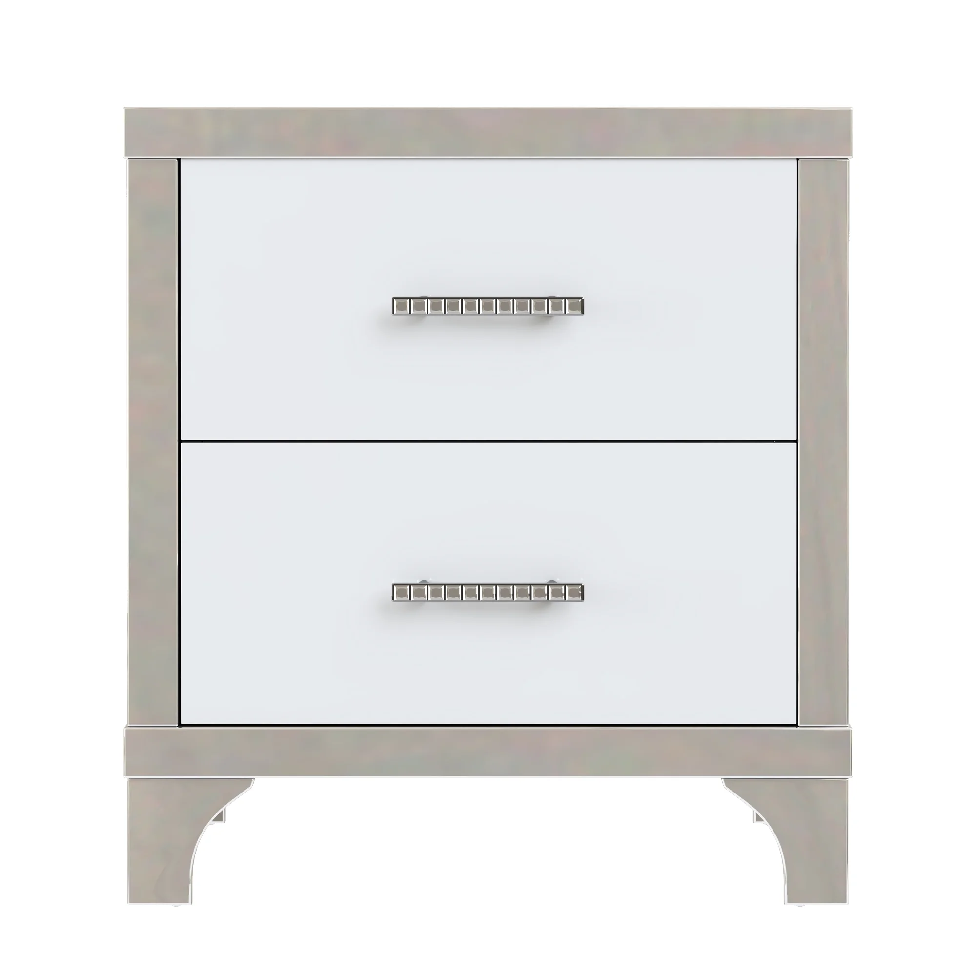 TUHOME Linden 2-Piece Bedroom Set with 3-Drawer Dresser and Nightstand, White/Smokey Oak