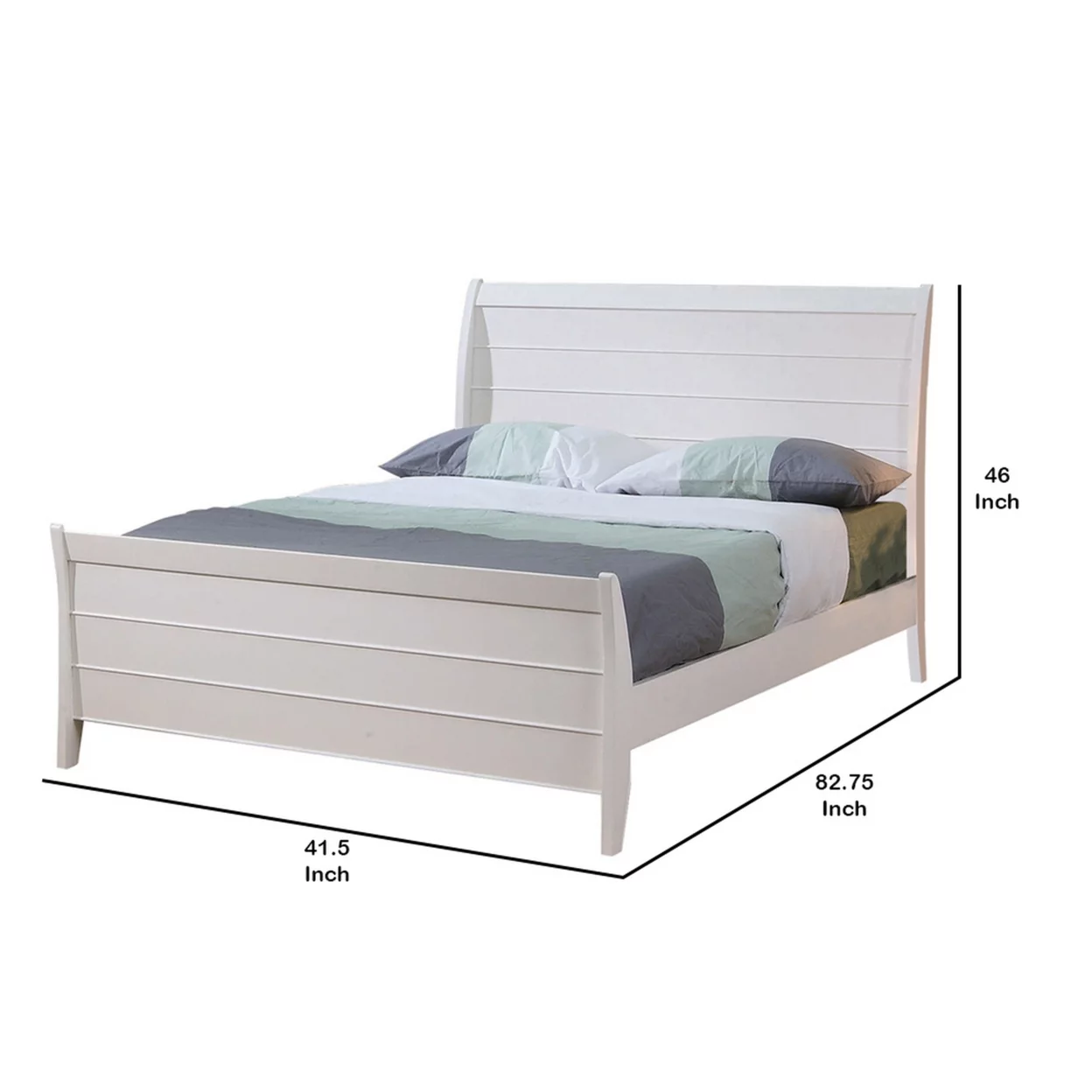 Minimally Designed Wooden Sleigh Style Twin Bed with Tapered Legs, White- Saltoro Sherpi