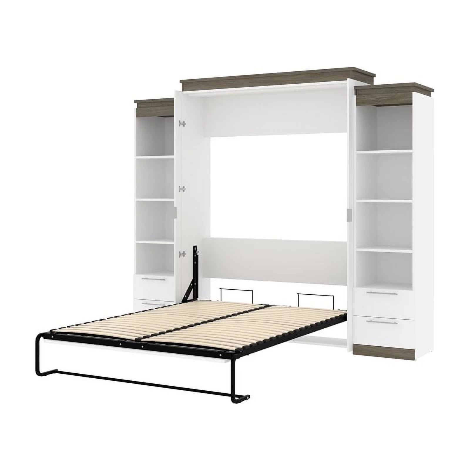 Atlin Designs 104" Queen Murphy Bed and 2 Bookcases with Drawers in White
