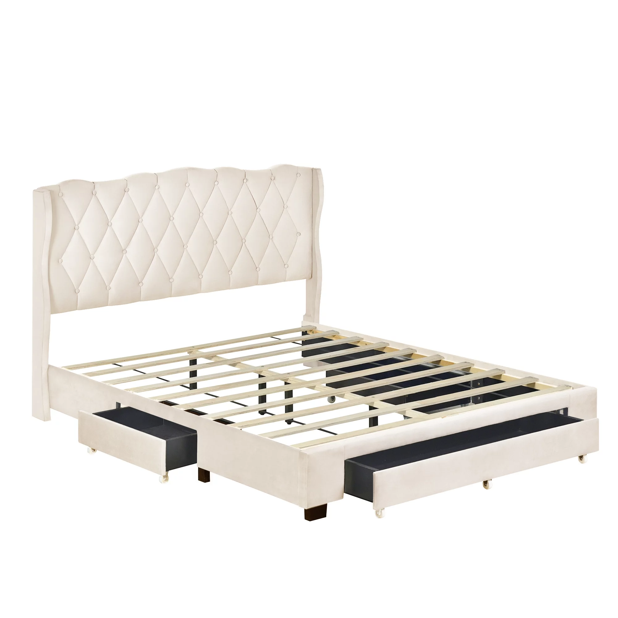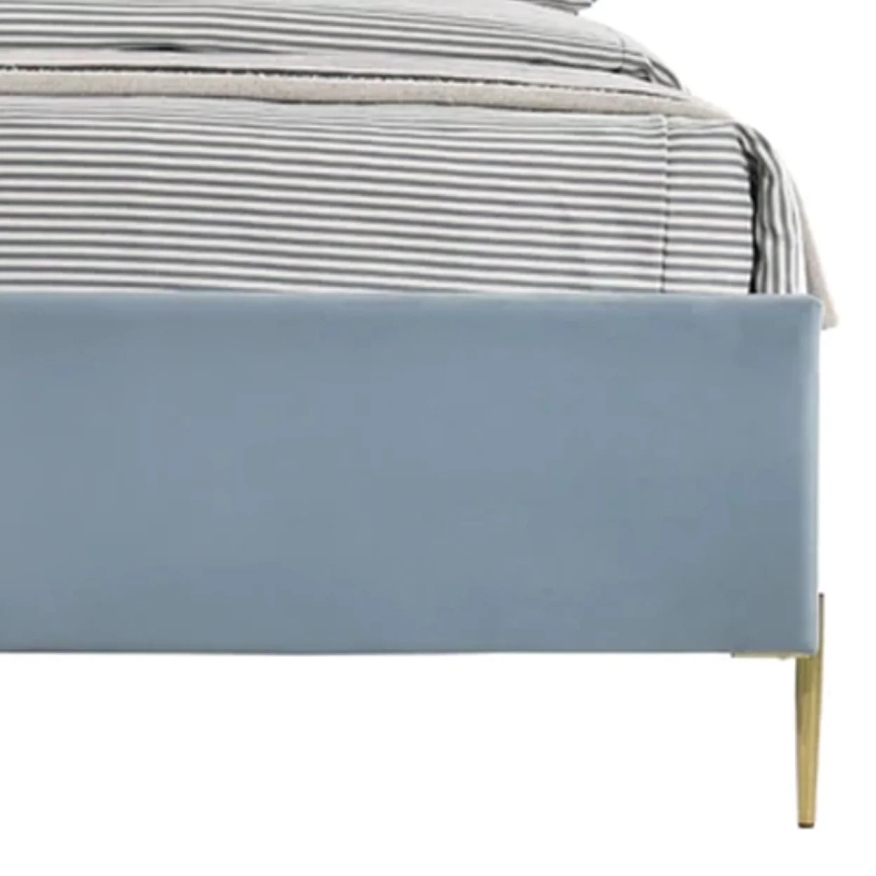 Pia Platform King Upholstered Bed with Chiseled Corners, Blue, Gold- Saltoro Sherpi