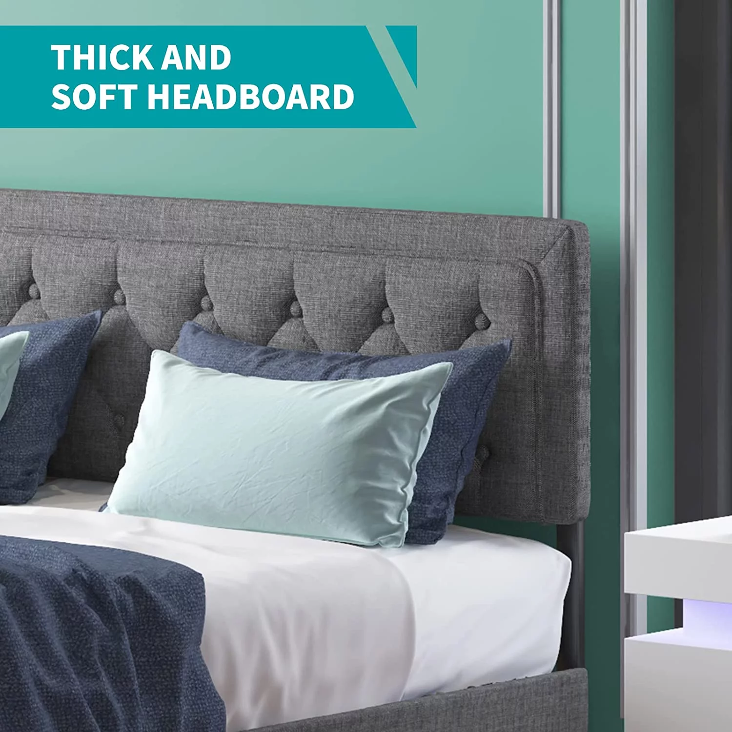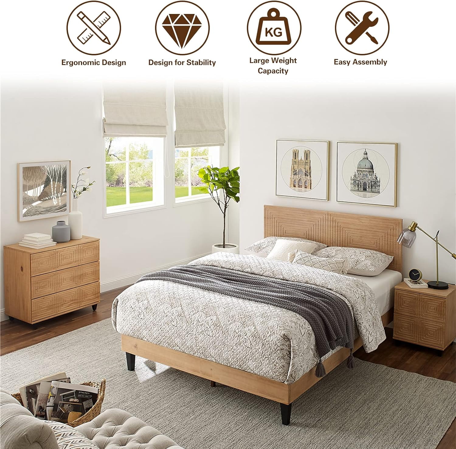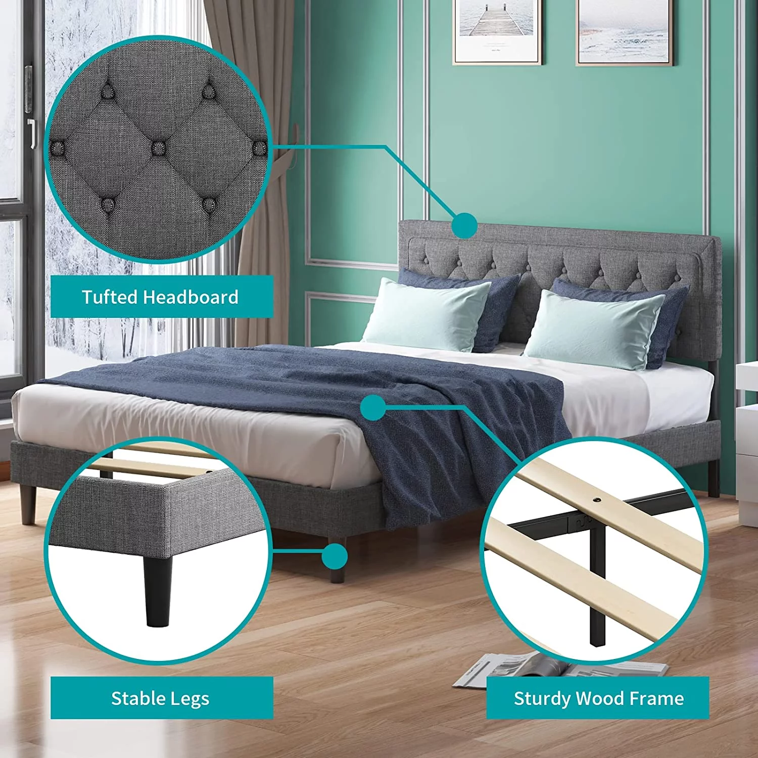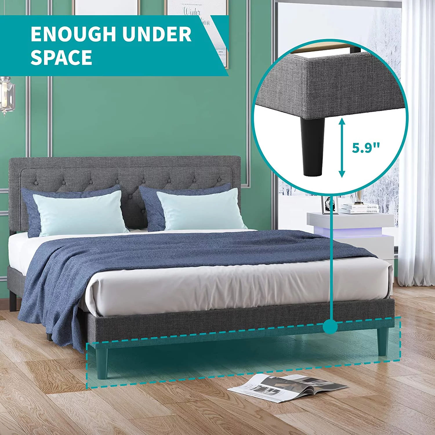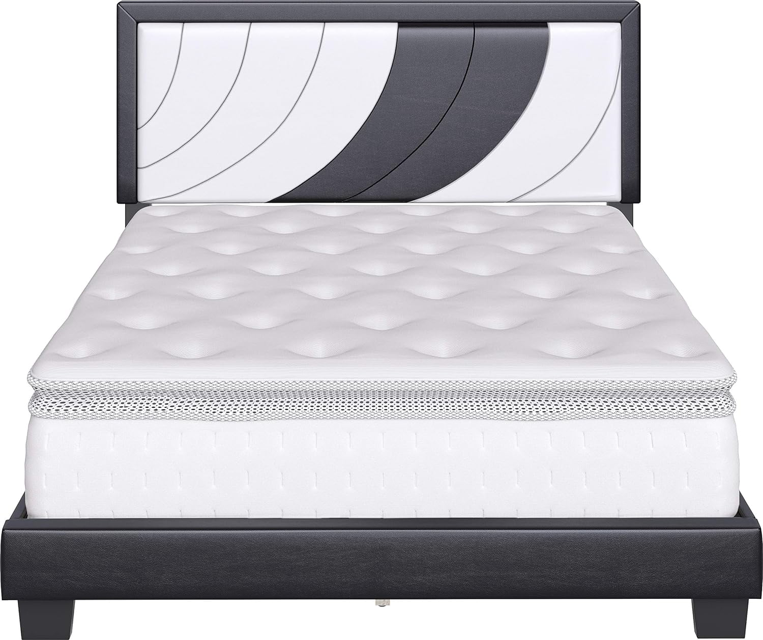 Modern Queen Metal Platform Bed Frame with Headboard, Sturdy Construction, No Need for Box Spring