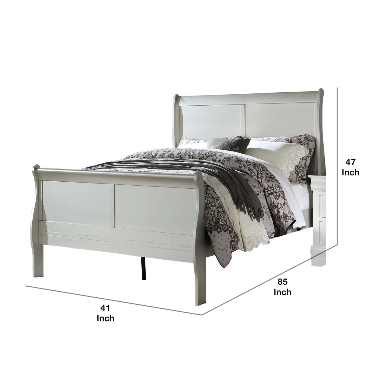 Sleigh Design Twin Size Bed with Rectangular Thin Legs, Silver- Saltoro Sherpi