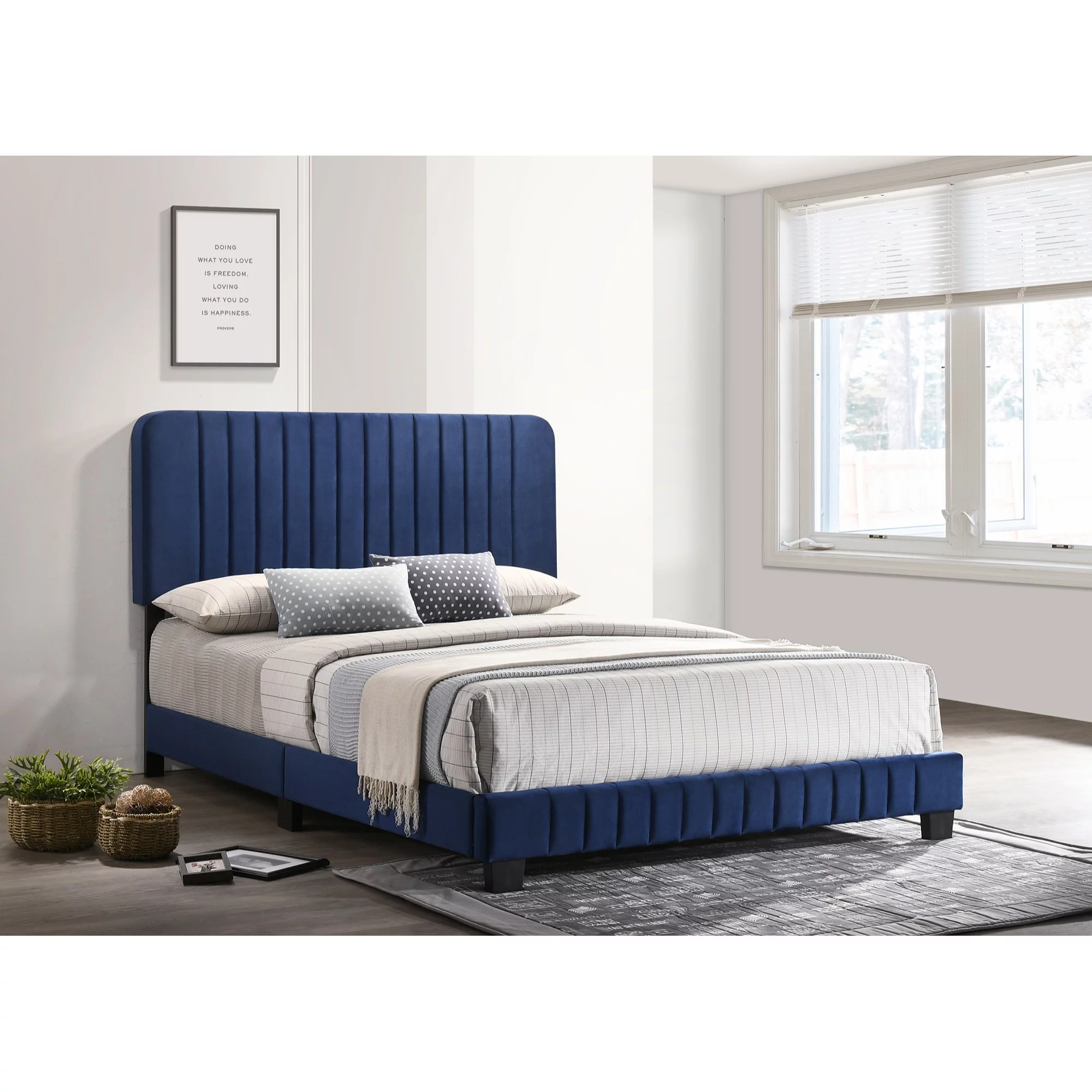 Passion Furniture Lodi Velvet Upholstered Channel Tufted Panel Bed, Navy Blue - King Size