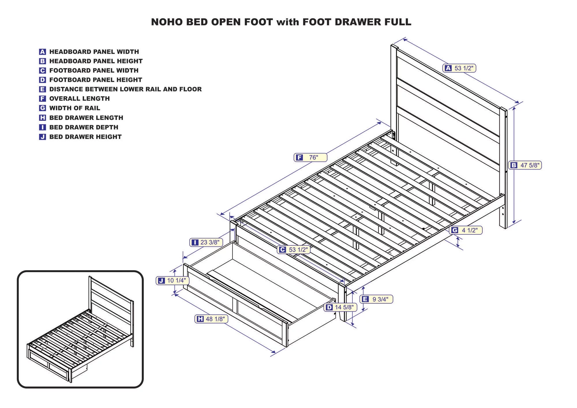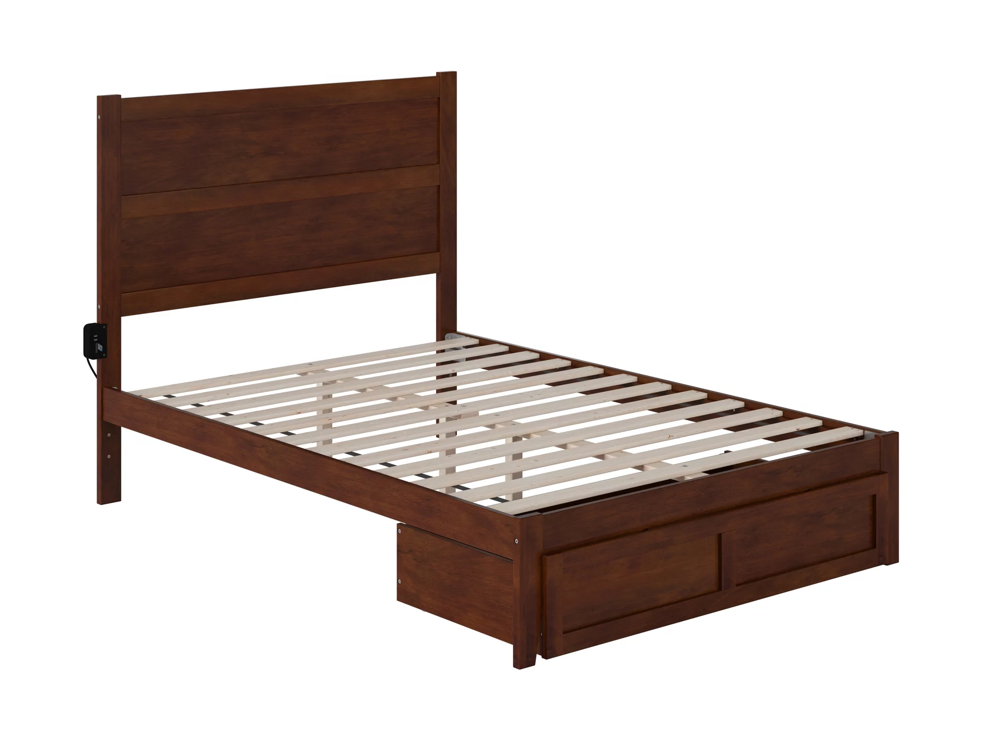 AFI NoHo 14" Full Wood Platform Bed Frame with Foot Drawer Storage, Walnut