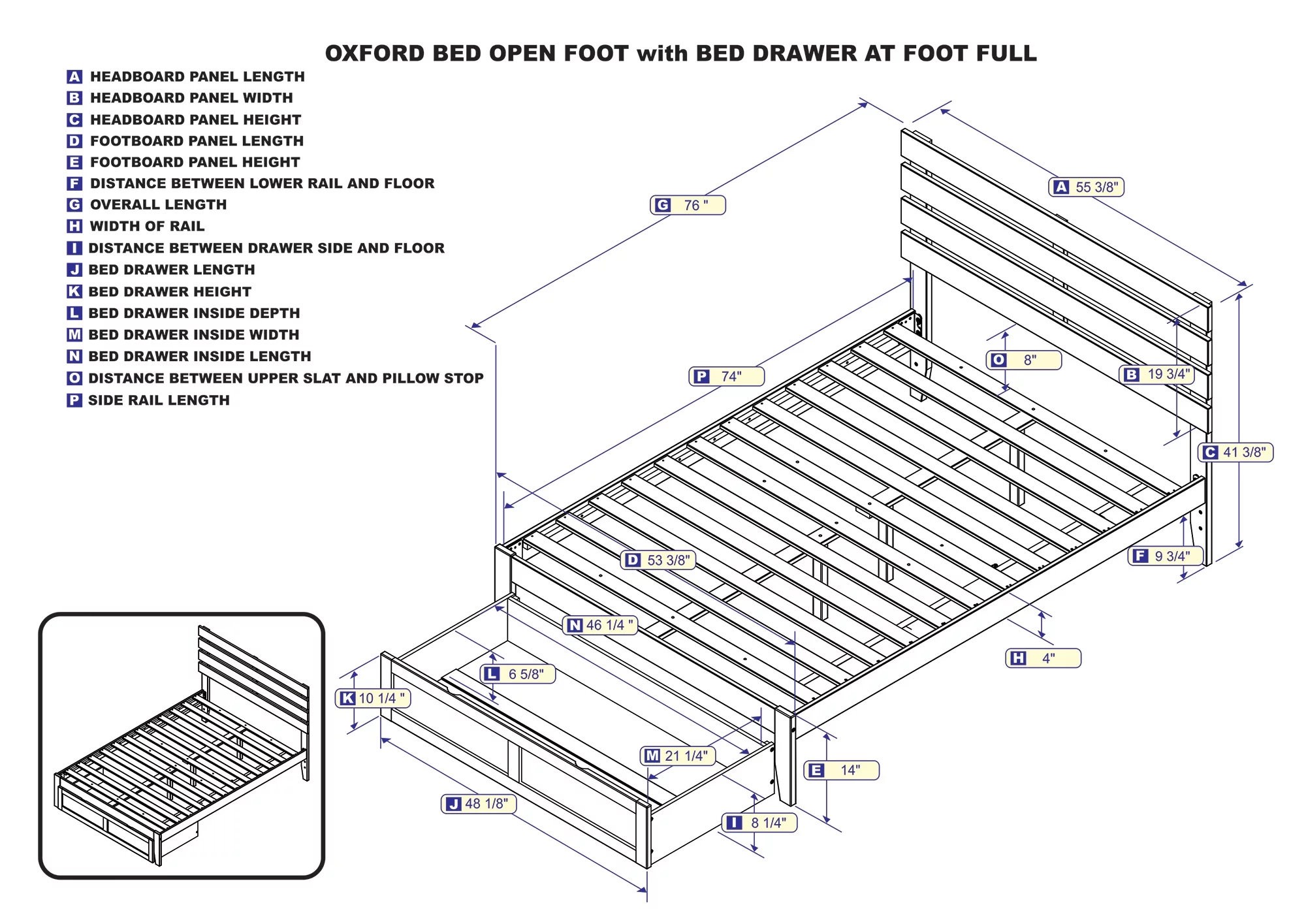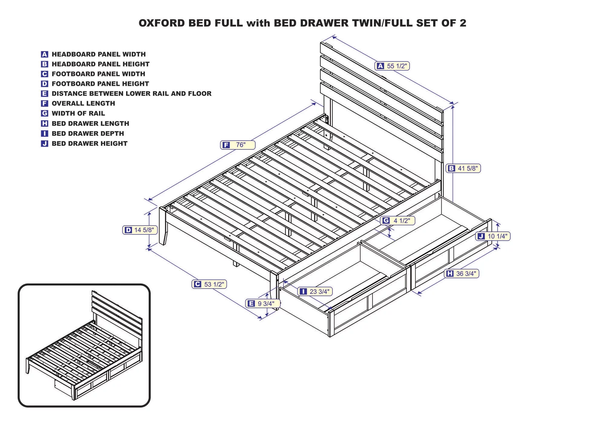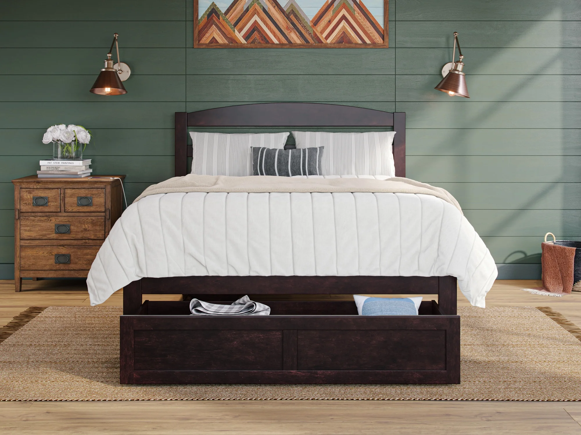 AFI Oxford 14" Full Wood Platform Bed Frame with Set of 2 Storage Drawers, Espresso