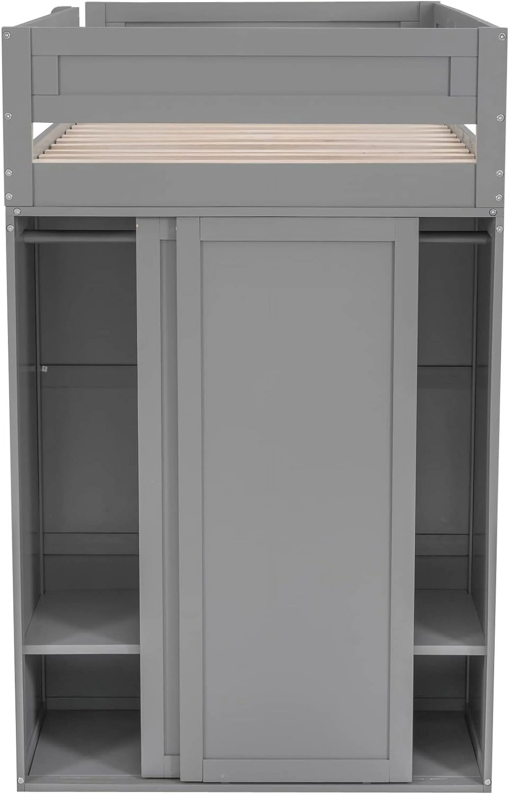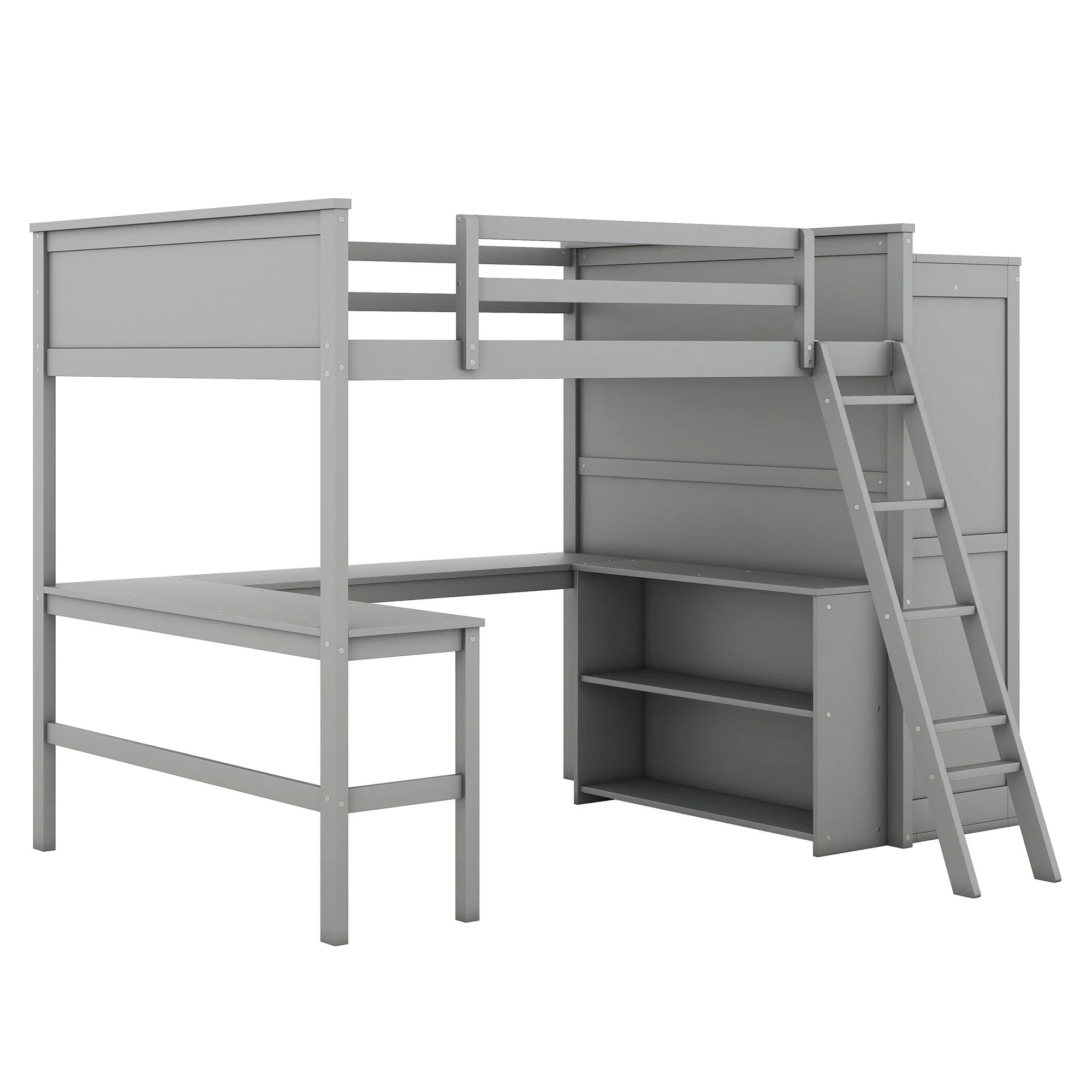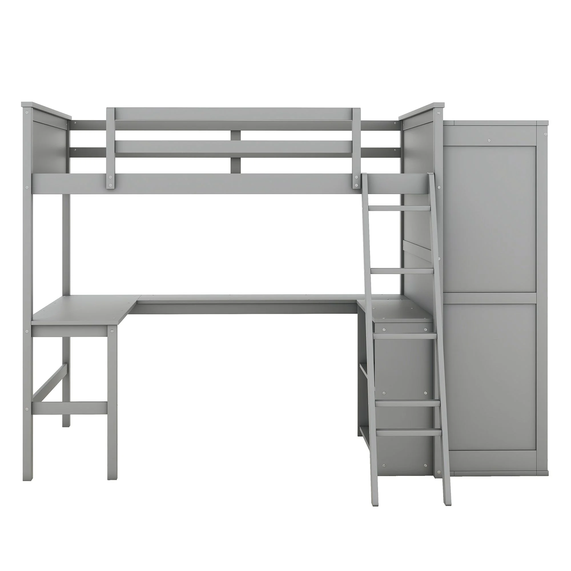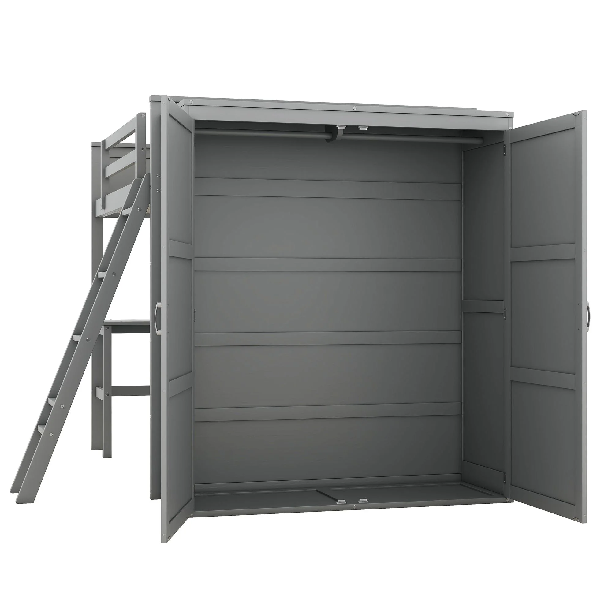 Churanty Full Size Loft Bed with Wardrobe and Built-in Desk, Solid Wood High Loft Bed Frame with Storage for Kids,Gray