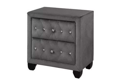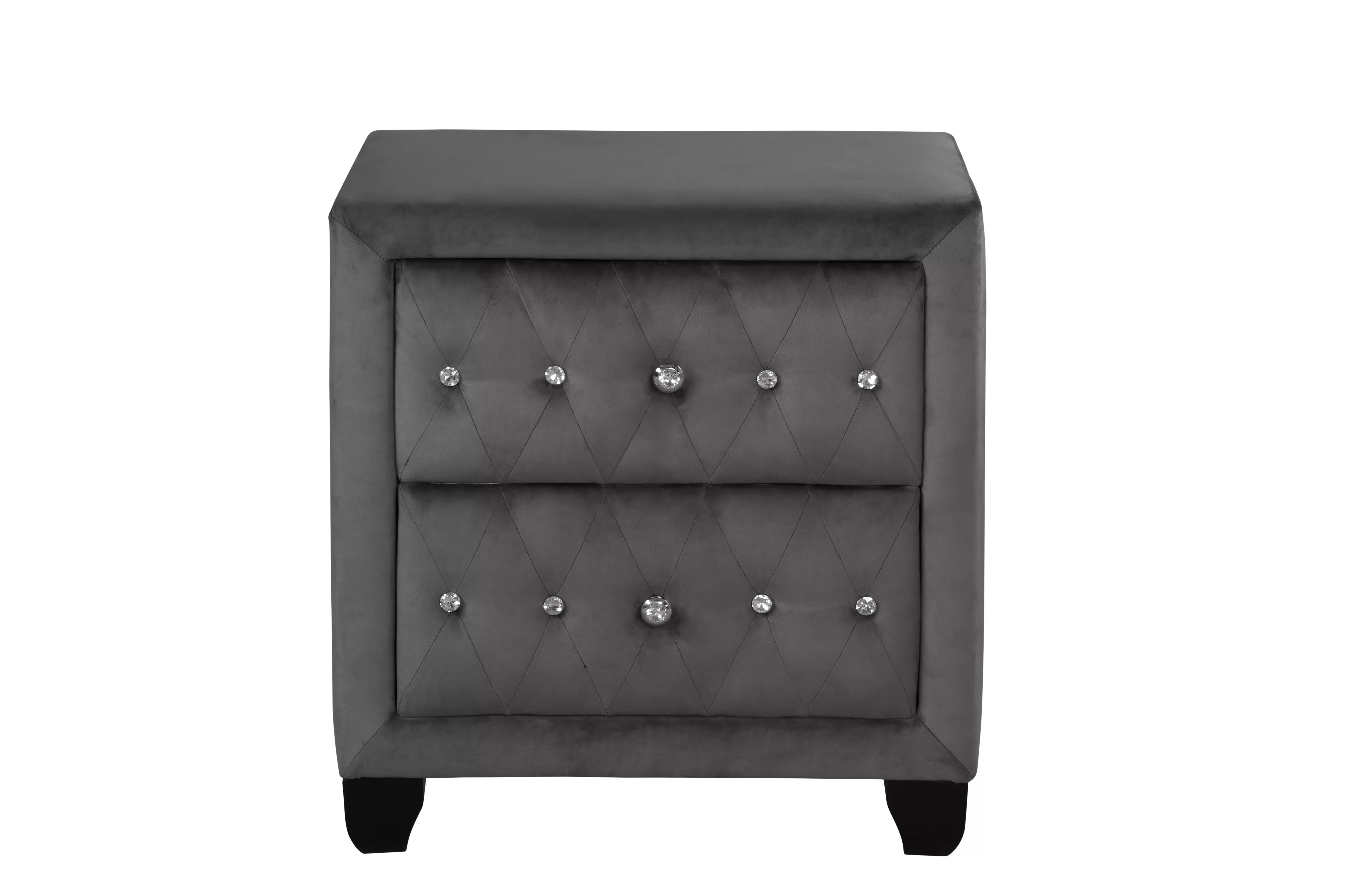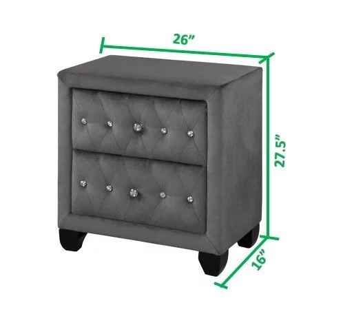 Eastern King Size Bed And 2x Nightstands Gray Finish Transitional Wooden Bedroom Tufted Headboard Bedframe 3pc Furniture Set