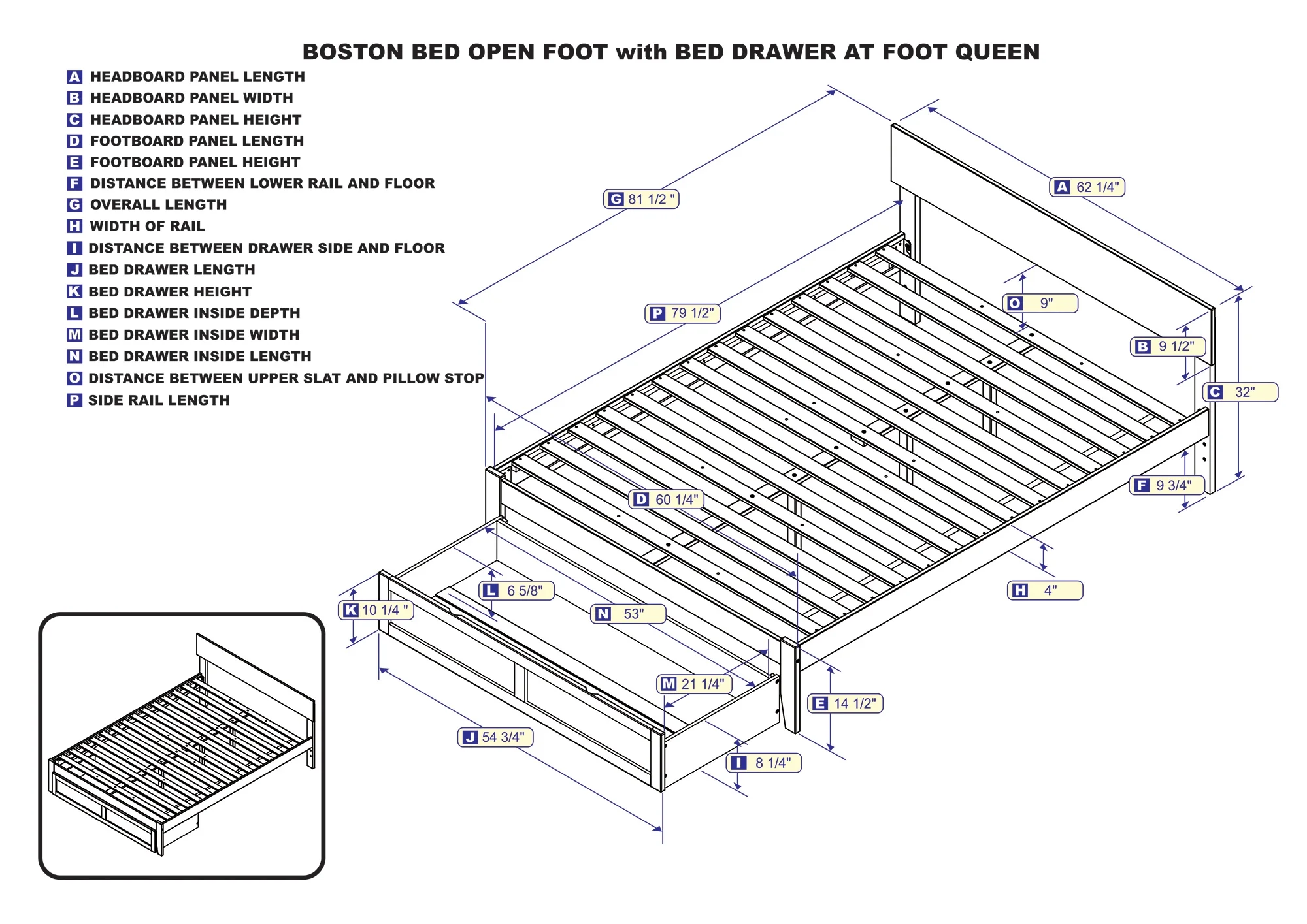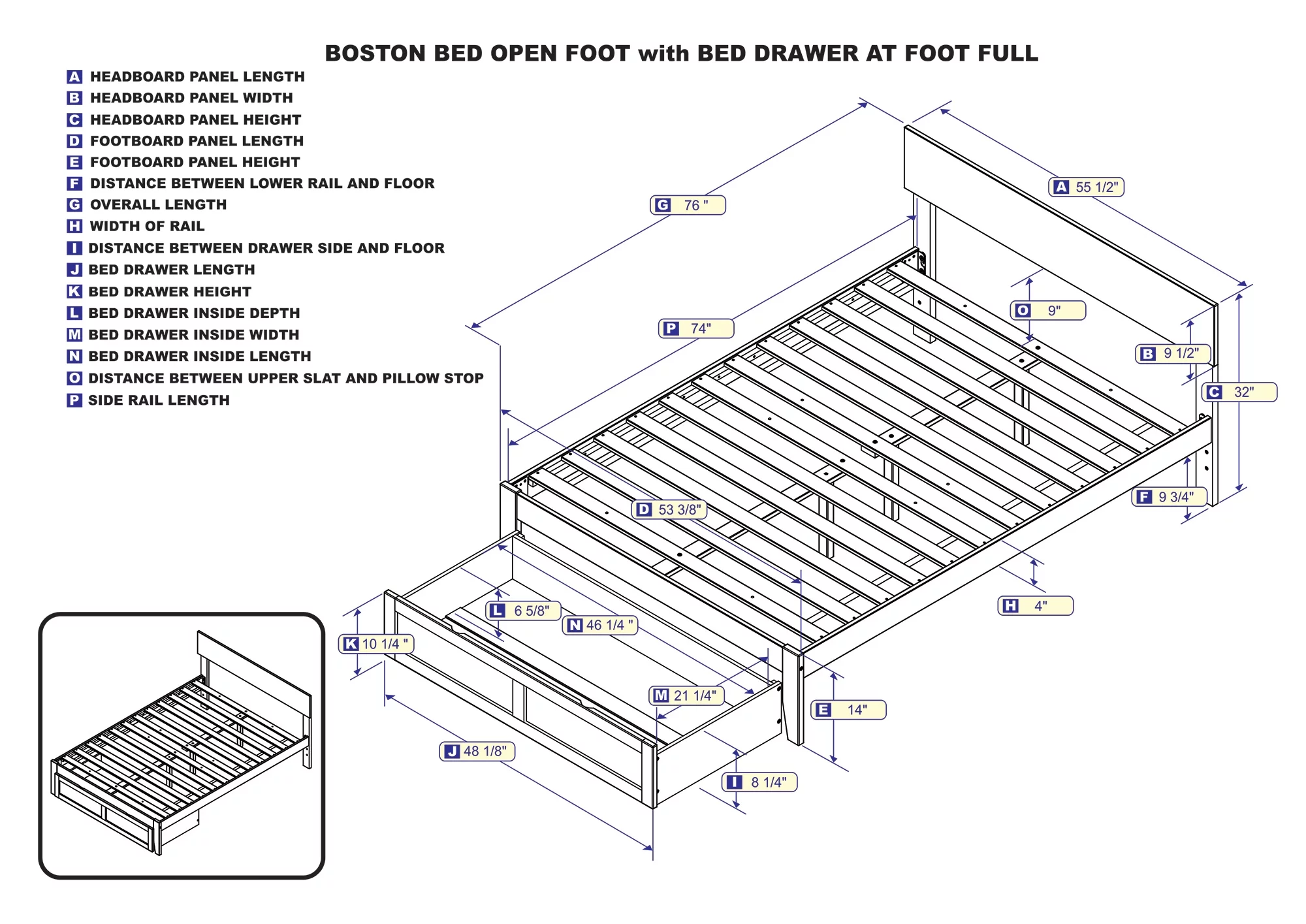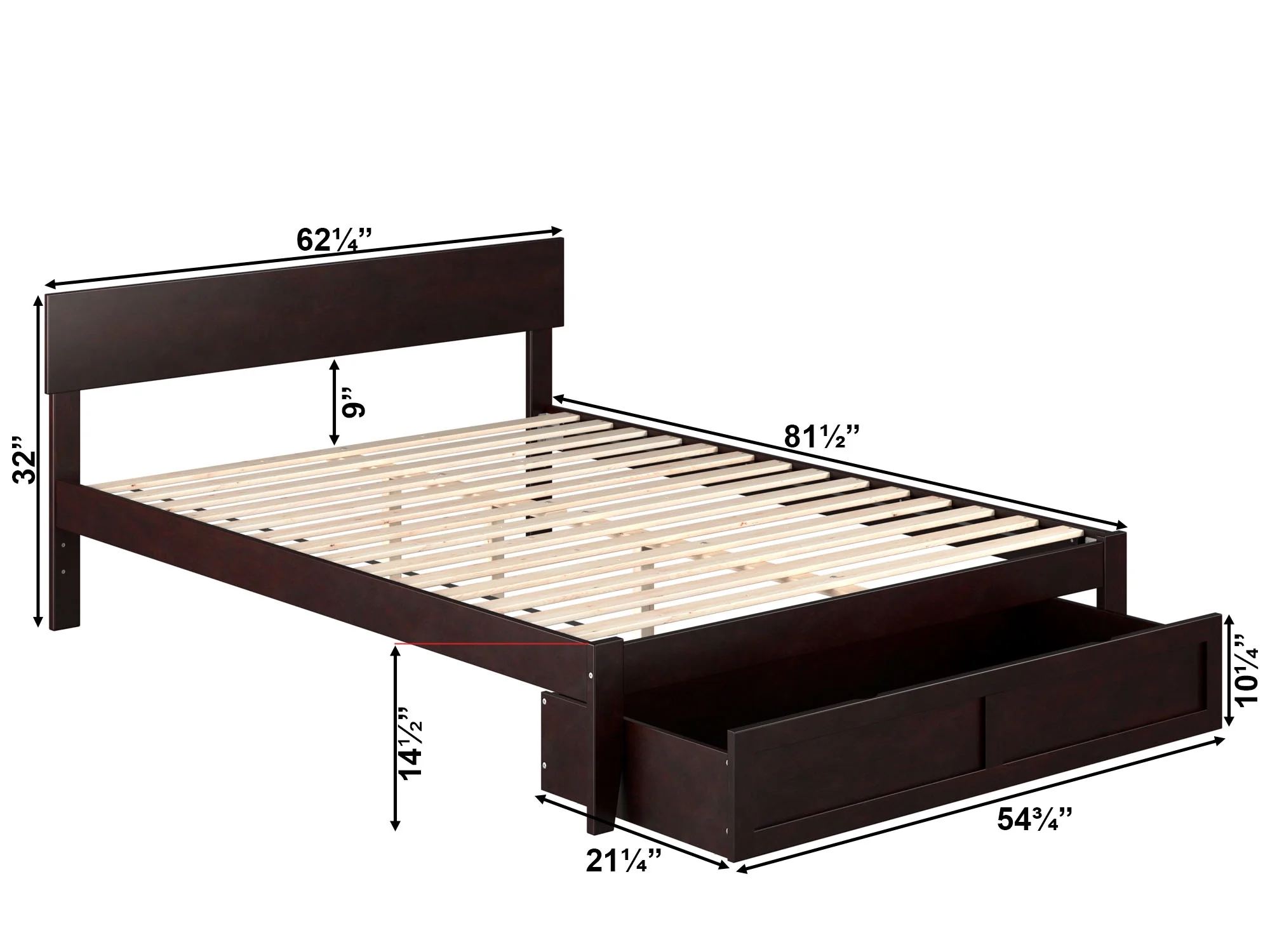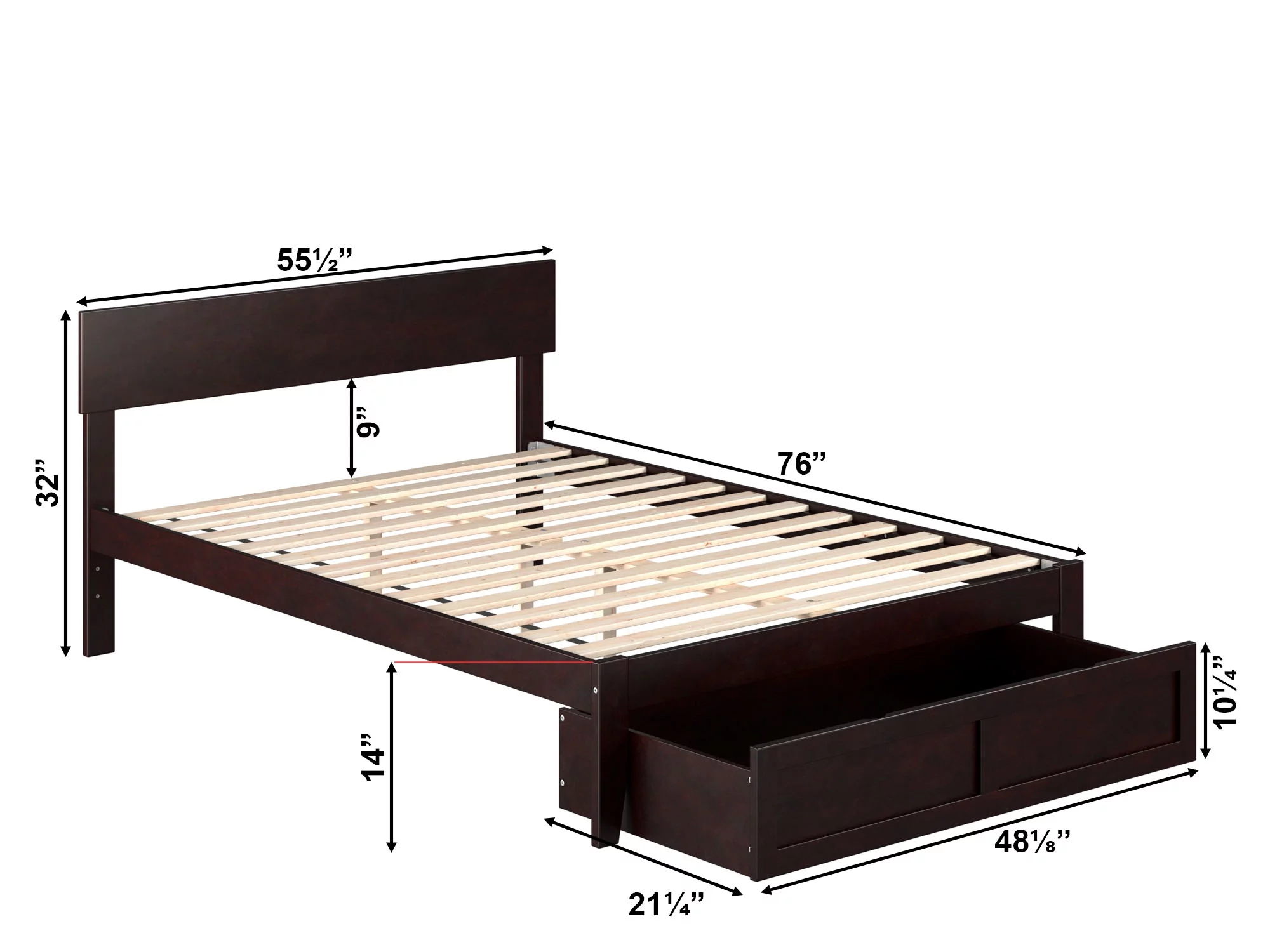 AFI Boston 14" Full Wood Platform Bed Frame with Foot Drawer Storage, Espresso