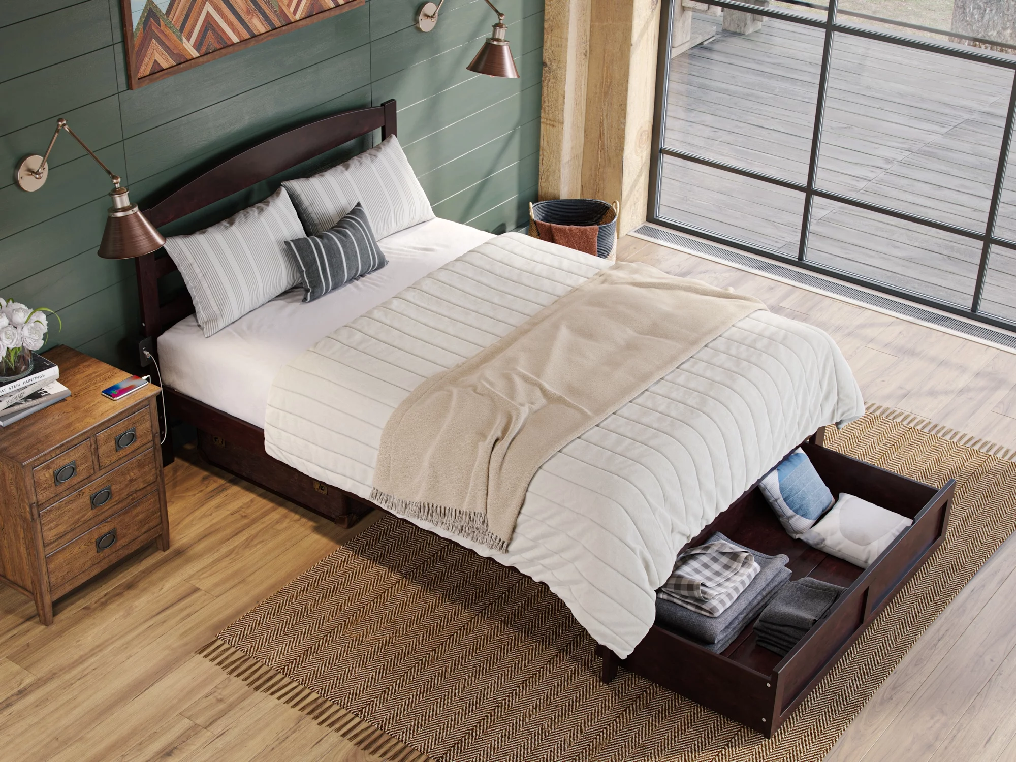 AFI Tahoe 14" Queen Wood Platform Bed Frame with Foot Drawer Storage, Espresso