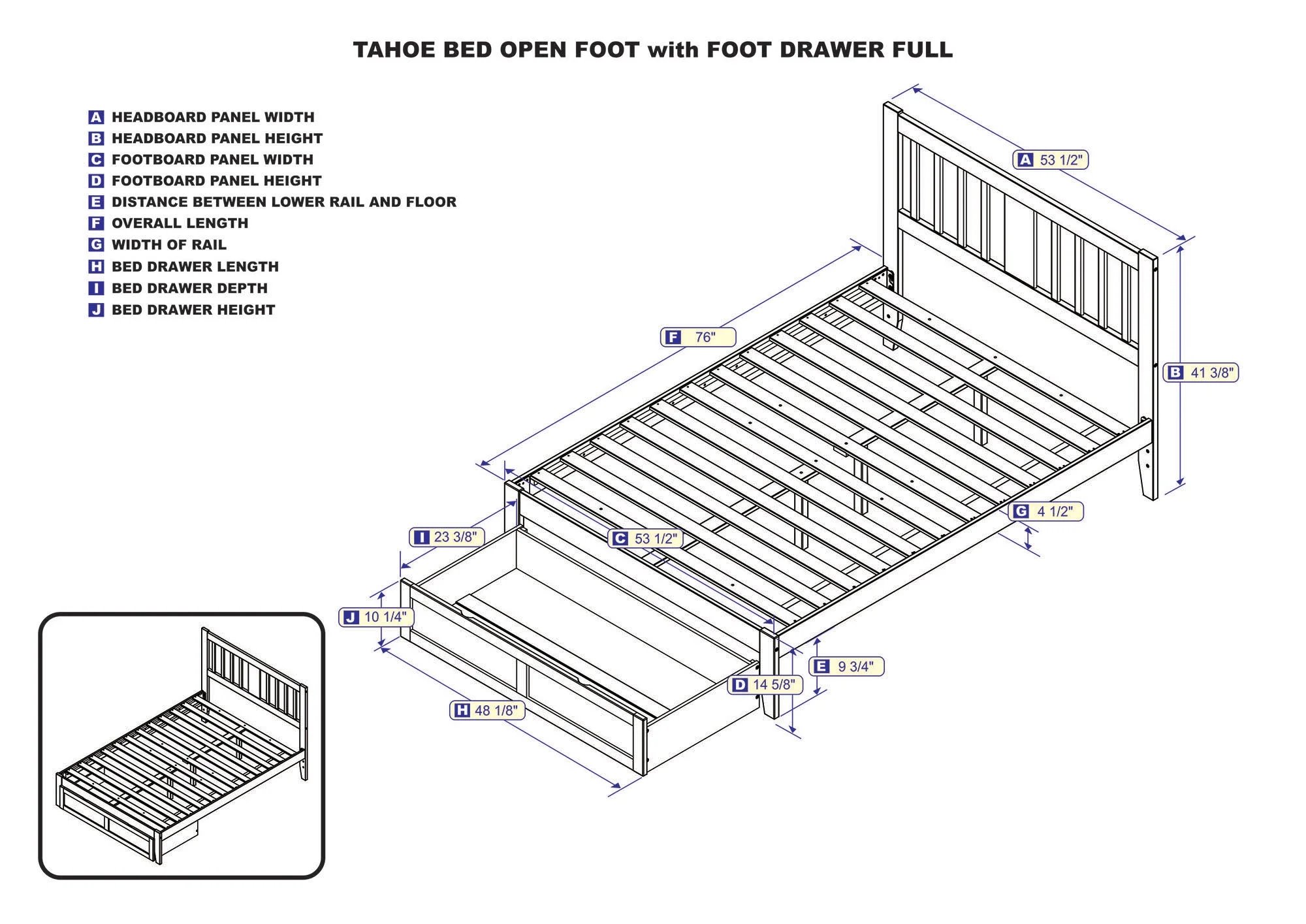 AFI Tahoe 14" Full Wood Platform Bed Frame with Foot Drawer Storage, Espresso