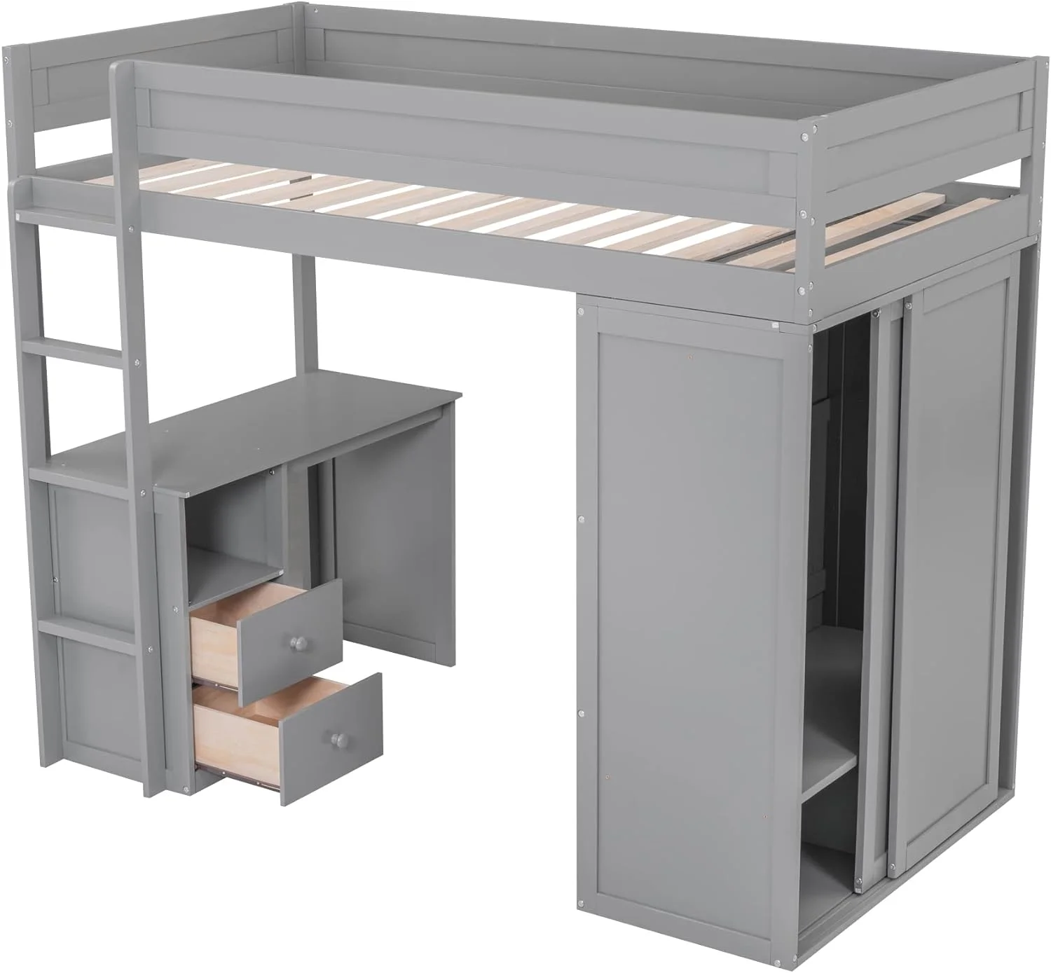 CoSoTower Wood Full Size Loft Bed with Wardrobes and 2-Drawer Desk with Cabinet, Gray