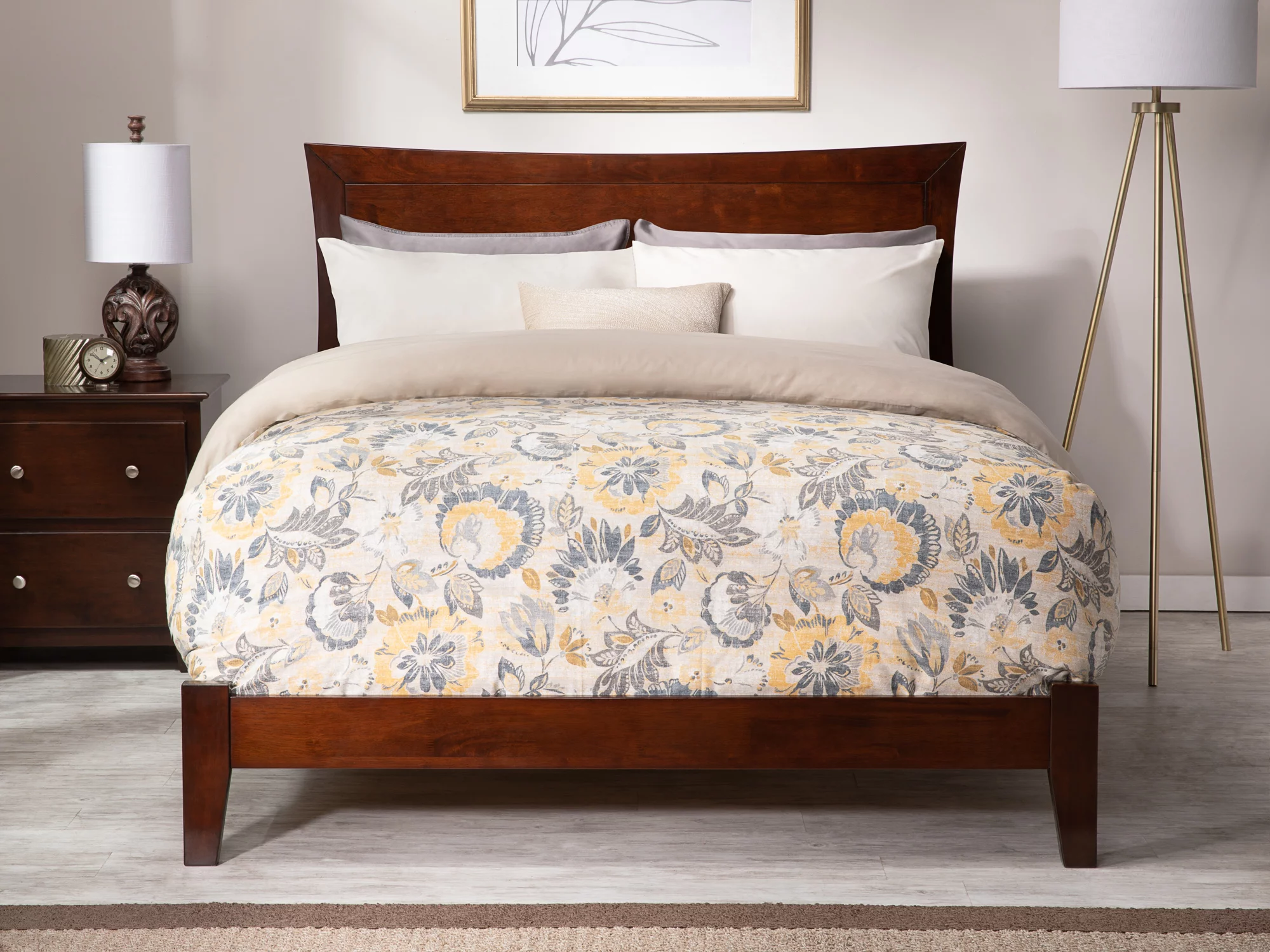 AFI Metro Full Wood Traditional Bed Frame with Panel Headboard, Walnut