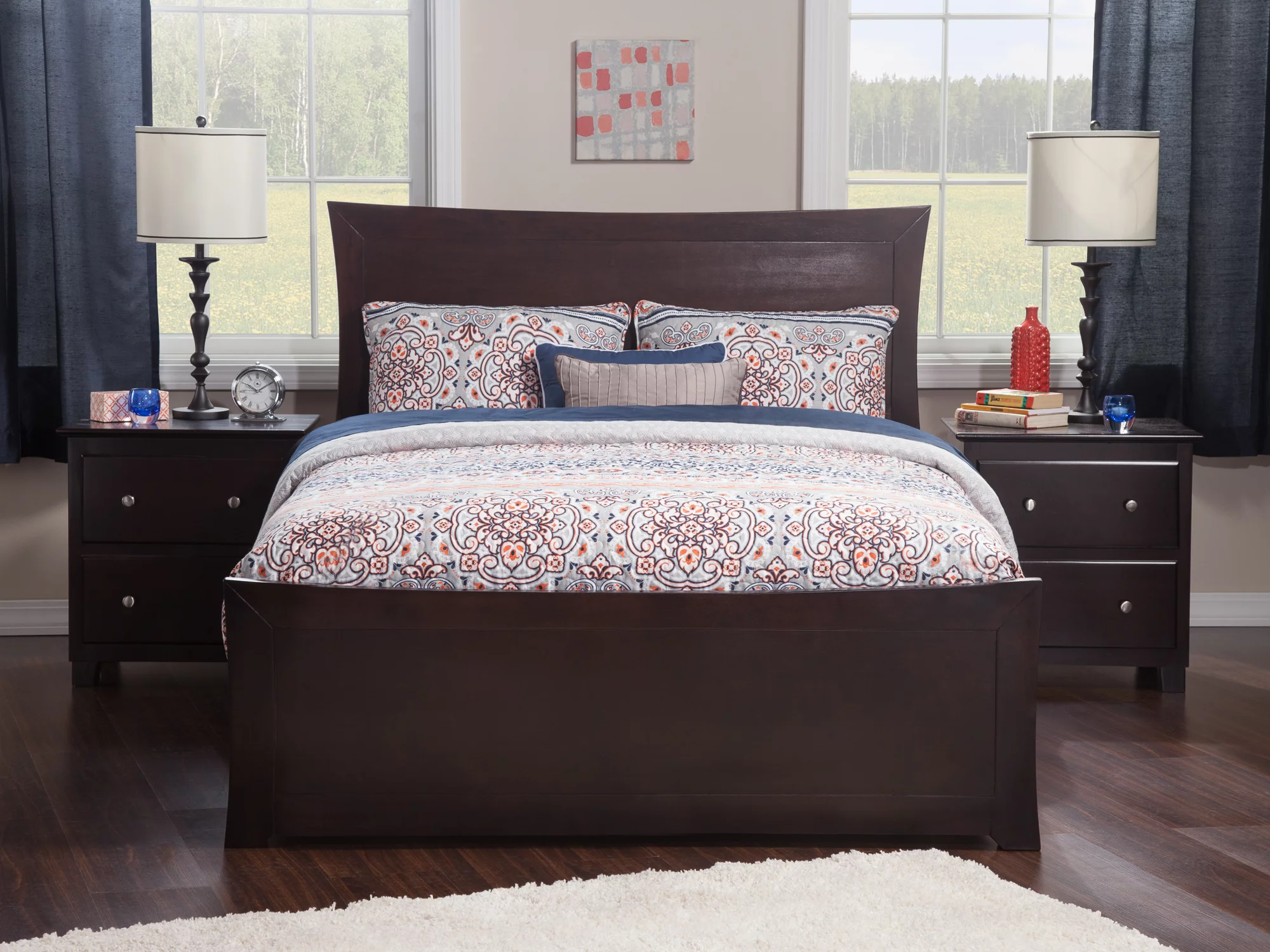 AFI Metro Queen Wood Platform Bed Frame with Panel Headboard & Footboard, Espresso