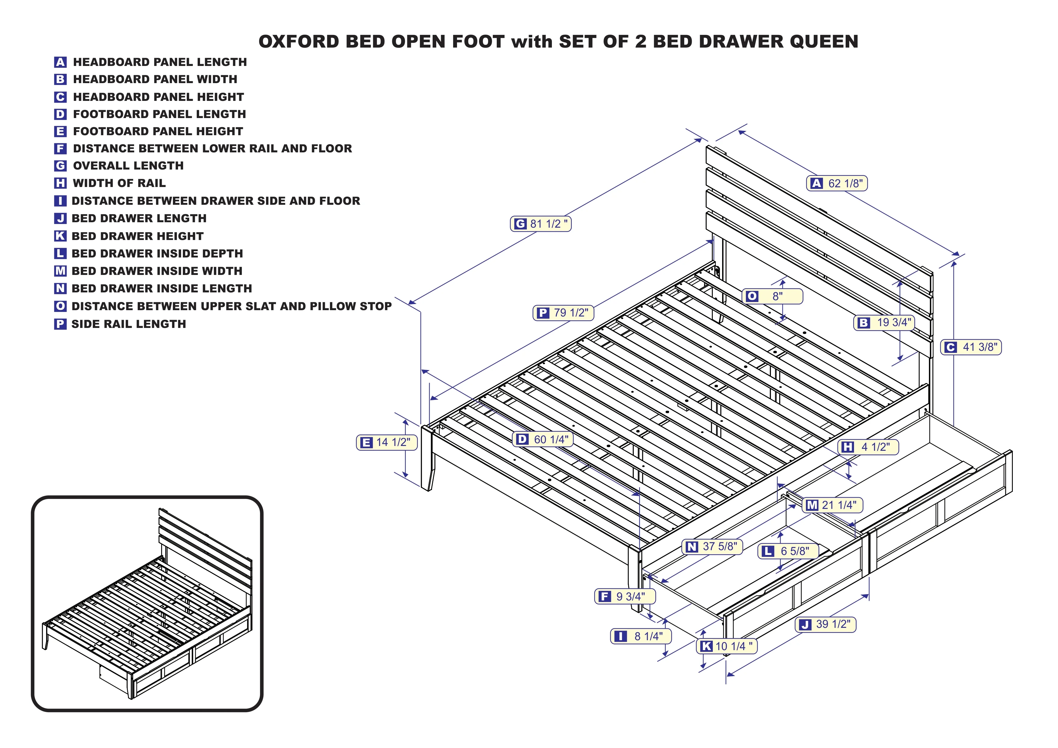 AFI Oxford 14" Queen Wood Platform Bed Frame with Set of 2 Storage Drawers, Espresso