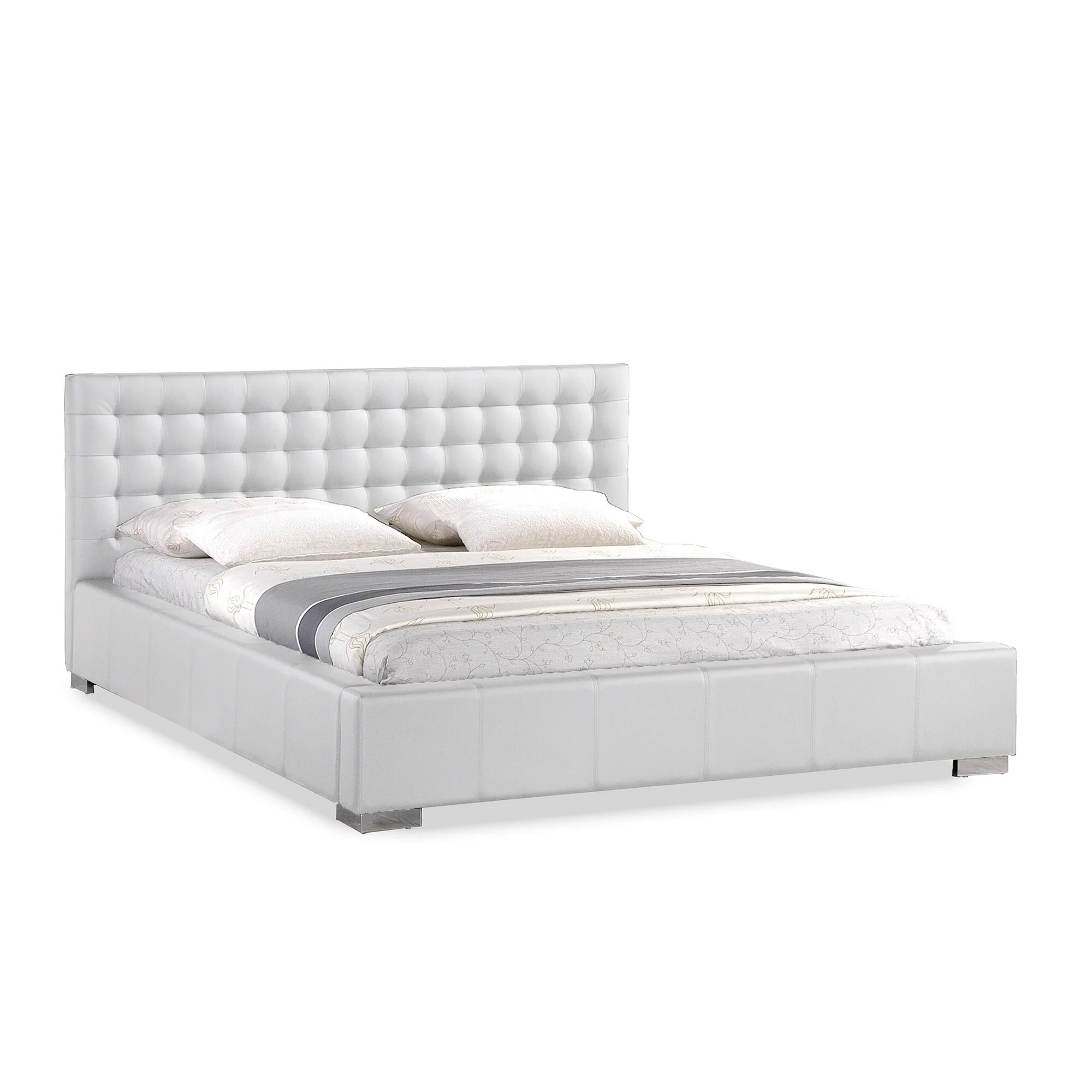Maklaine 4-piece Modern Wood Tufted Eastern King Bedroom Set in Silver