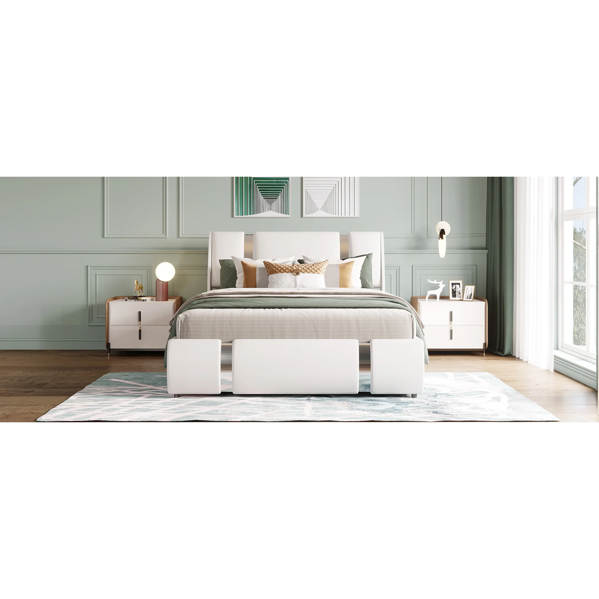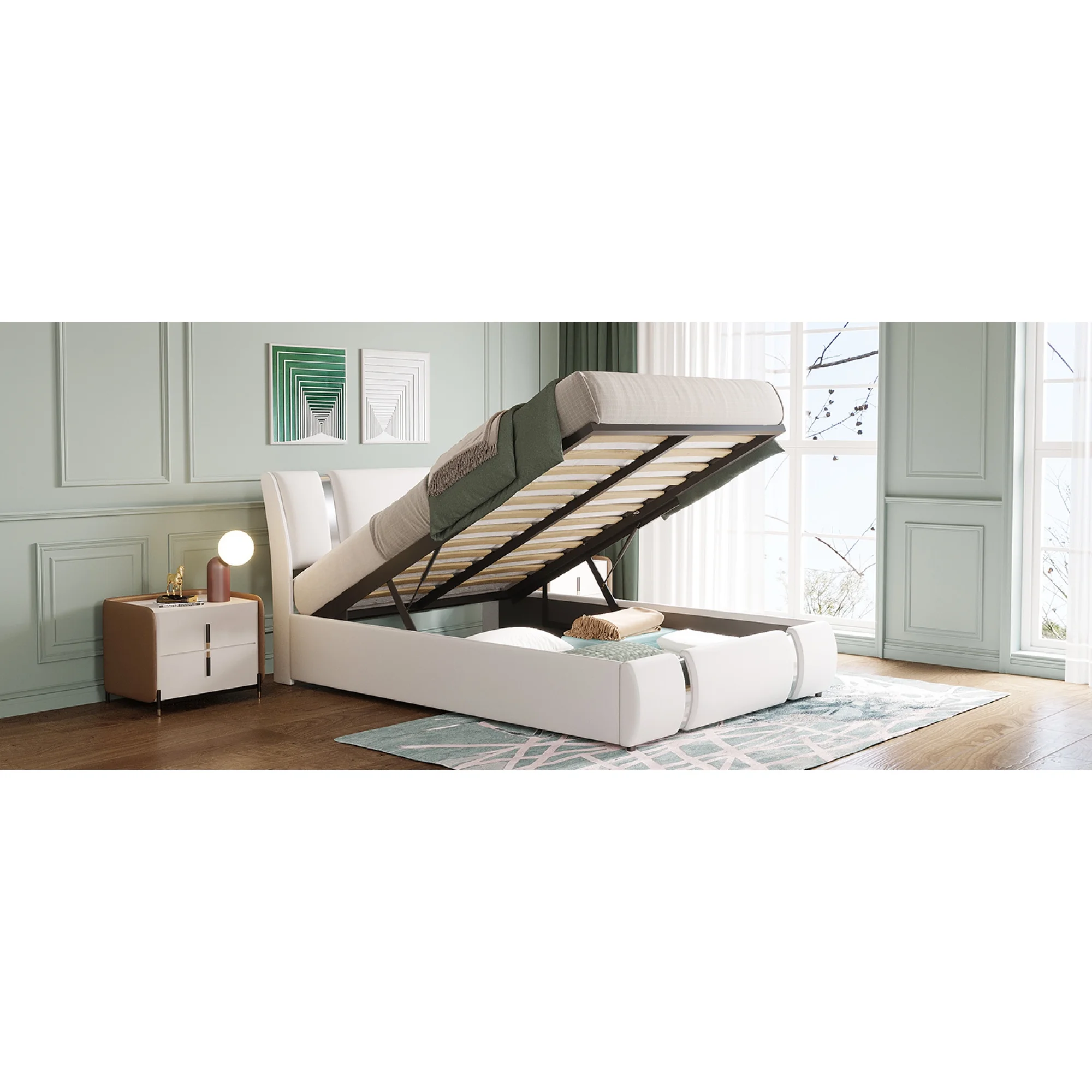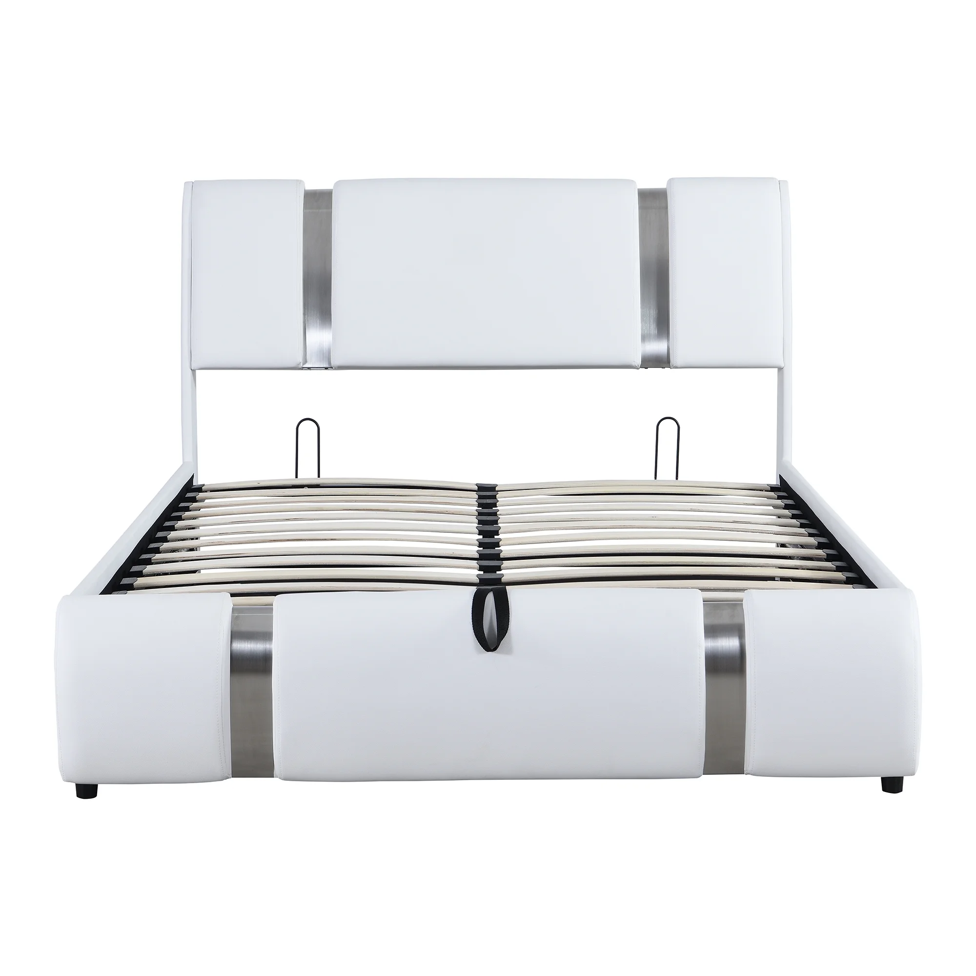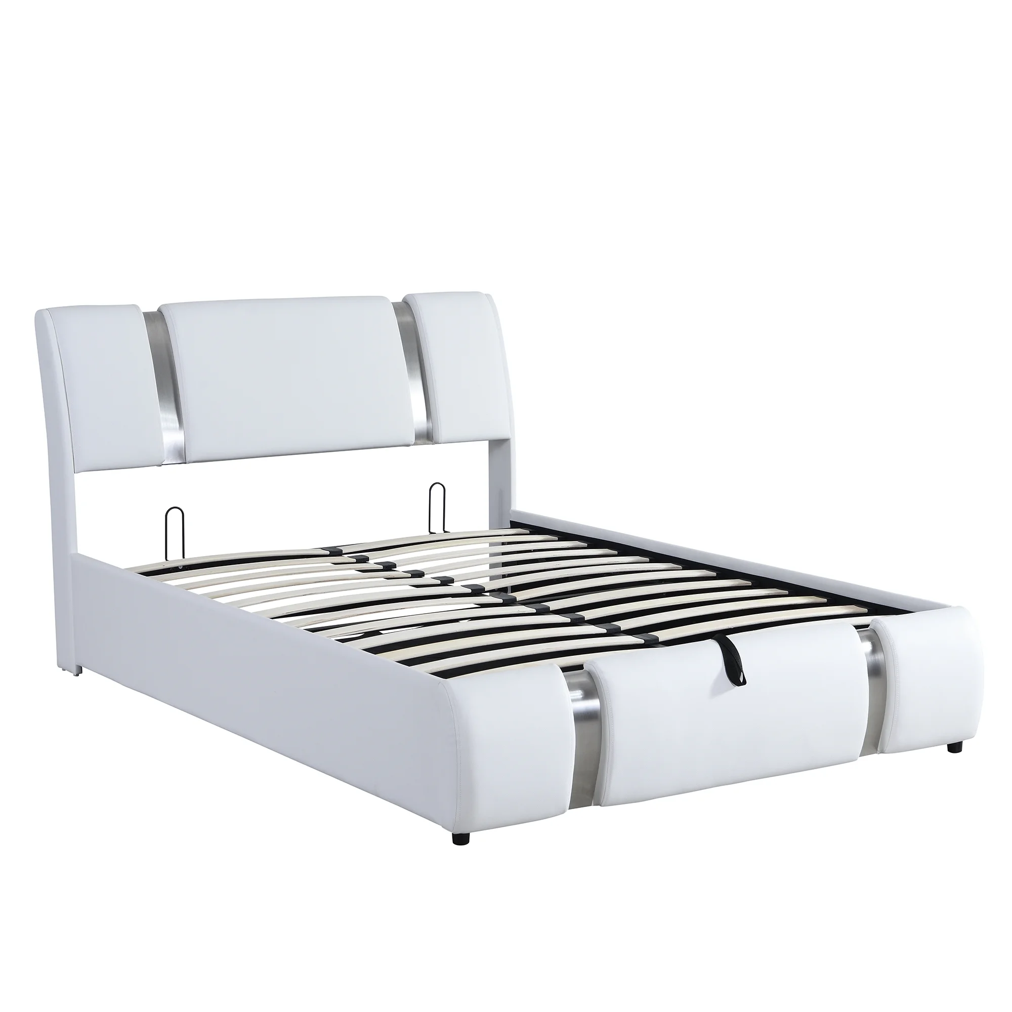 Dawn Whisper Full Size Upholstered Faux Leather Platform bed with a Hydraulic Storage System, White