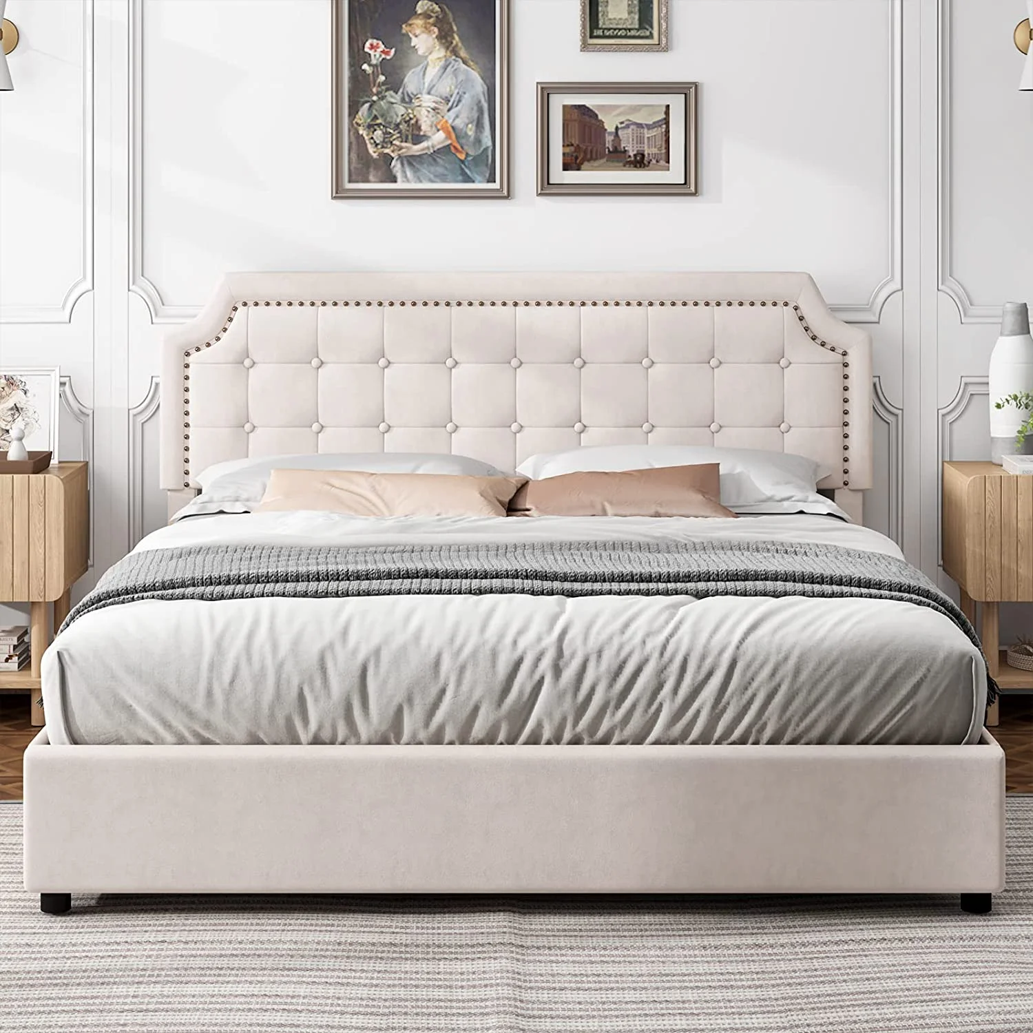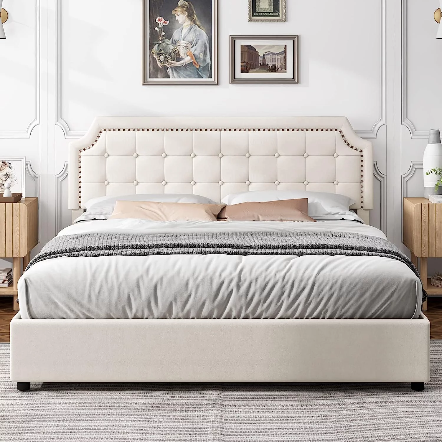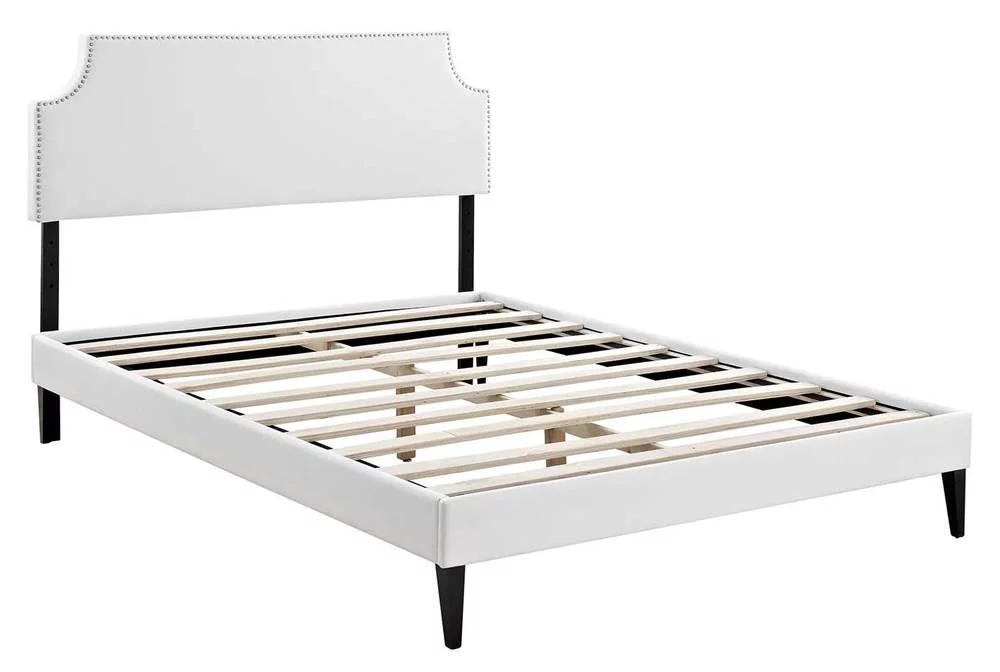 Dawn Whisper Full Size Upholstered Faux Leather Platform bed with a Hydraulic Storage System, White
