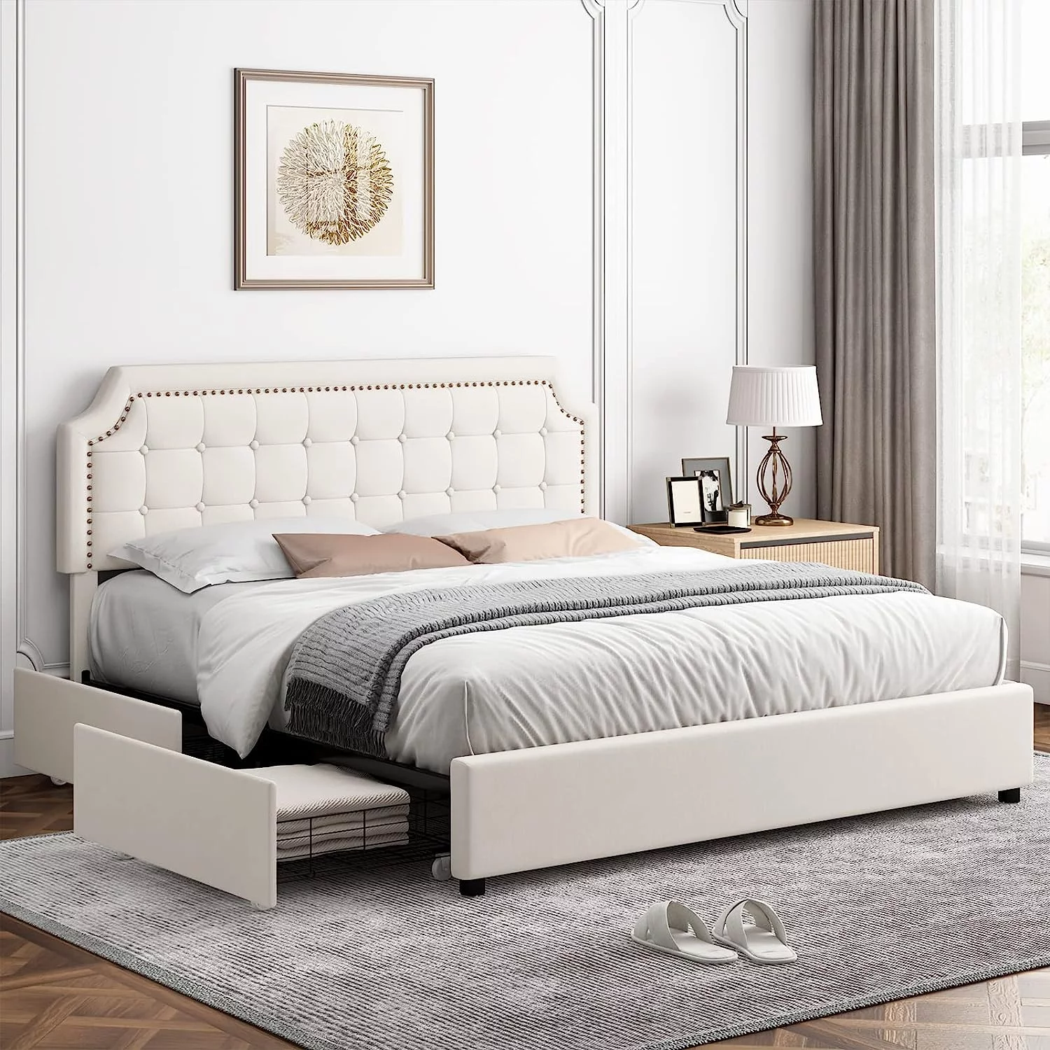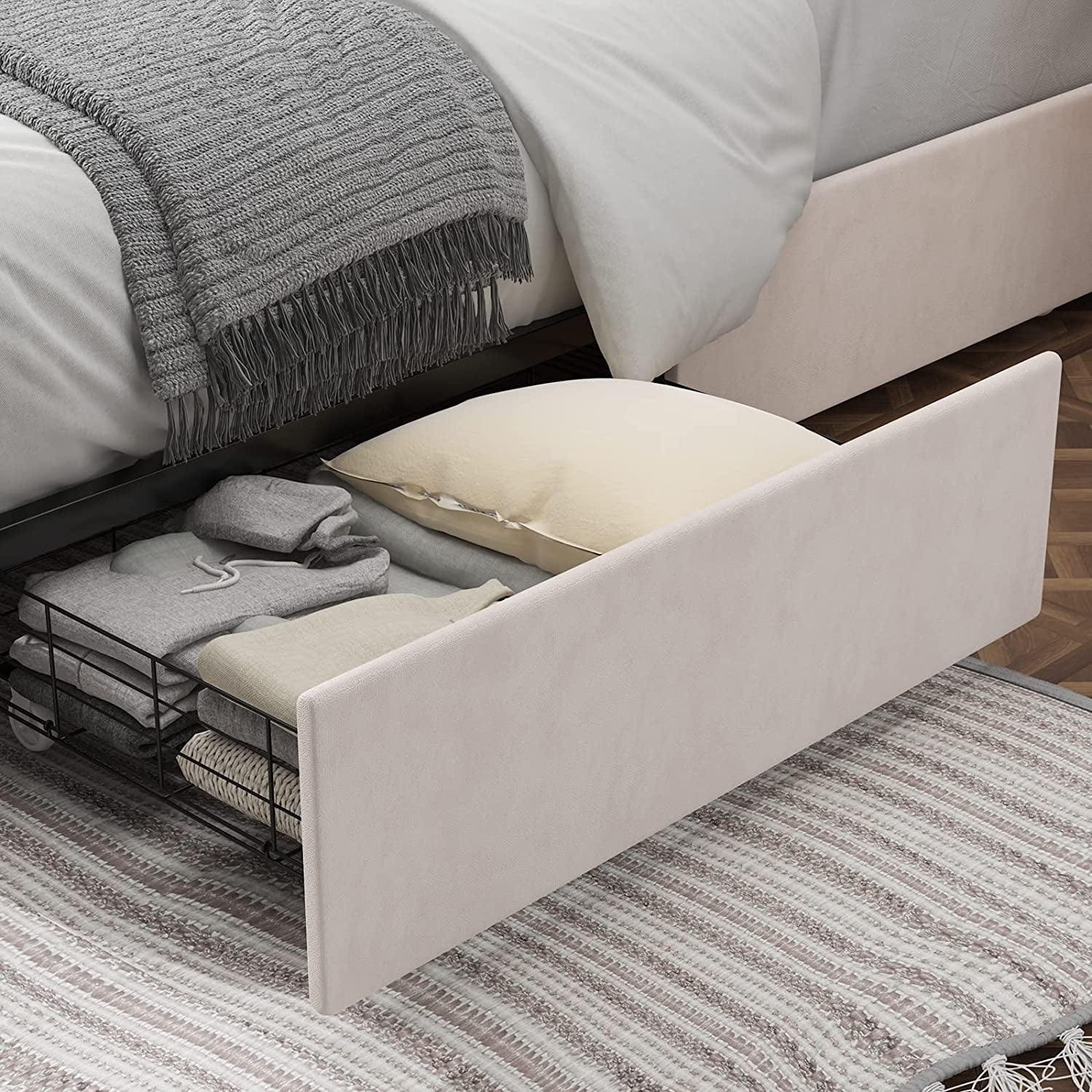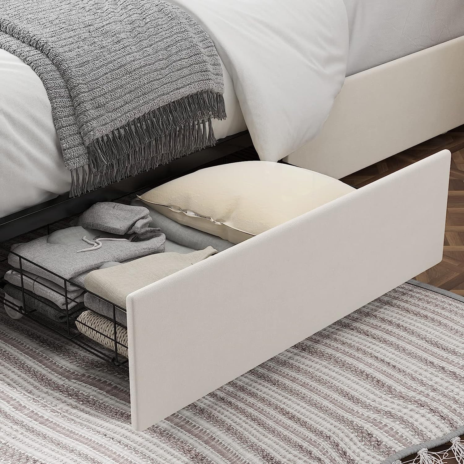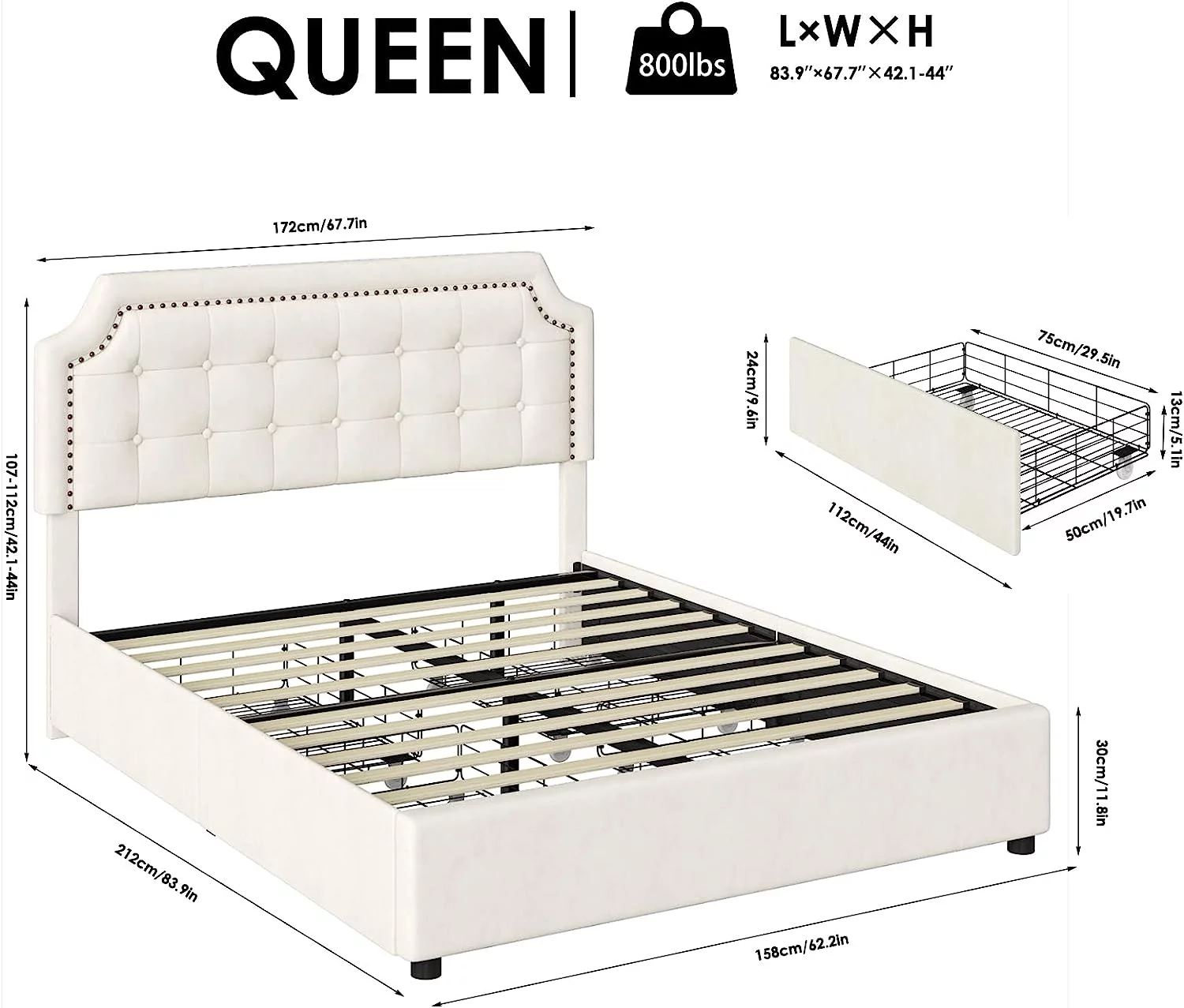 Dawn Whisper Full Size Upholstered Faux Leather Platform bed with a Hydraulic Storage System, White