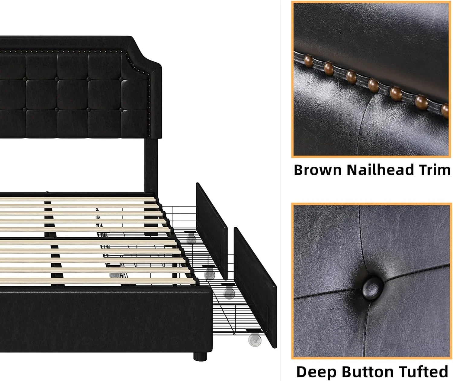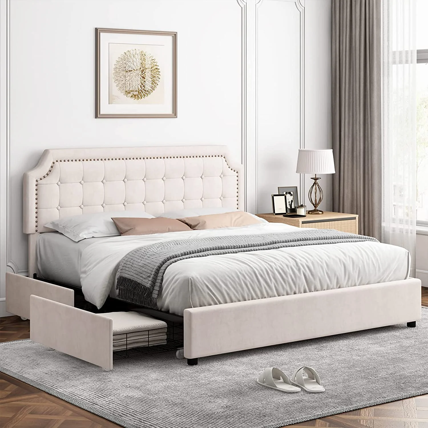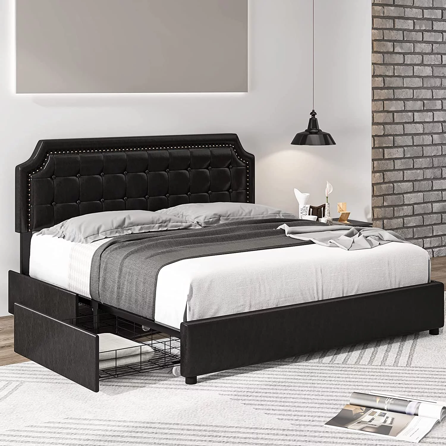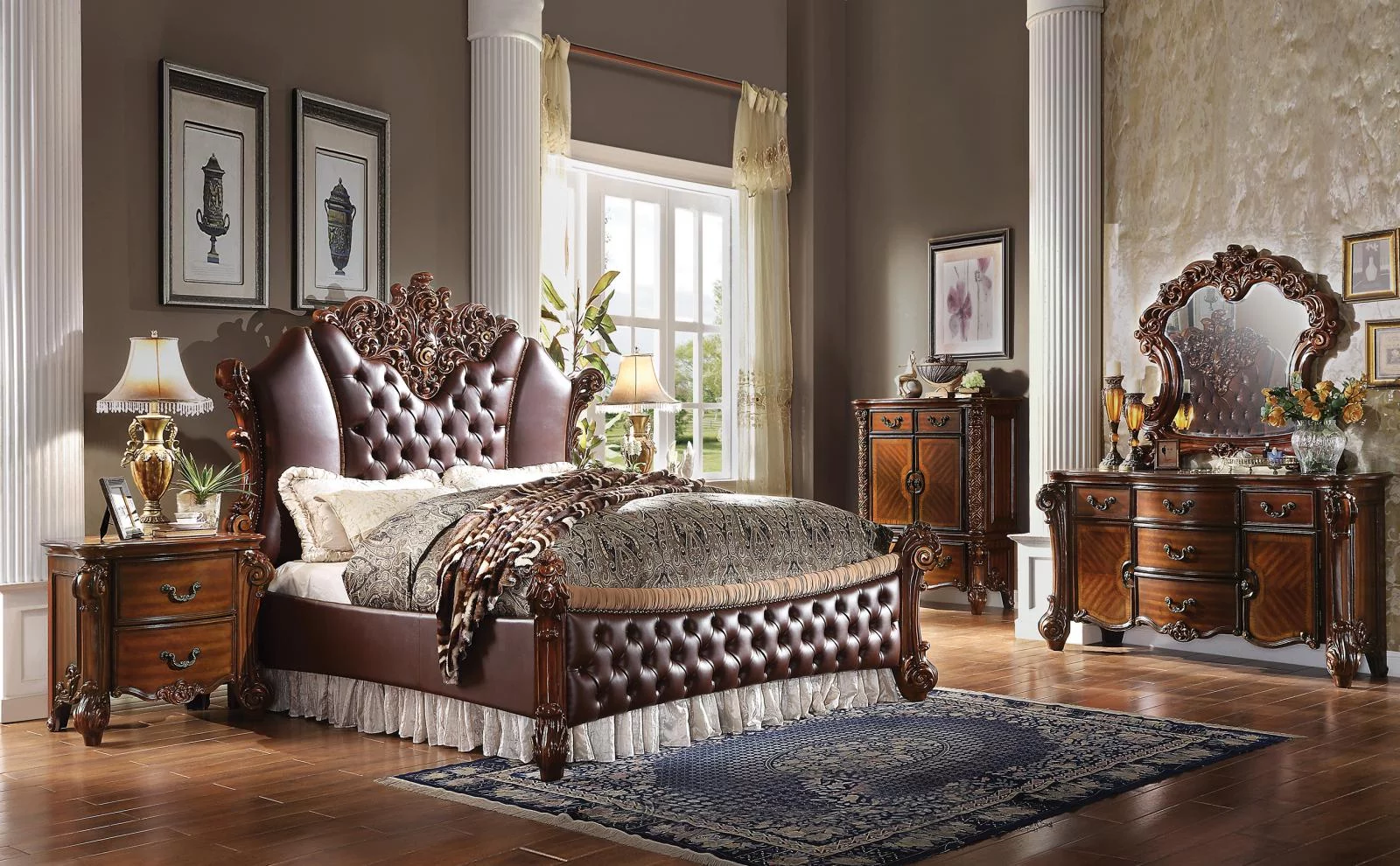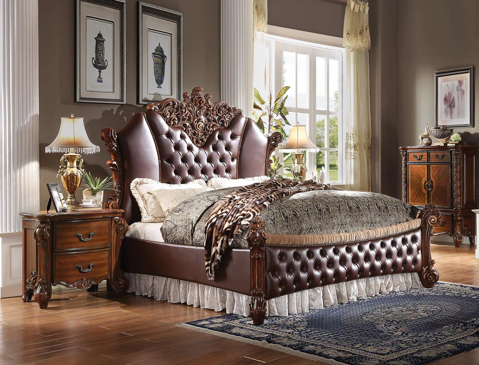 Luxury PU & Cherry Padded King Bed Vendome II-28017EK Acme Classic Traditional