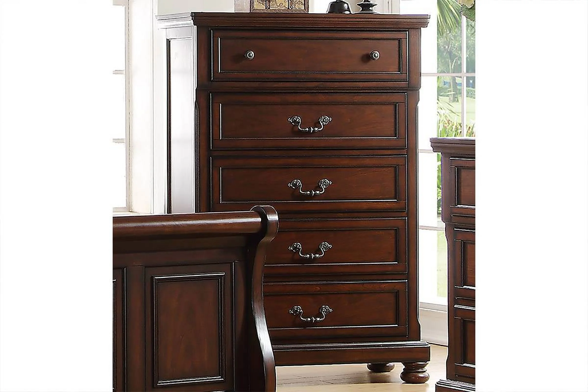 Majestic Traditional Cherry Veneer 6pc Bedroom Furniture Cal King Size Bed Dresser Mirror 2 Nightstands Chest Sleigh Bed
