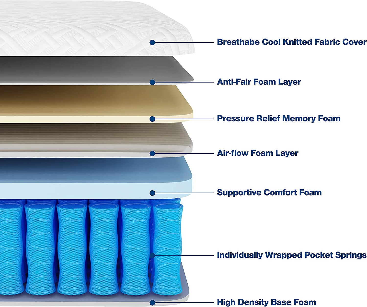 Cari 8 Inch Hybrid Full Size Mattress, Cool Gel Memory Foam, Pocket Coil- Saltoro Sherpi