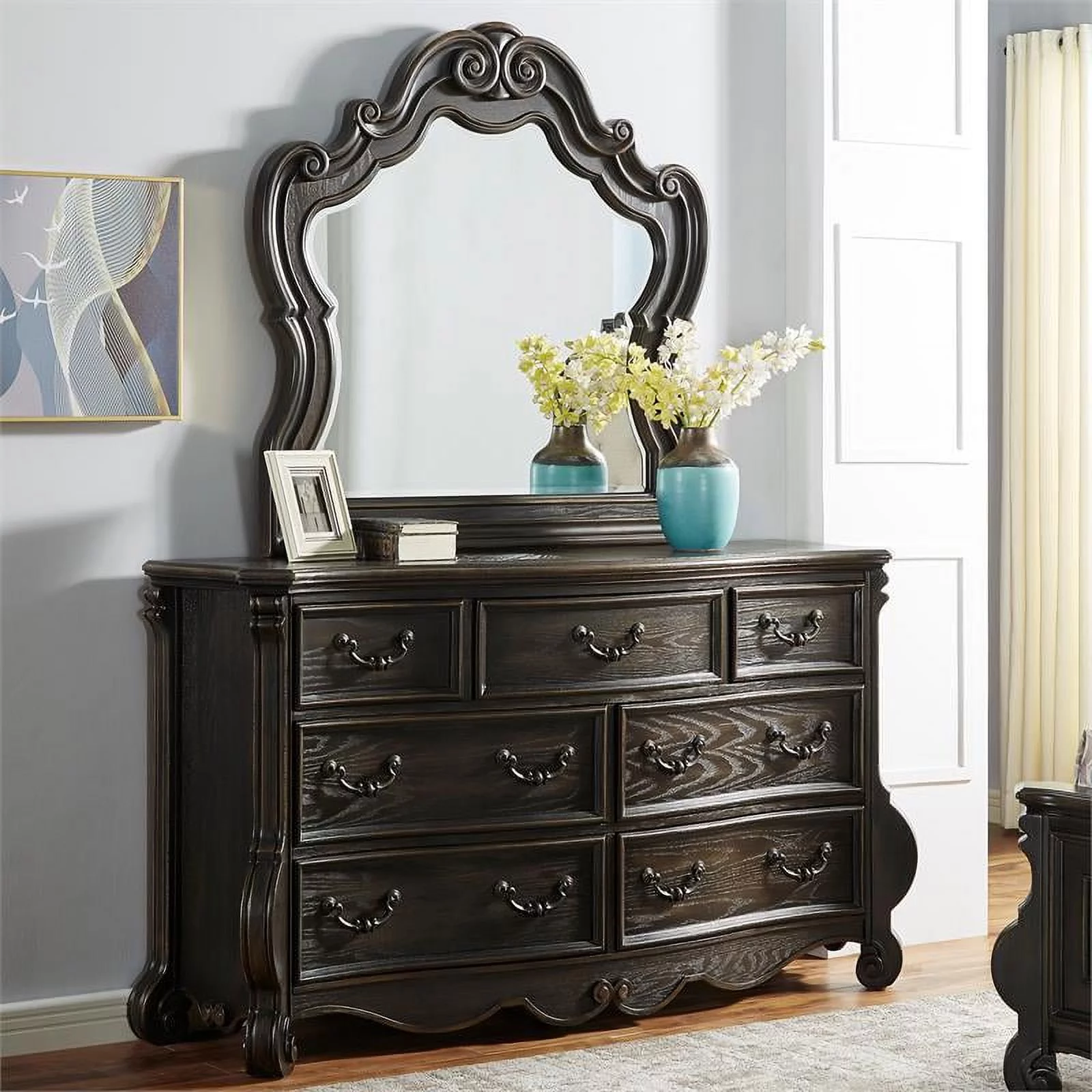 Formal Classic Grey Finish 4p Bedroom Furniture California King Size Bed Dresser Mirror Nightstand Sleigh HB w Underbed Drawers