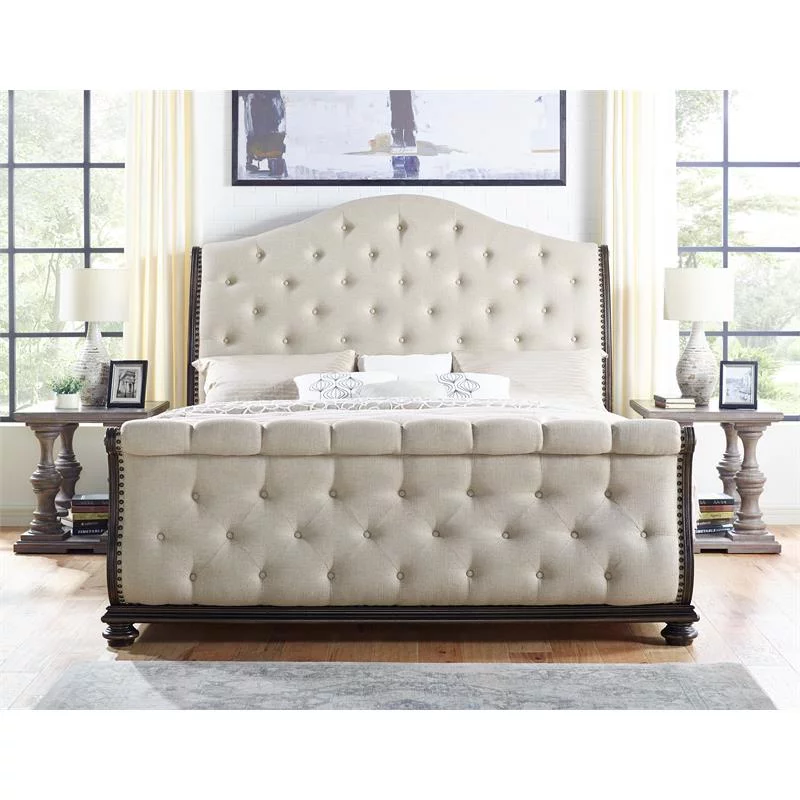 Furniture of America Brev Transitional Brown Fabric Tufted 4-Piece Sleigh Bedroom Set by California King