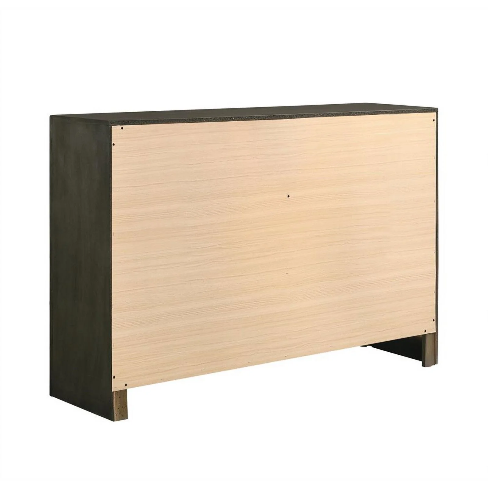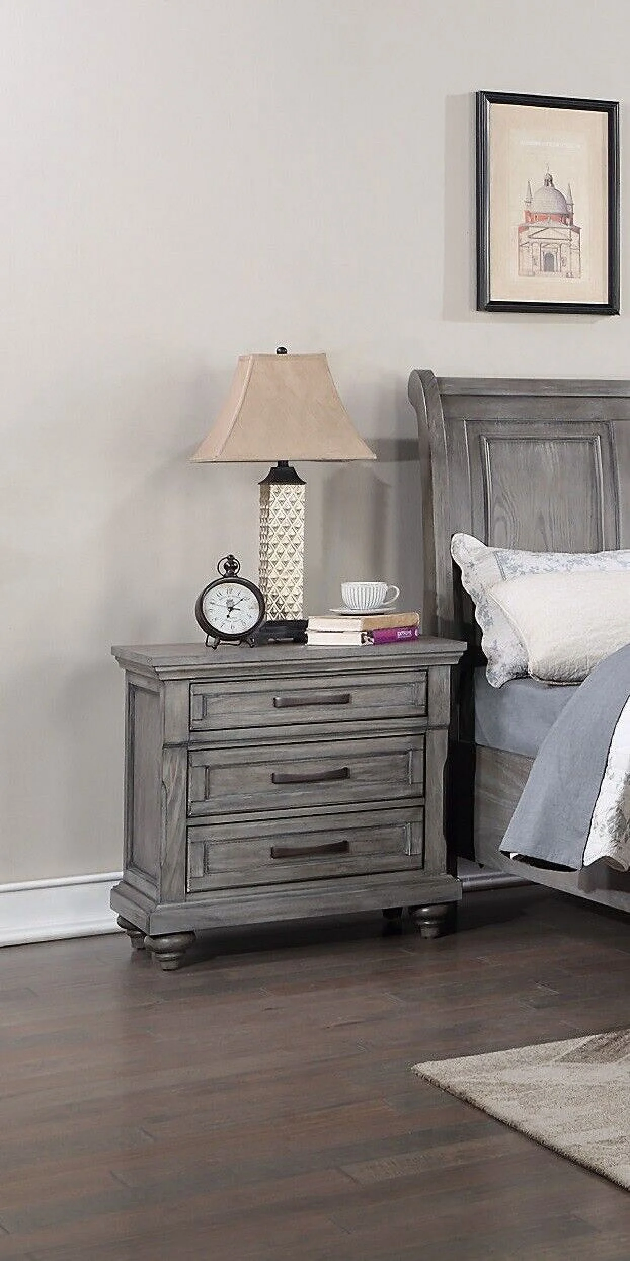 Transitional Beautiful Grey Hue 4pc Bedroom Furniture Est King Size Bed Drawers FB Dresser Mirror Nightstand Sleigh Oak Veneer