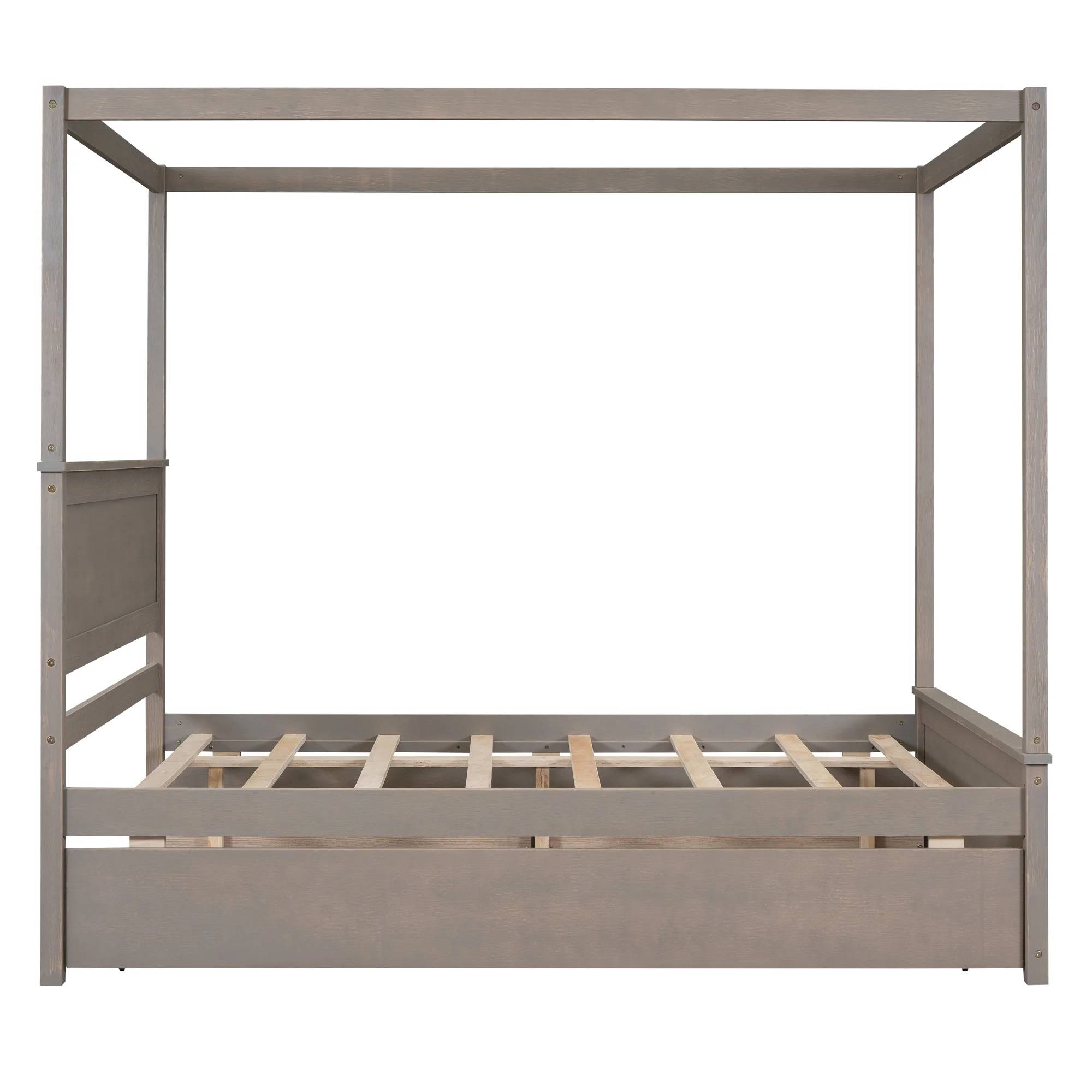 CoSoTower Full Size Wood Platform Bed Frame With Headboard And Twin Trundle