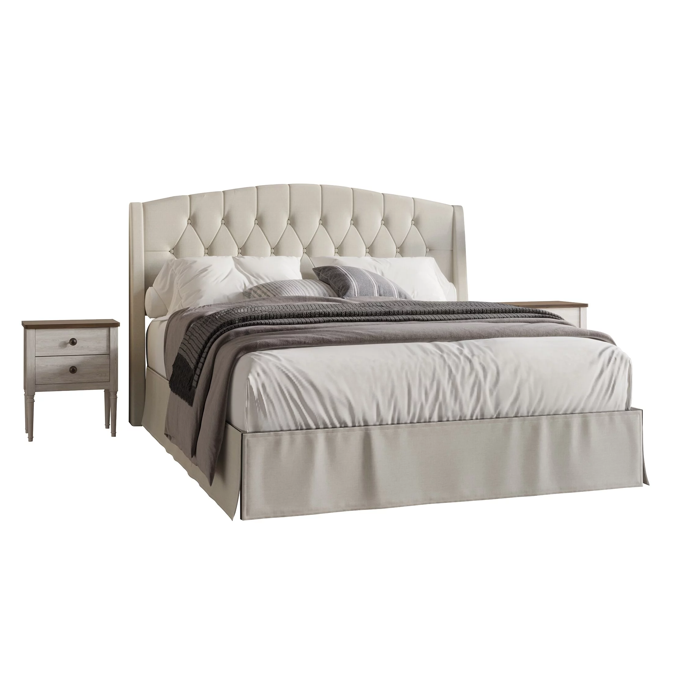 Cal King Size Bed Antique Formal Fabric Tufted HB FB Bed 2x Nightstands 3pc Set Grey Finish Posts Bed bedroom Furniture