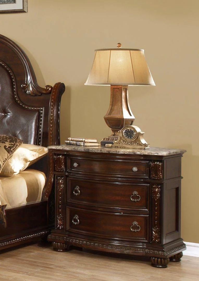 Bili Cherry Brown Upholstered Sleigh Bedroom Set Special Queen 3 Piece: Bed, 2 NightStands